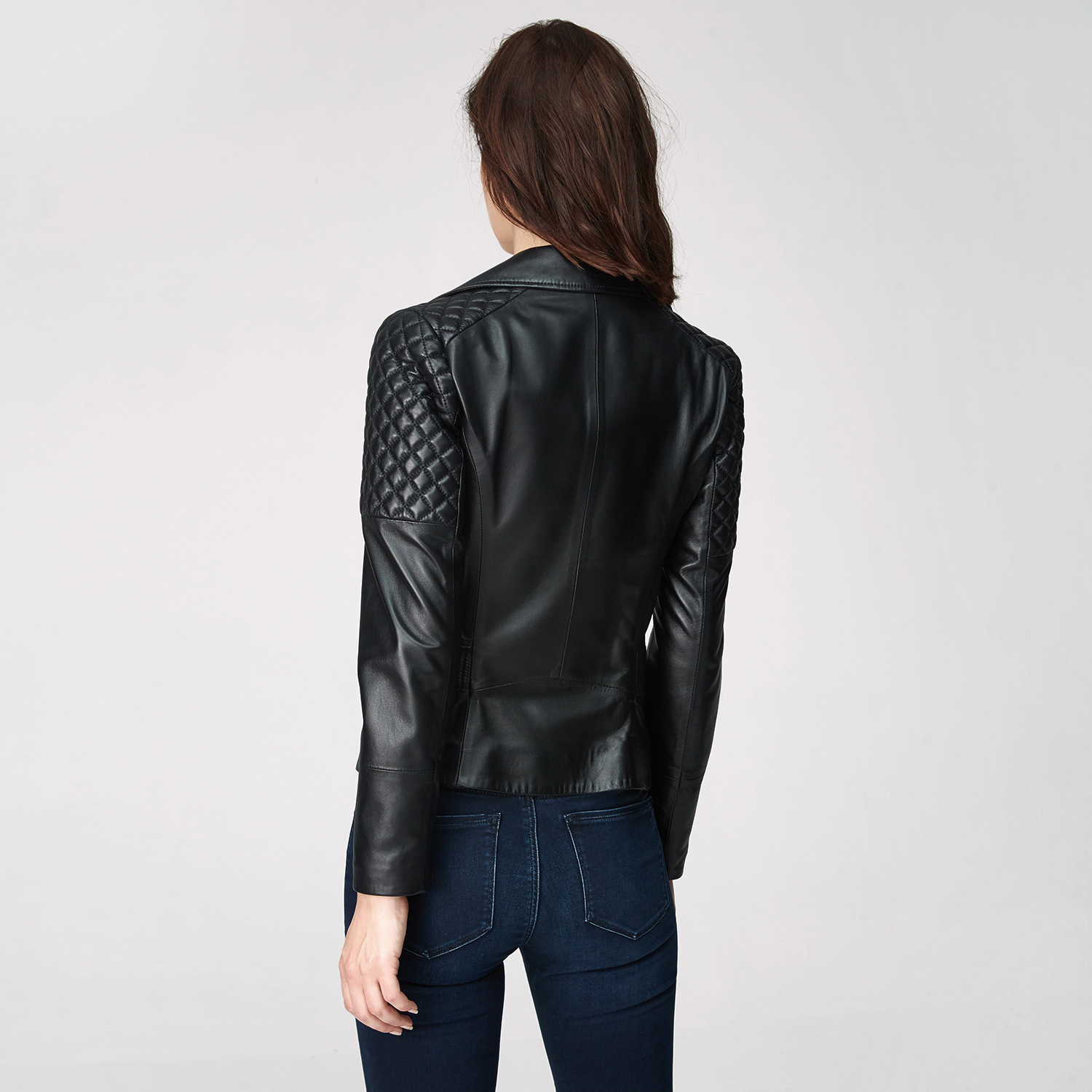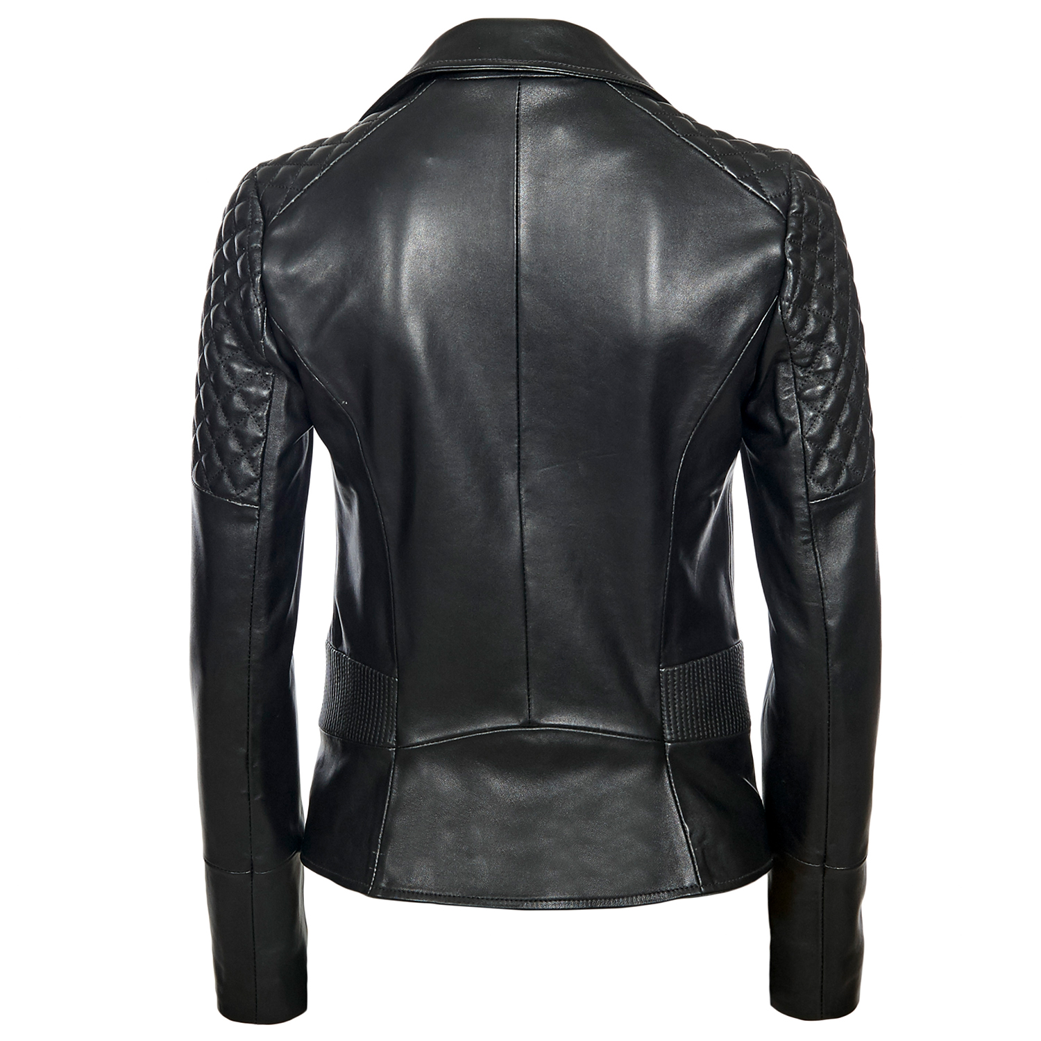 Siyah Delma Kadın Deri Biker Mont