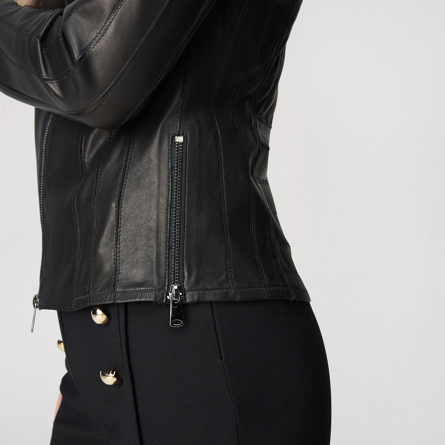Biker kesimi sayesinde Jeanleriniz ve Casual pantolonlarınız ile kombinleyebileceğiniz muhteşem bir deri mont.