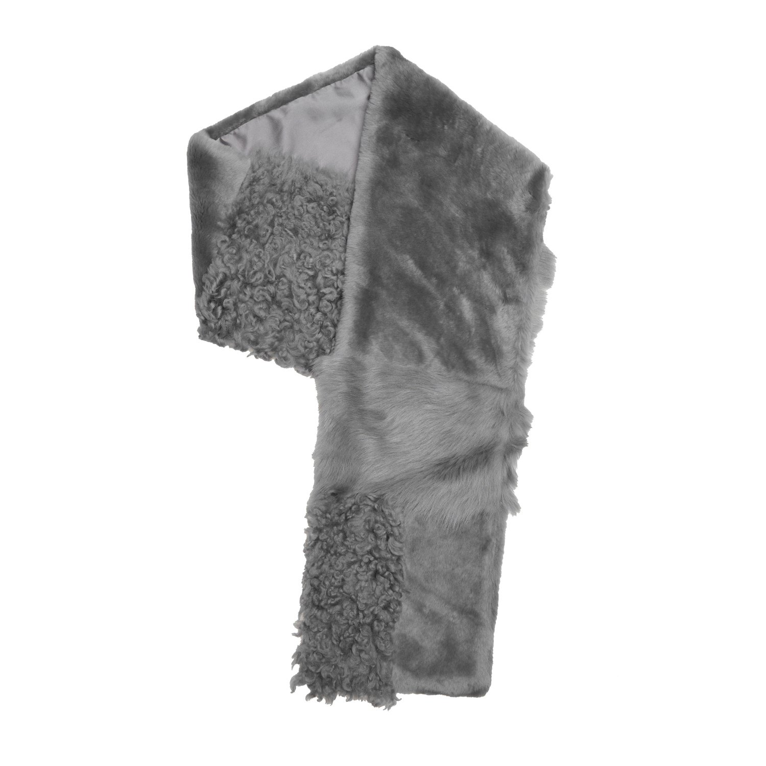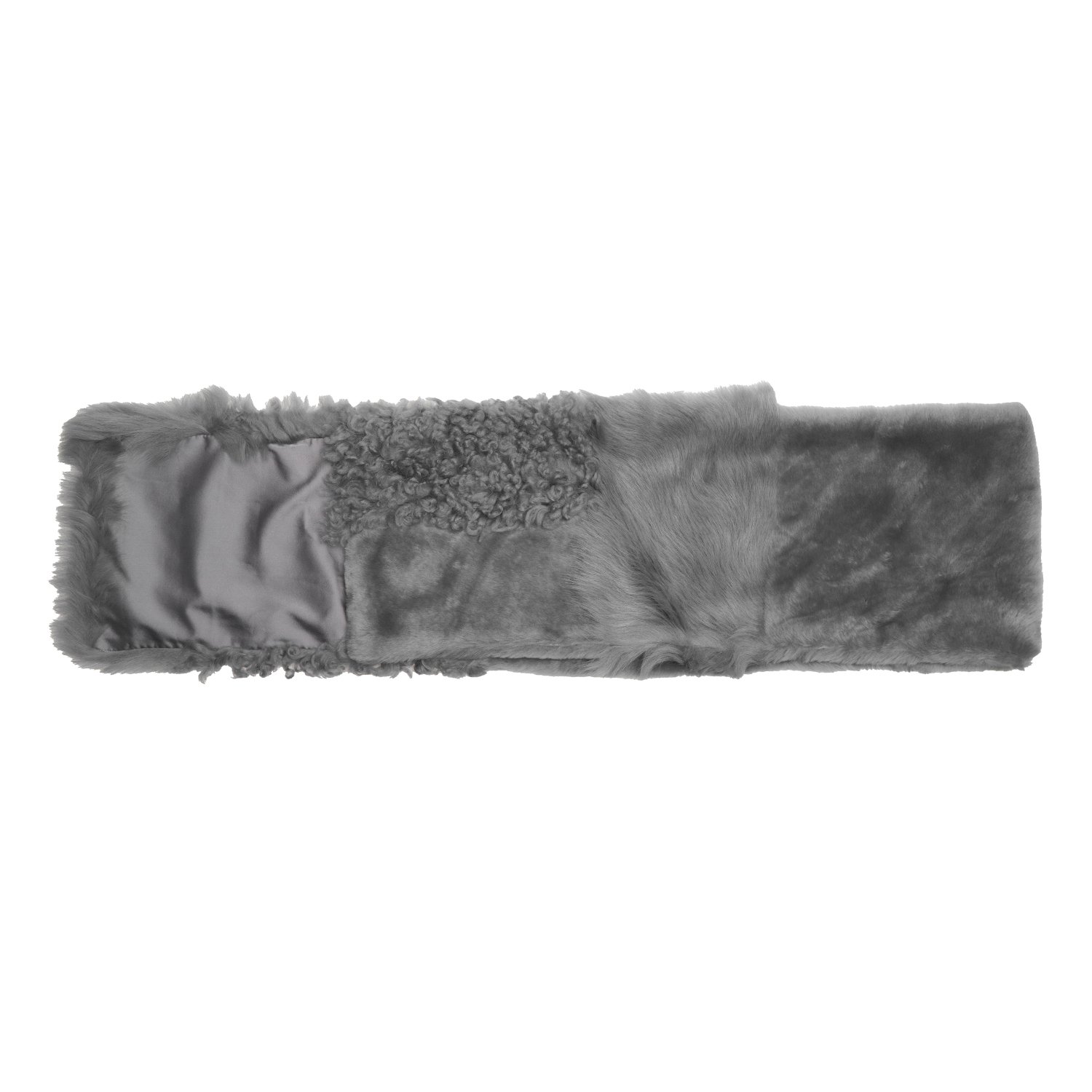 Kadın kürk atkı, ürün üzerine özel olarak patchwork çalışması ile üç farklı tüy ile hareketlilik katılmıştır.