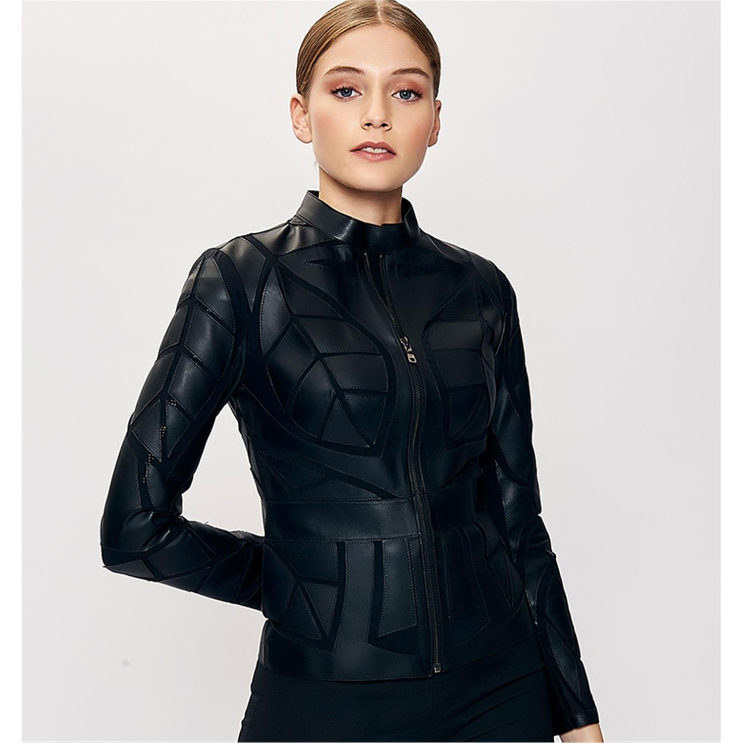Origa Kadın Yaprak Panelli Deri Ceket