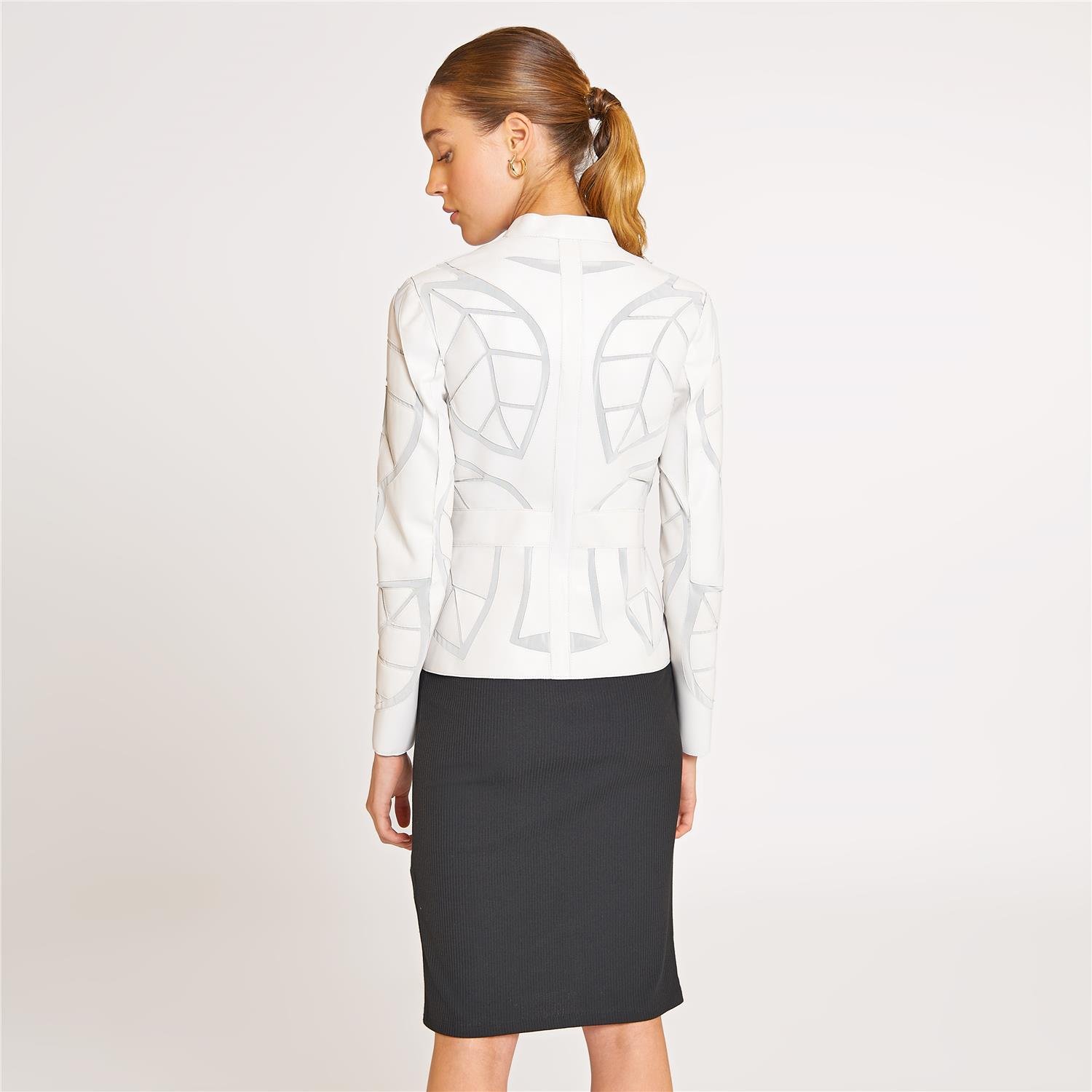 Kadın vücut anatomisini vurgulamak için; esneyen tül ile desteği ile bedene yerleştirilen yaprak desenindeki deriler sayesinde, hem rahat hem de fit bir görünüm kazandırılmış ve tül laminasyon çalışması yapılmıştır.