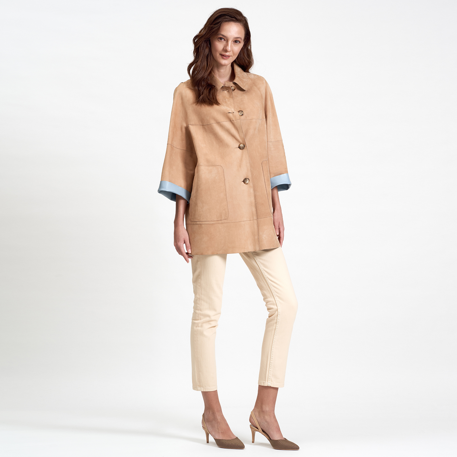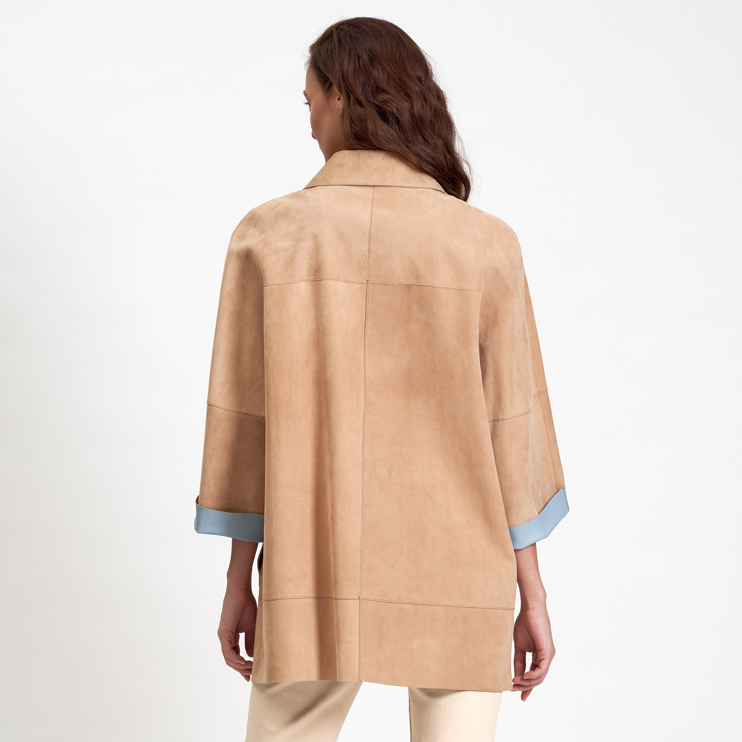 Ön yüzü süet olup, diğer yüze ise napa deridir.