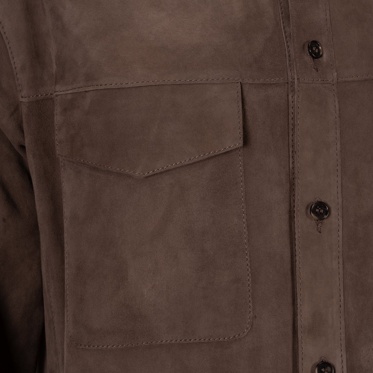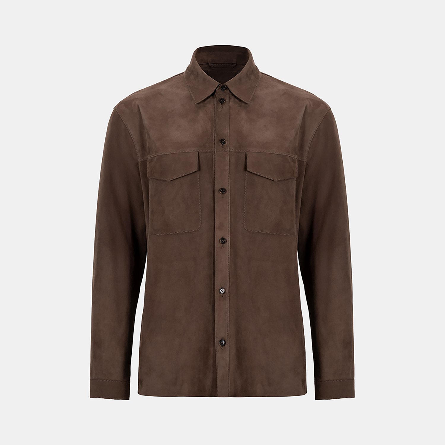 Erkek yakalı süet gömlek, önden düğme kapamalıdır.