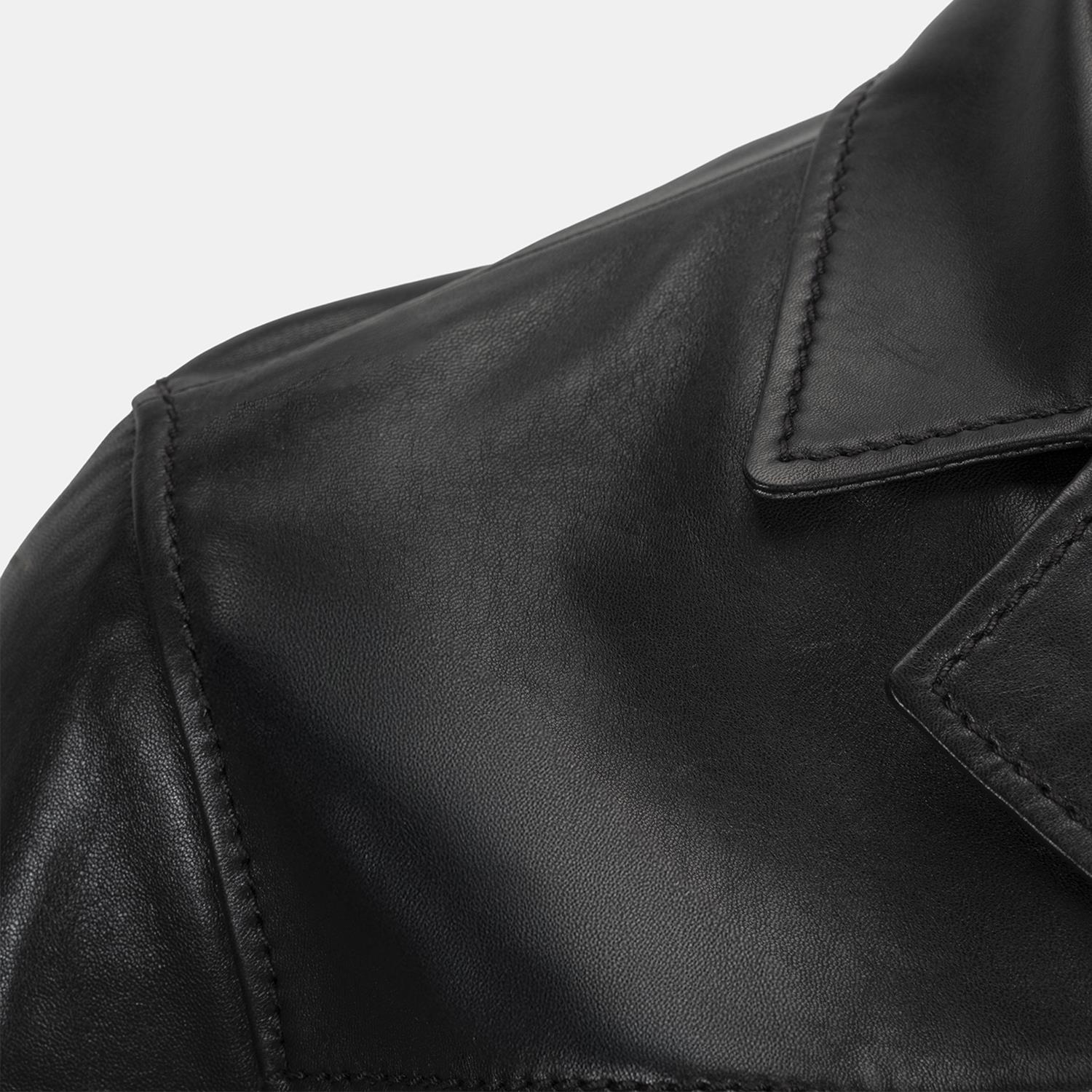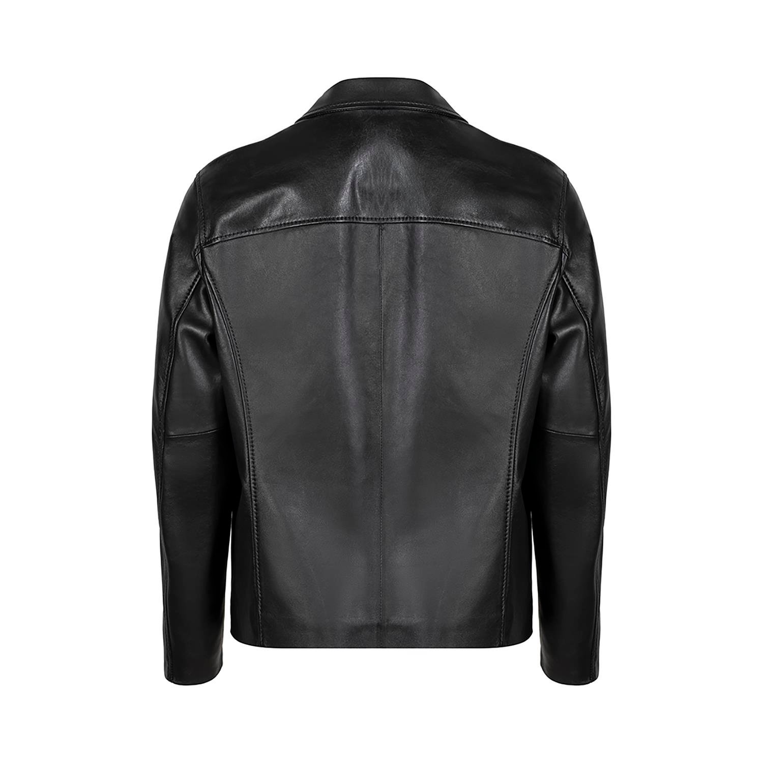 Erkek Siyah Gömlek Yakalı Deri Blazer Ceket