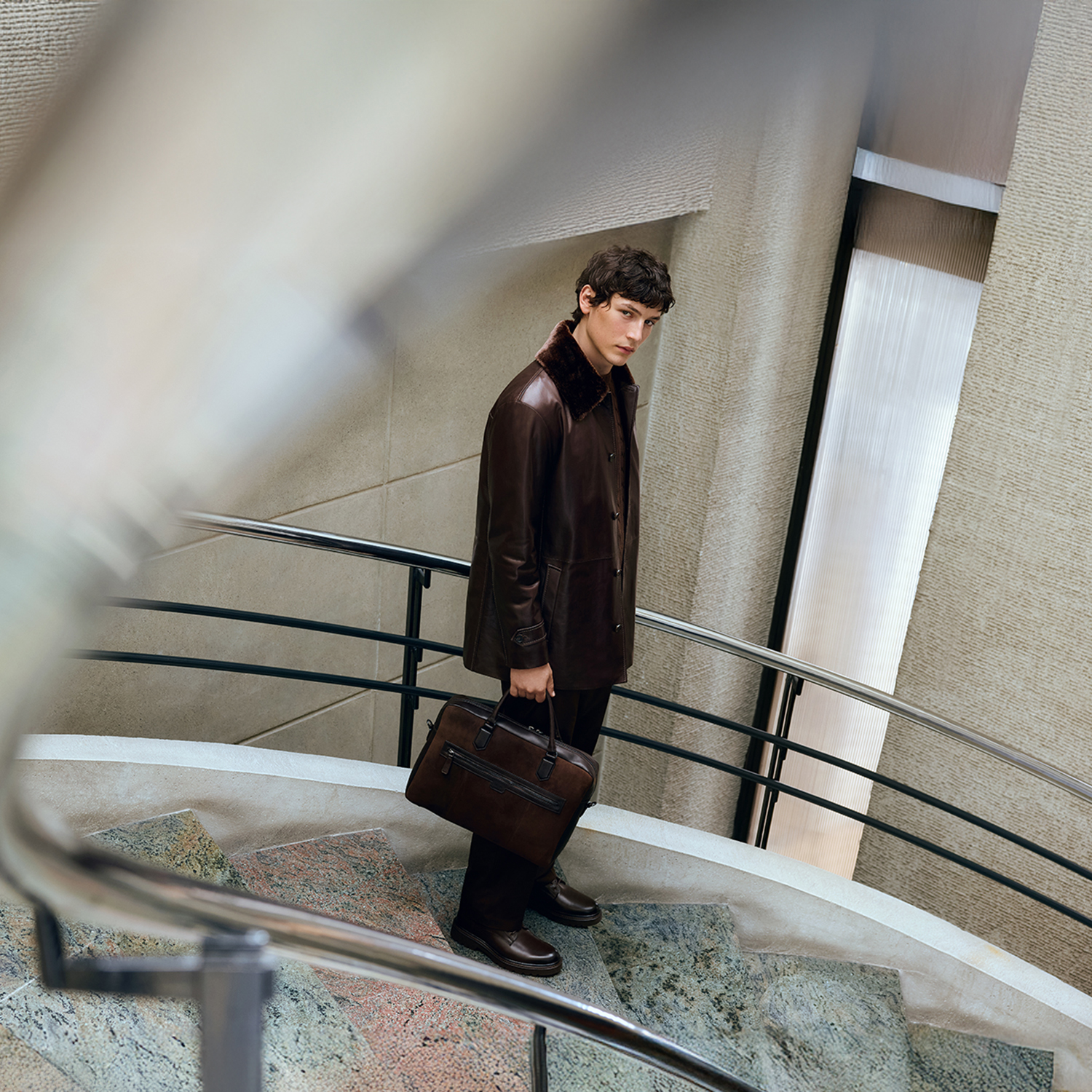 Erkek Kahve Gömlek Yakalı Deri Kaban