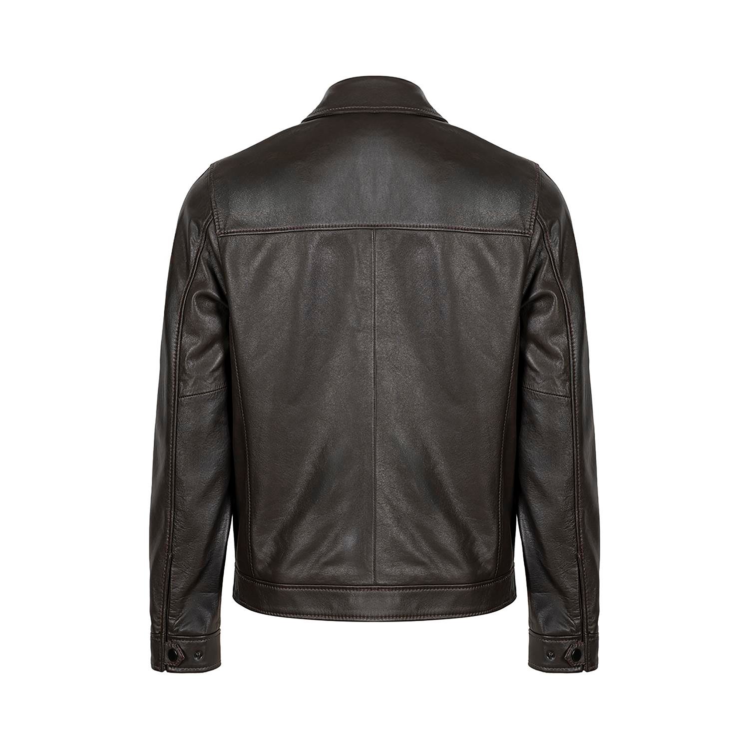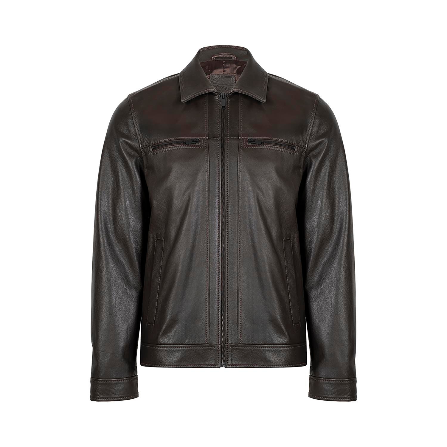 Erkek Kahve Gömlek Yakalı Deri Ceket