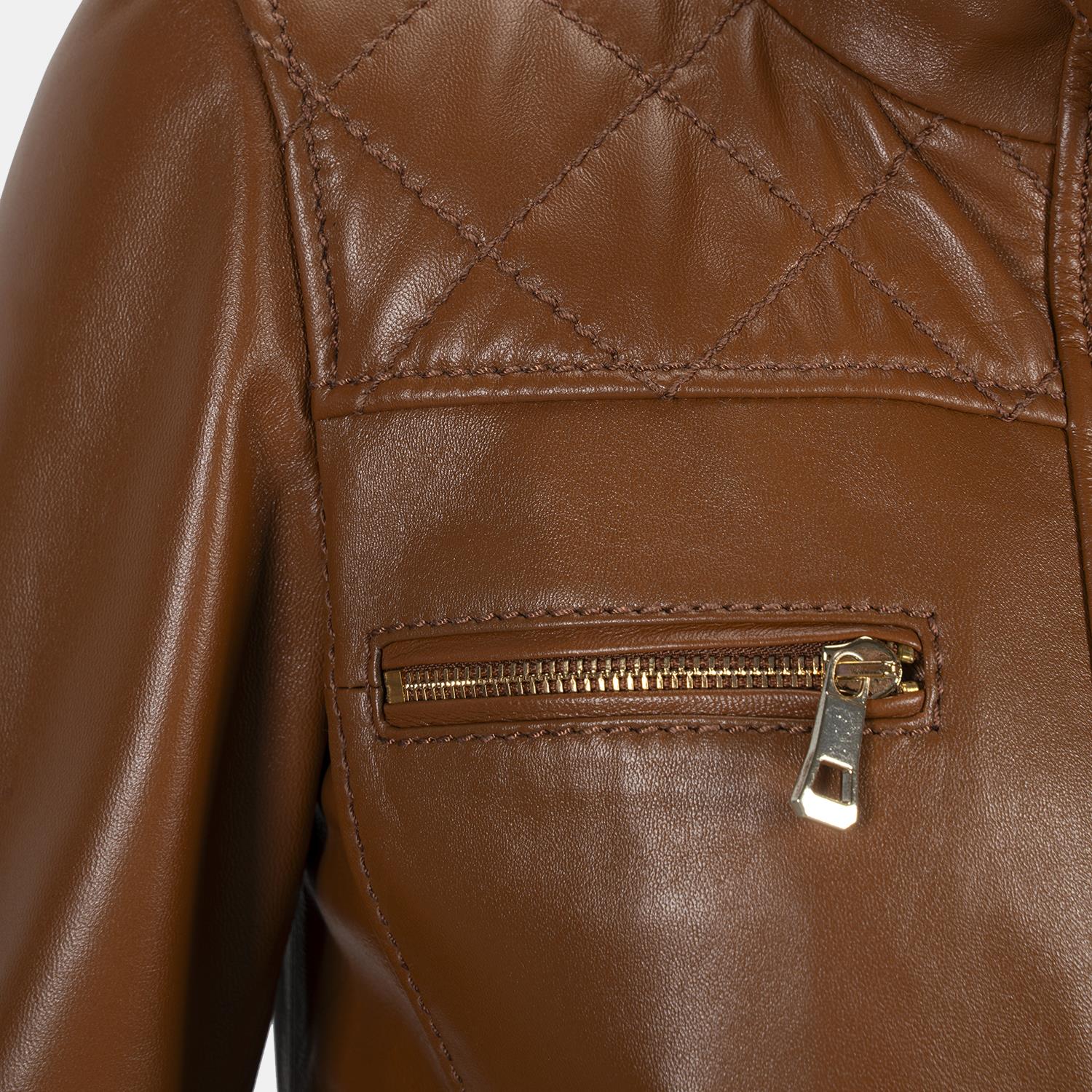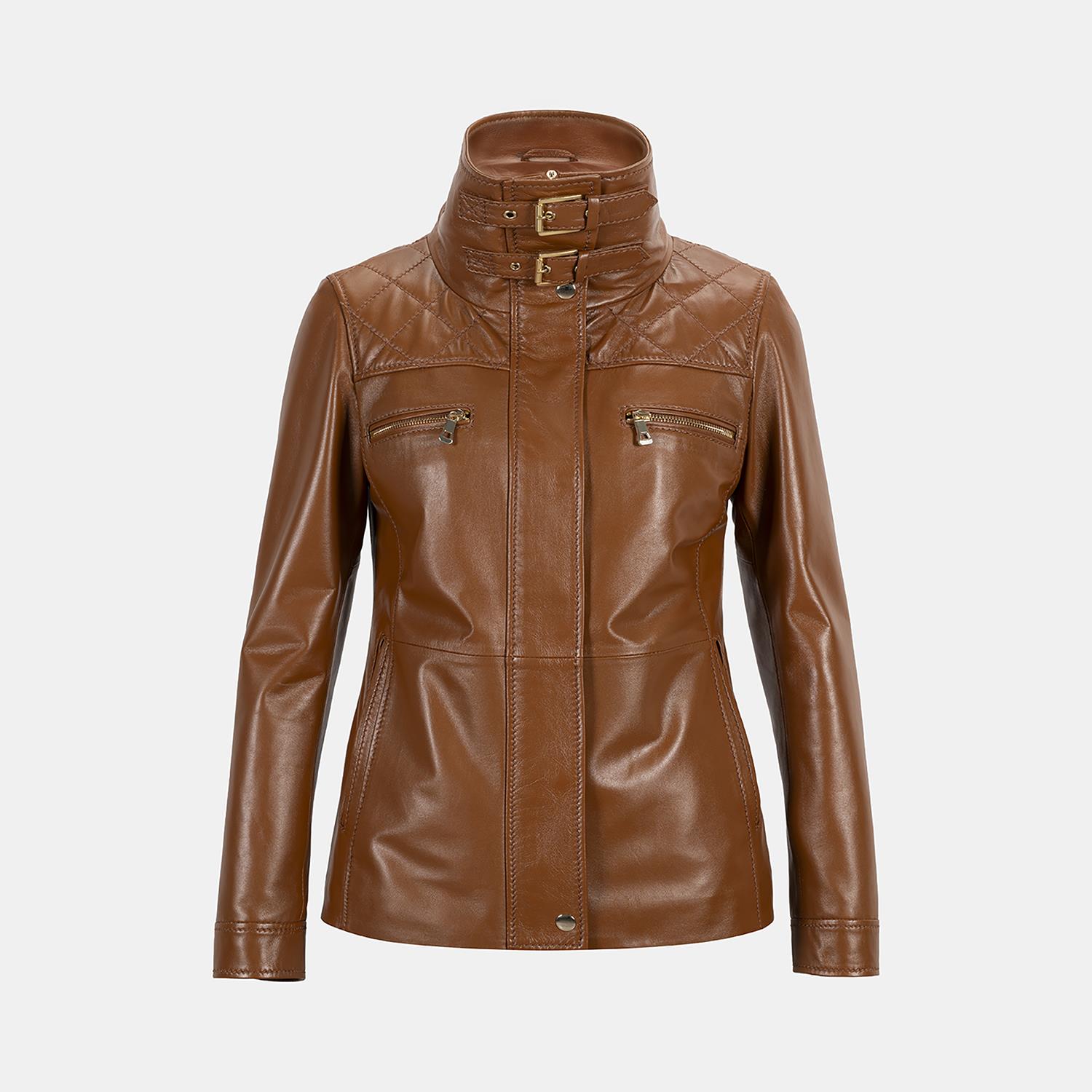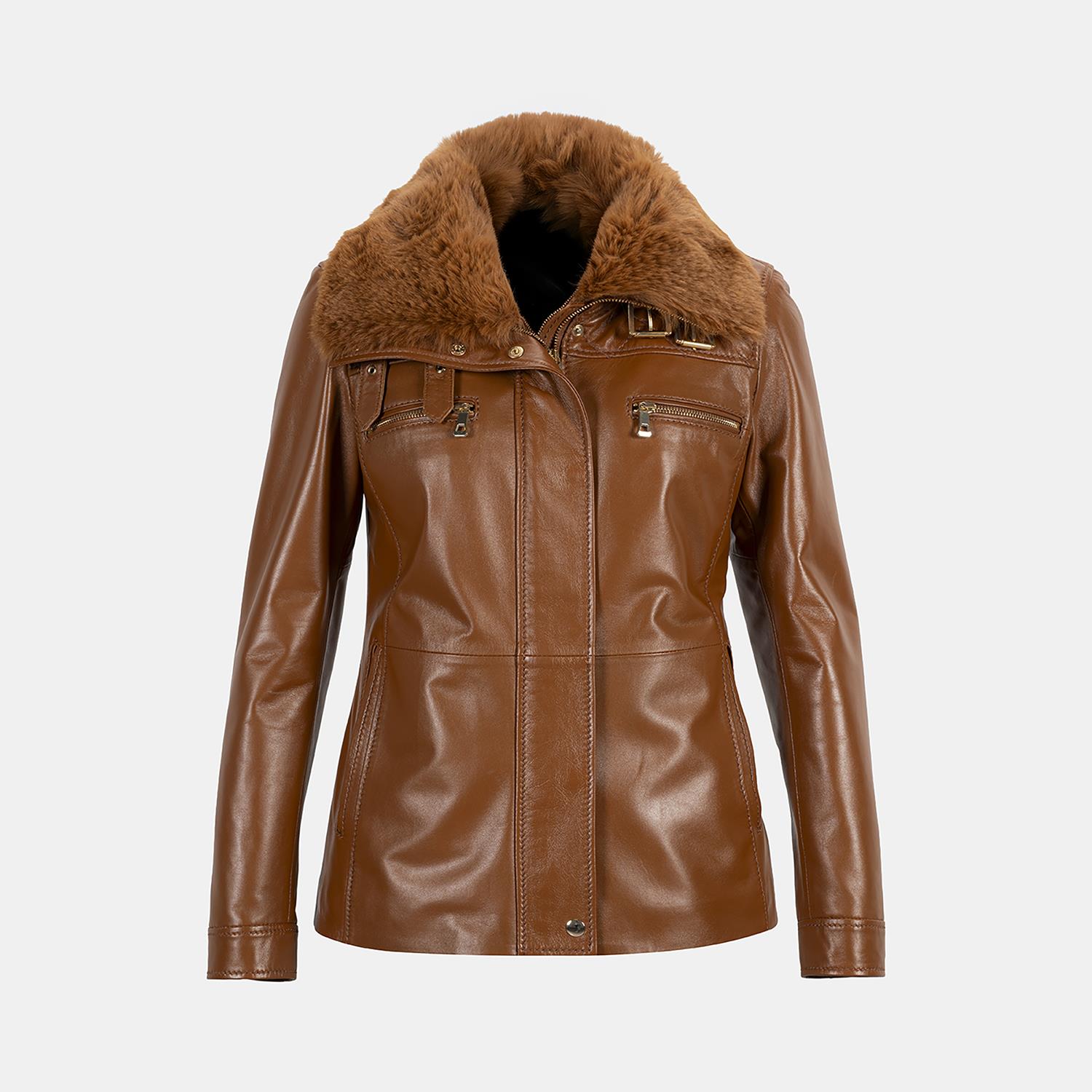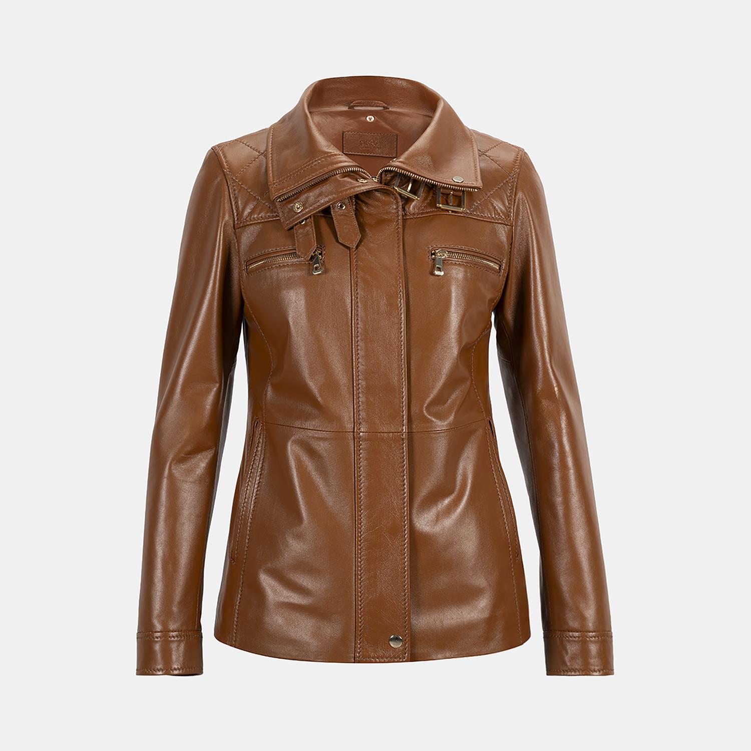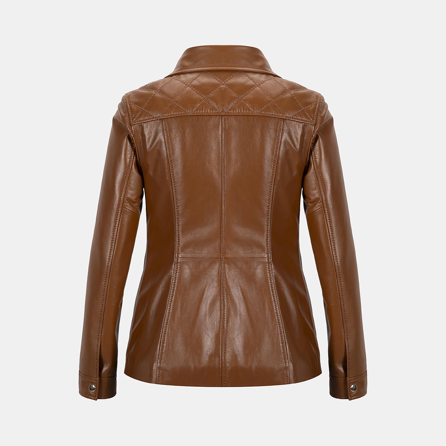 Kadın Taba Yüksek Hakim Yakalı Deri Ceket