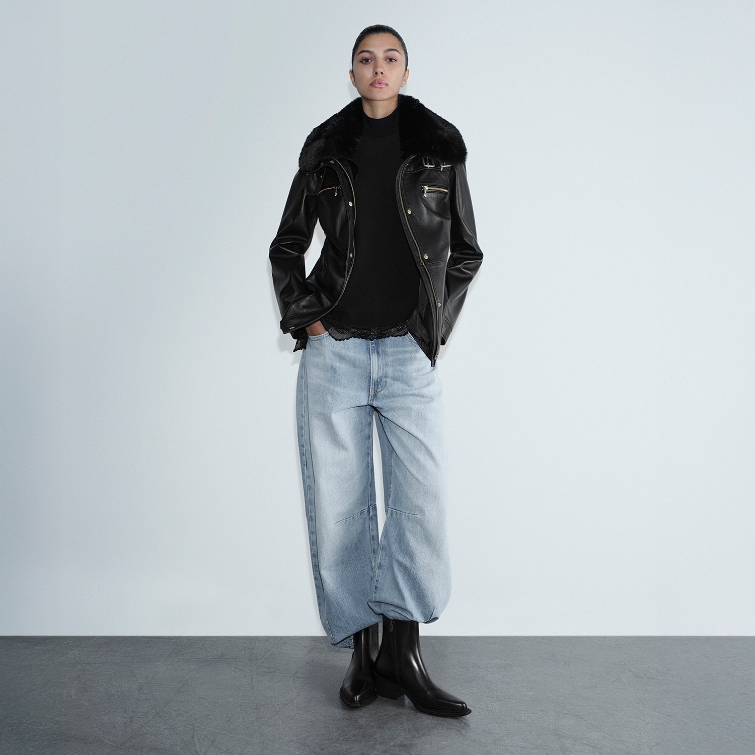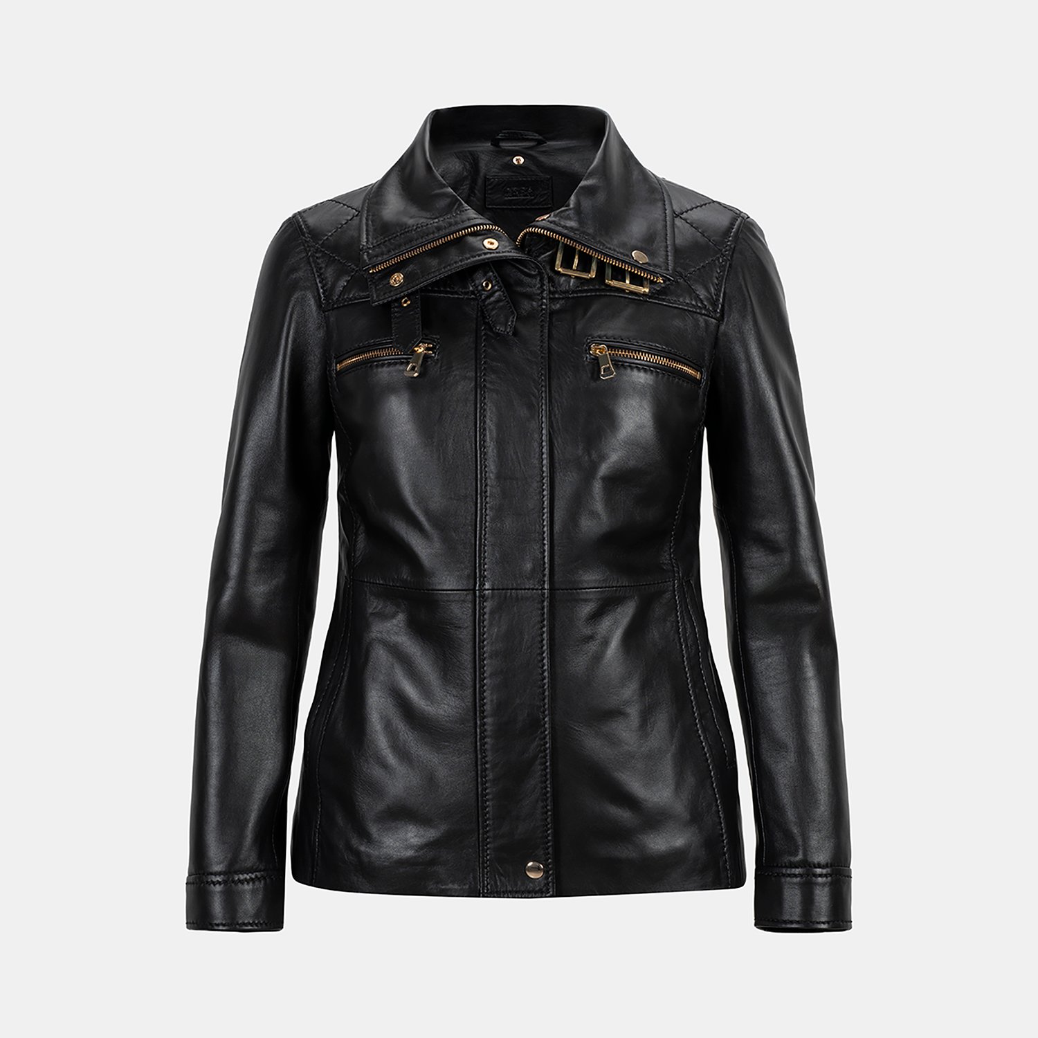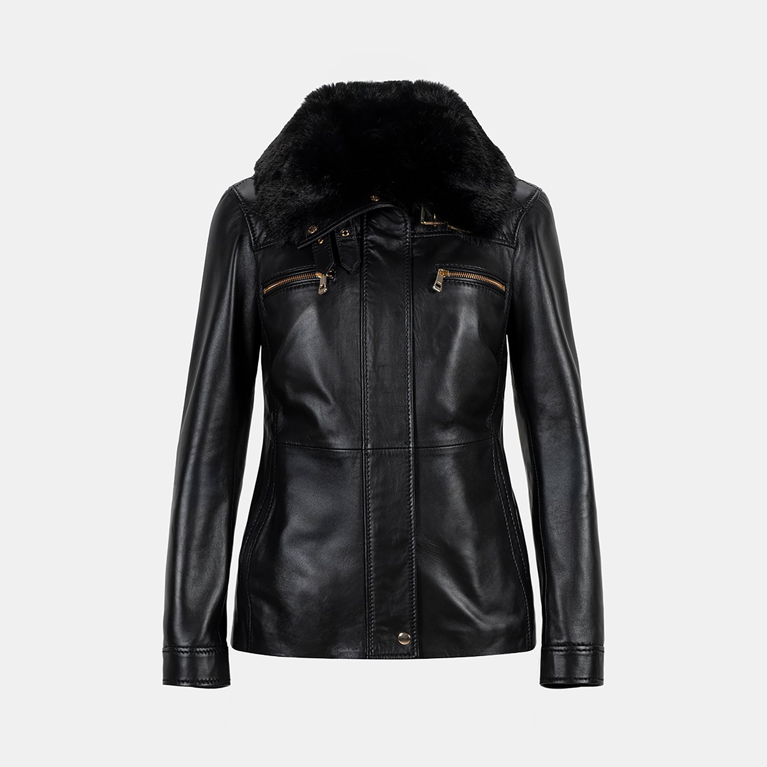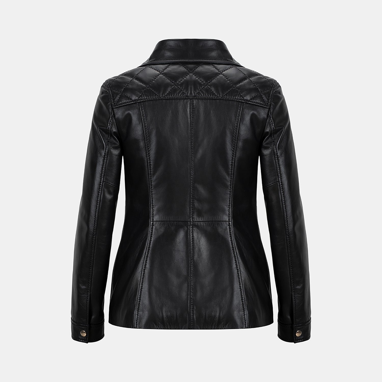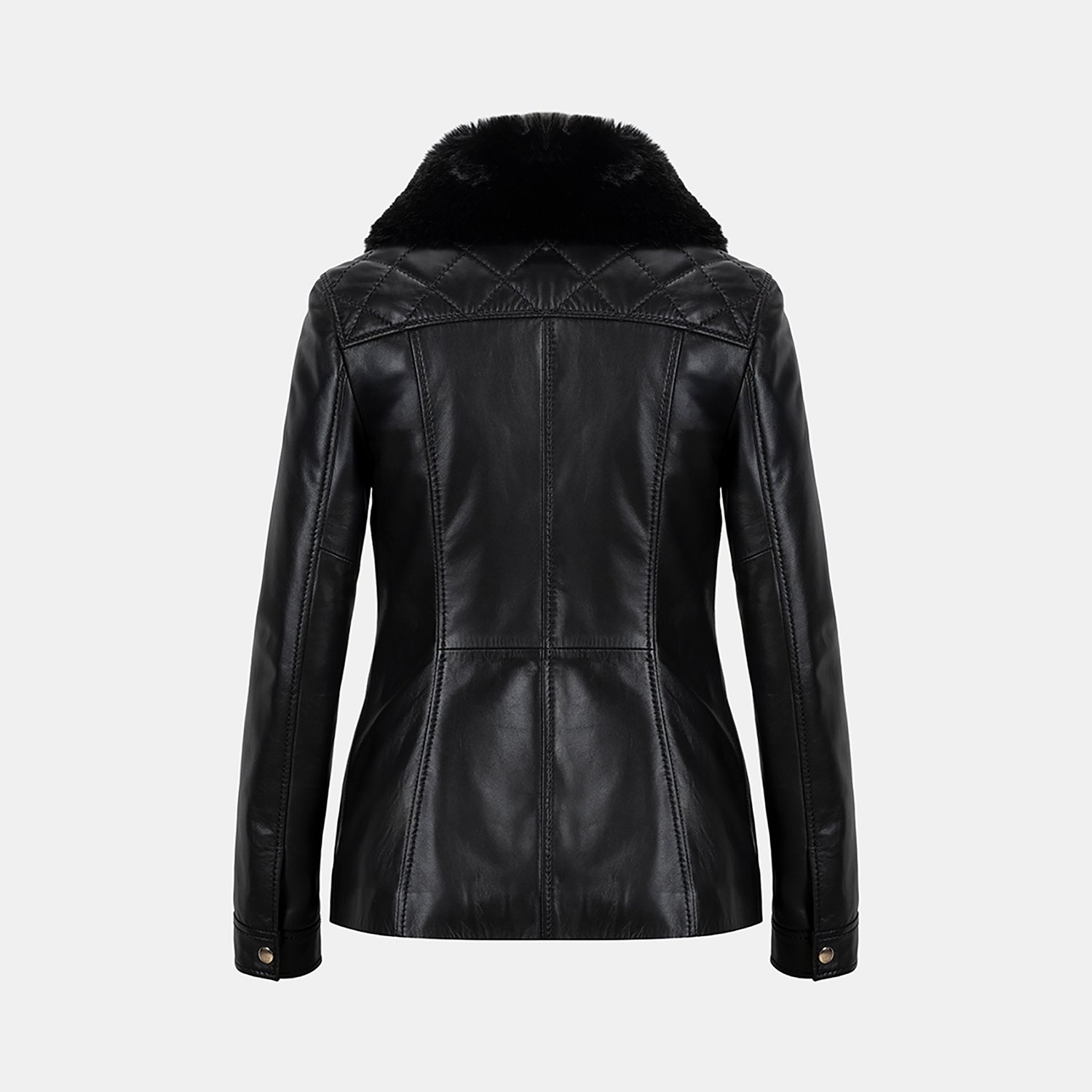 Kadın Siyah Yüksek Hakim Yakalı Deri Ceket