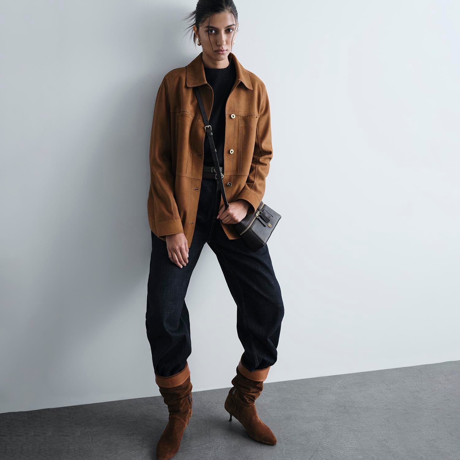 Kadın Taba Gömlek Yakalı Düğmeli Süet Ceket