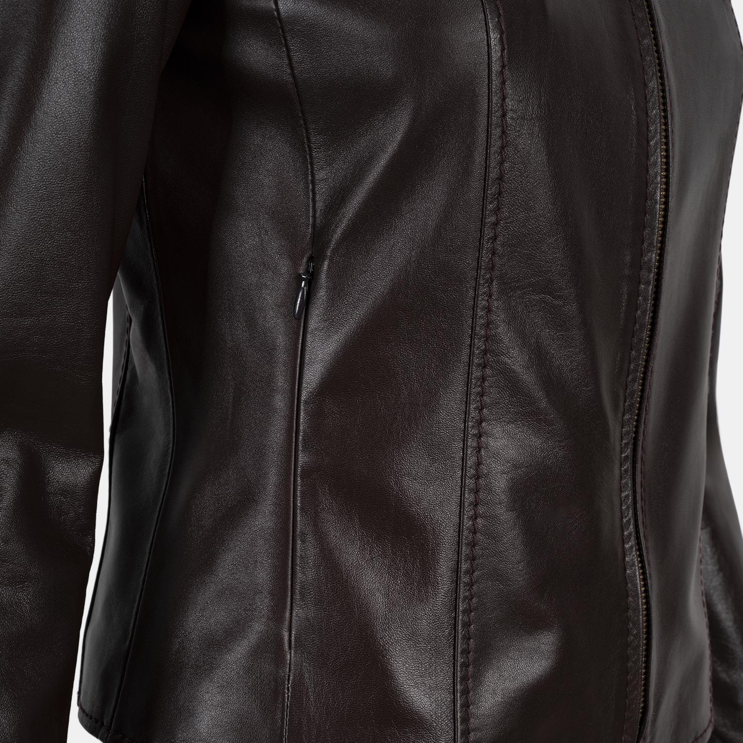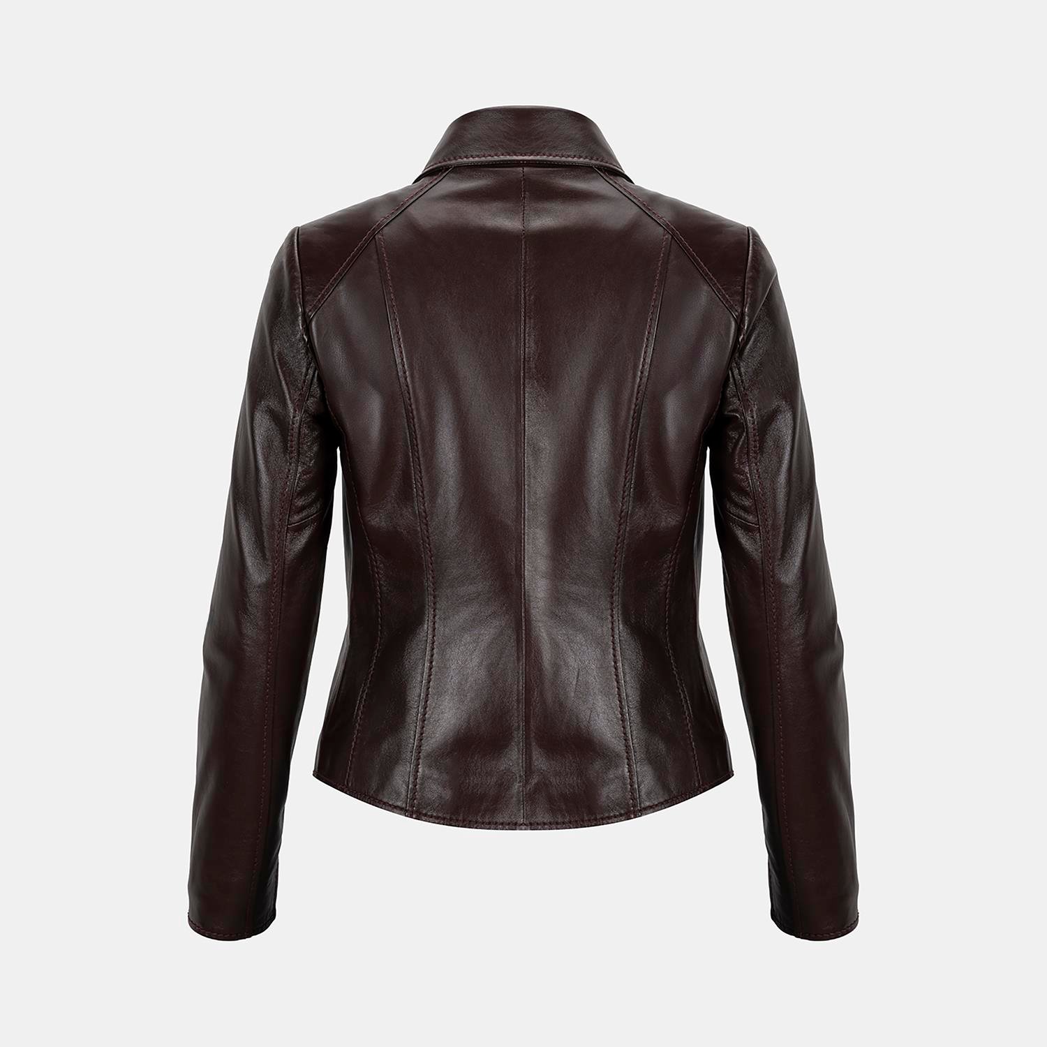 Kadın Bordo Gömlek Yakalı Fit Deri Ceket