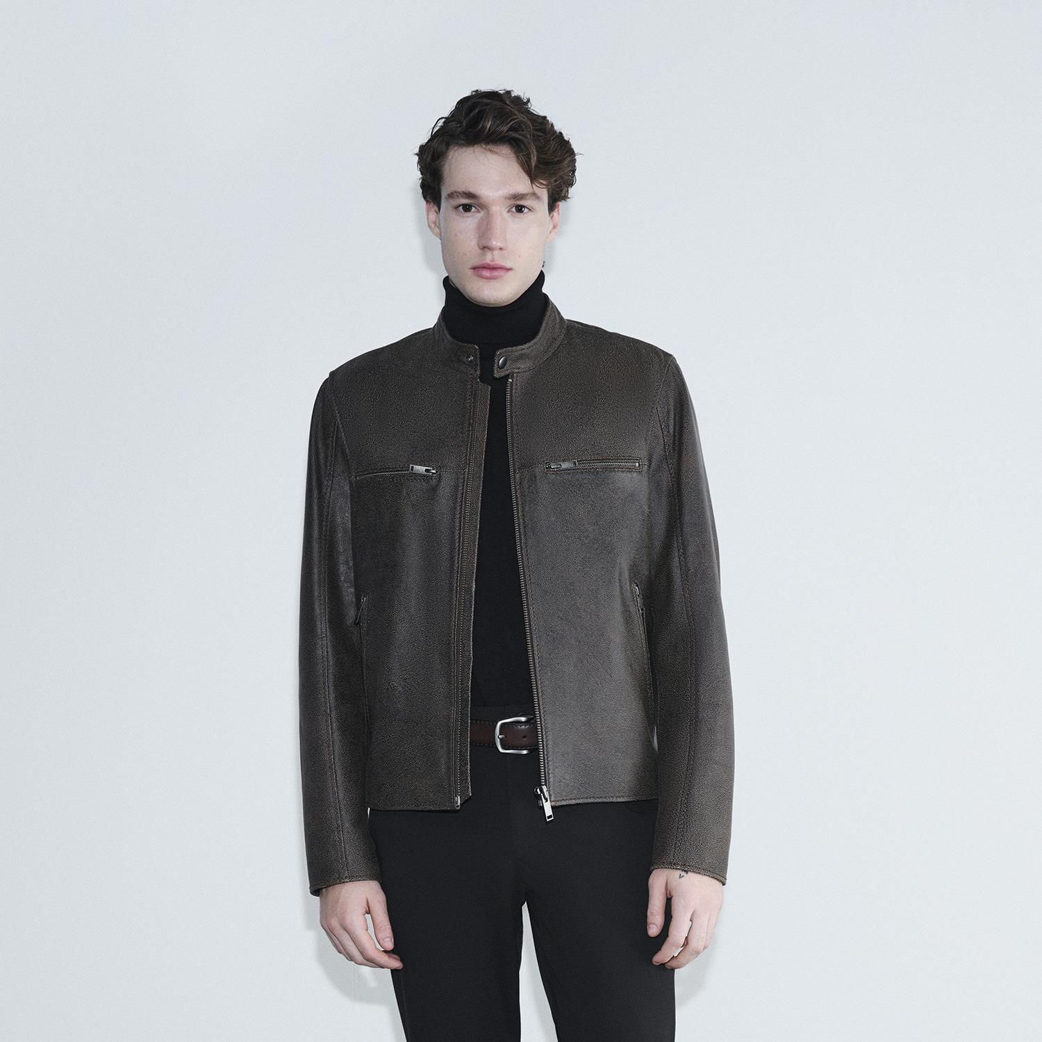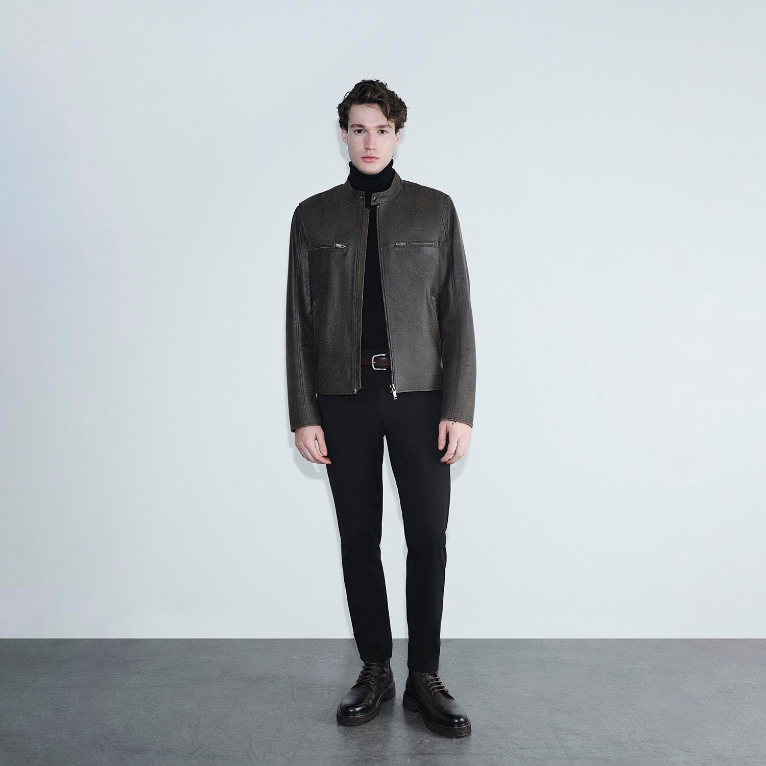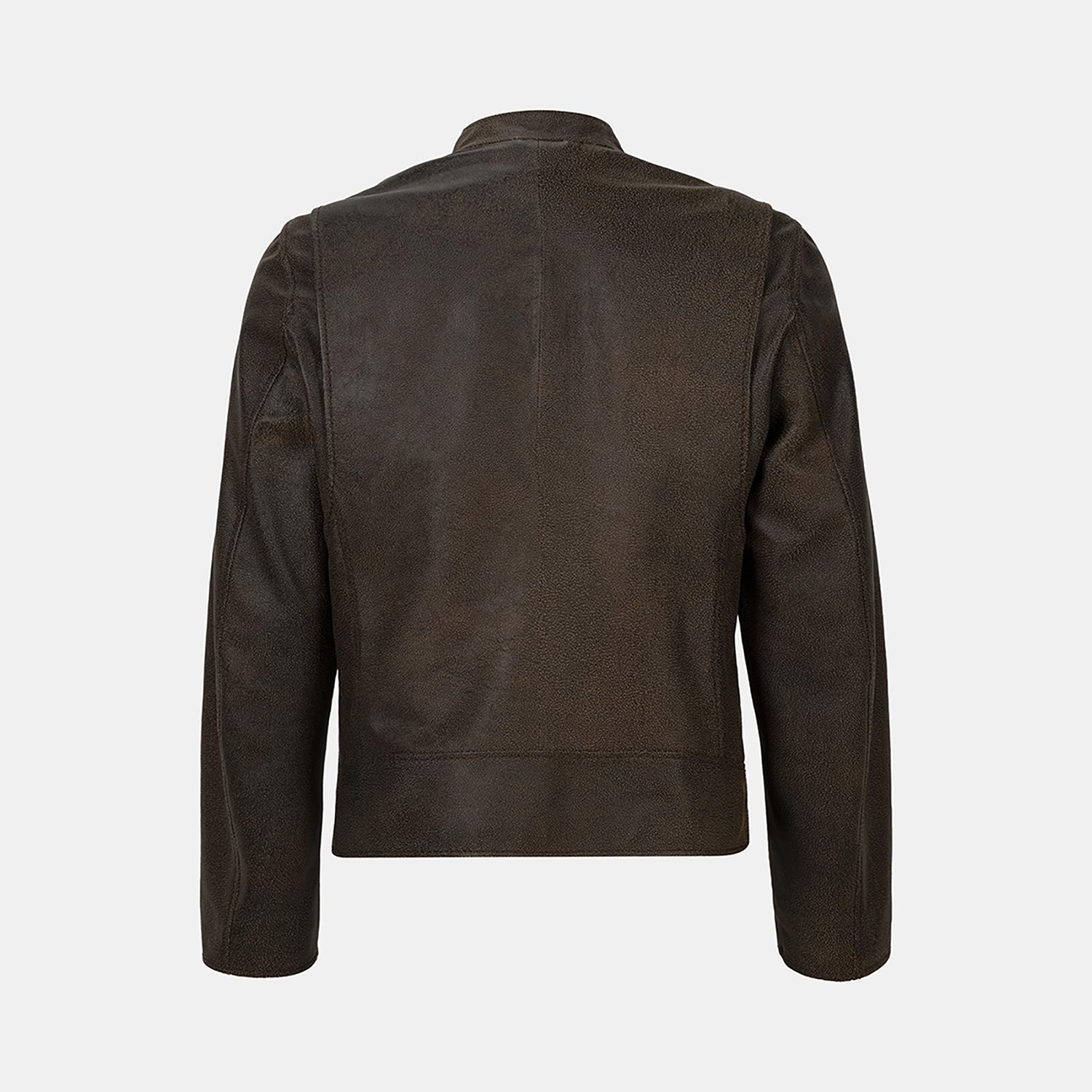 Erkek hakim yakalı fit spor deri ceket. Yakasında metal çıtçıt kapama mevcuttur.