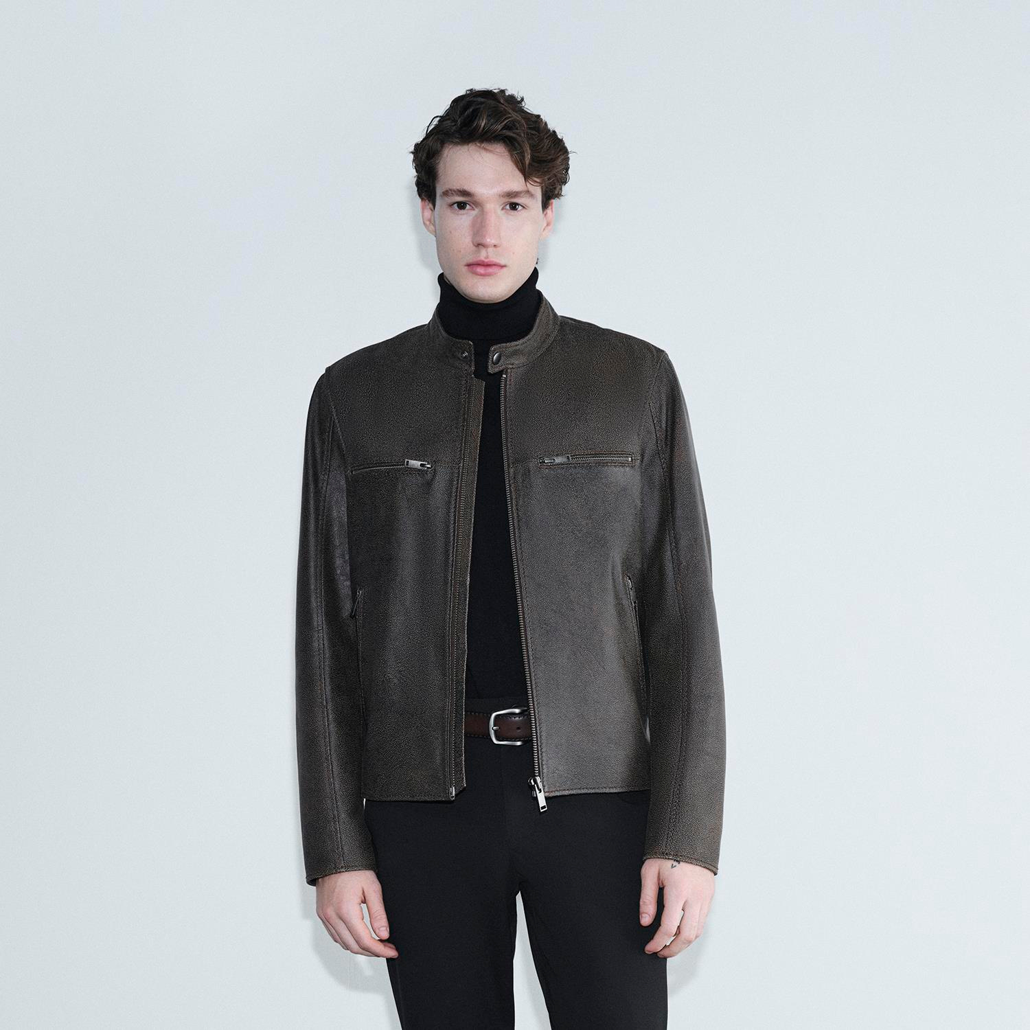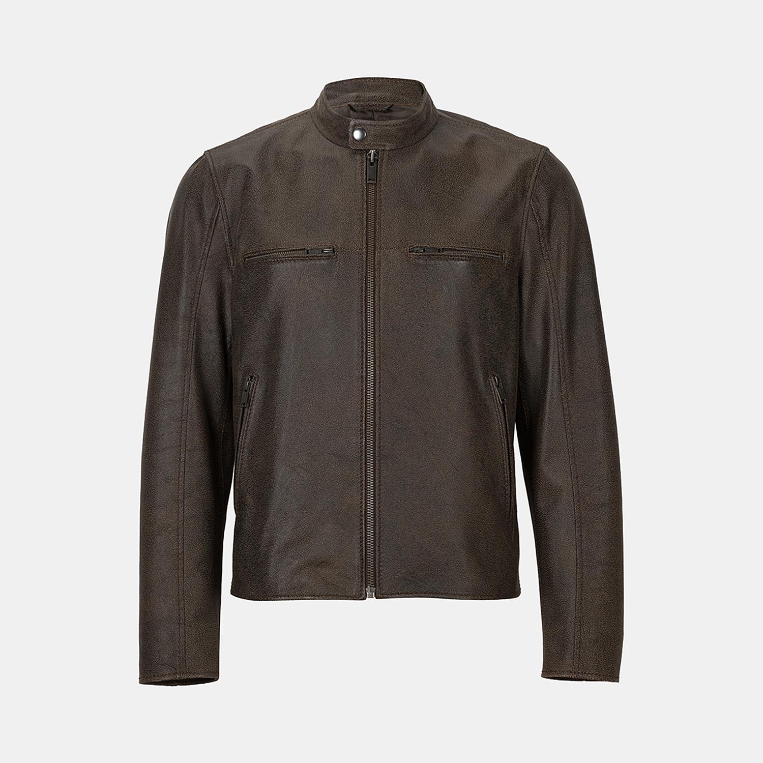 Erkek Kahve Hakim Yakalı Fit Deri Ceket