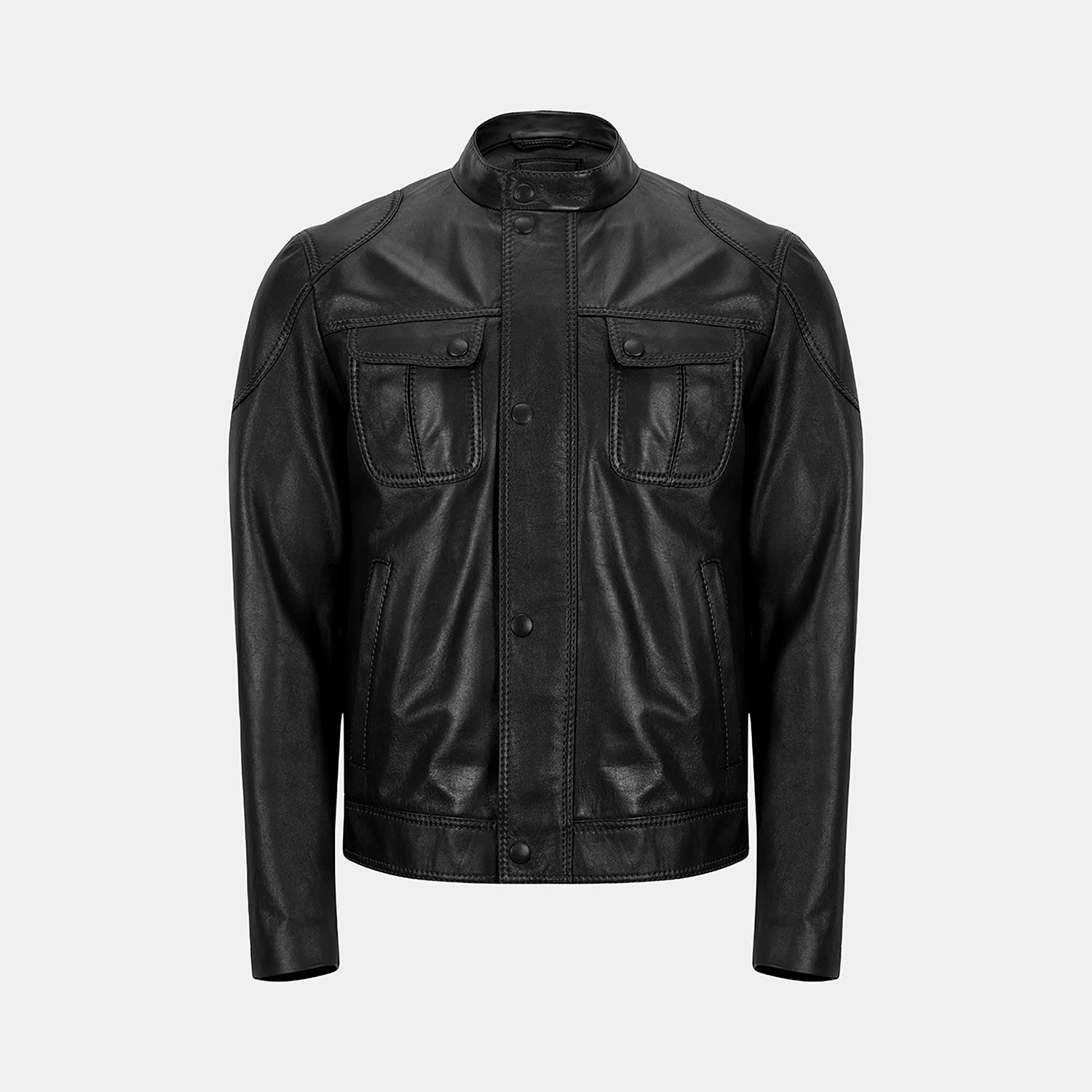 Erkek Siyah Hakim Yakalı Deri Ceket