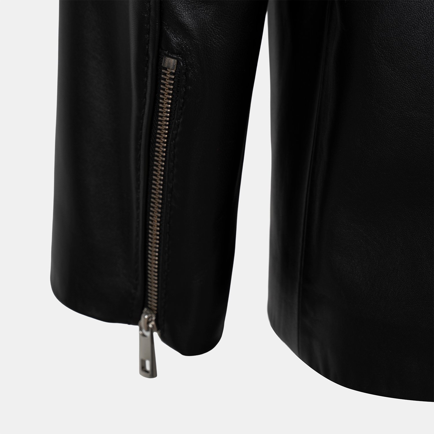 Kadın Siyah Gömlek Yakalı Deri Ceket