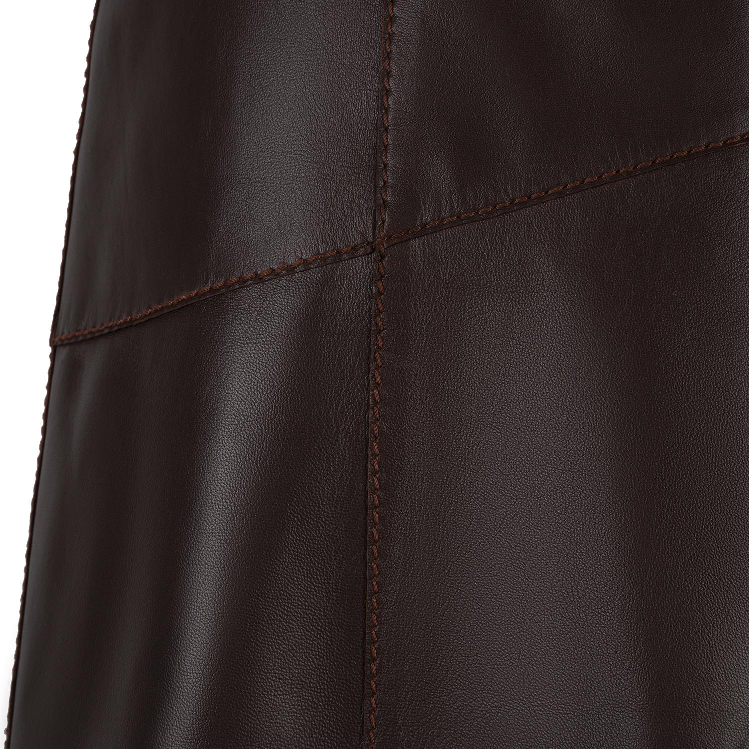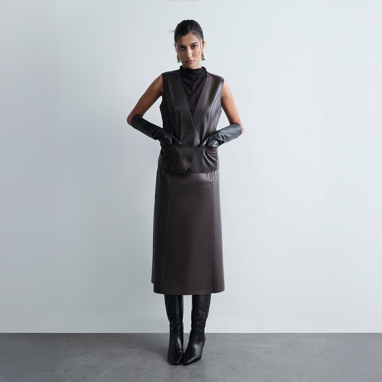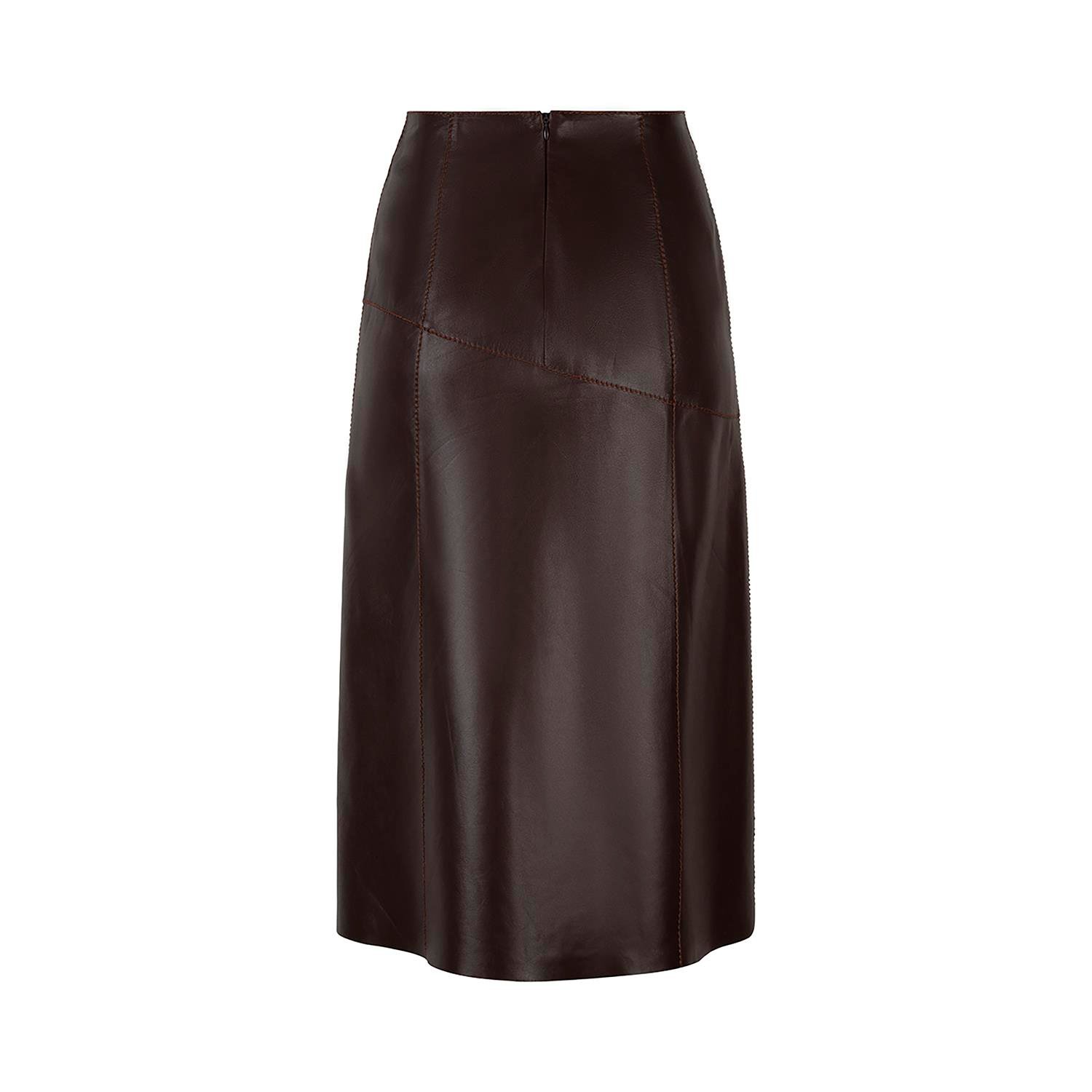 Kadın Koyu Kahve Midi Boy Deri Etek