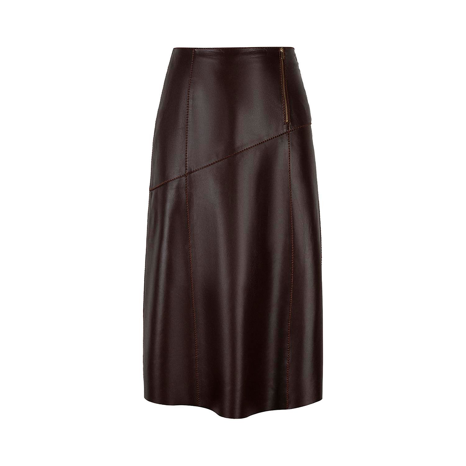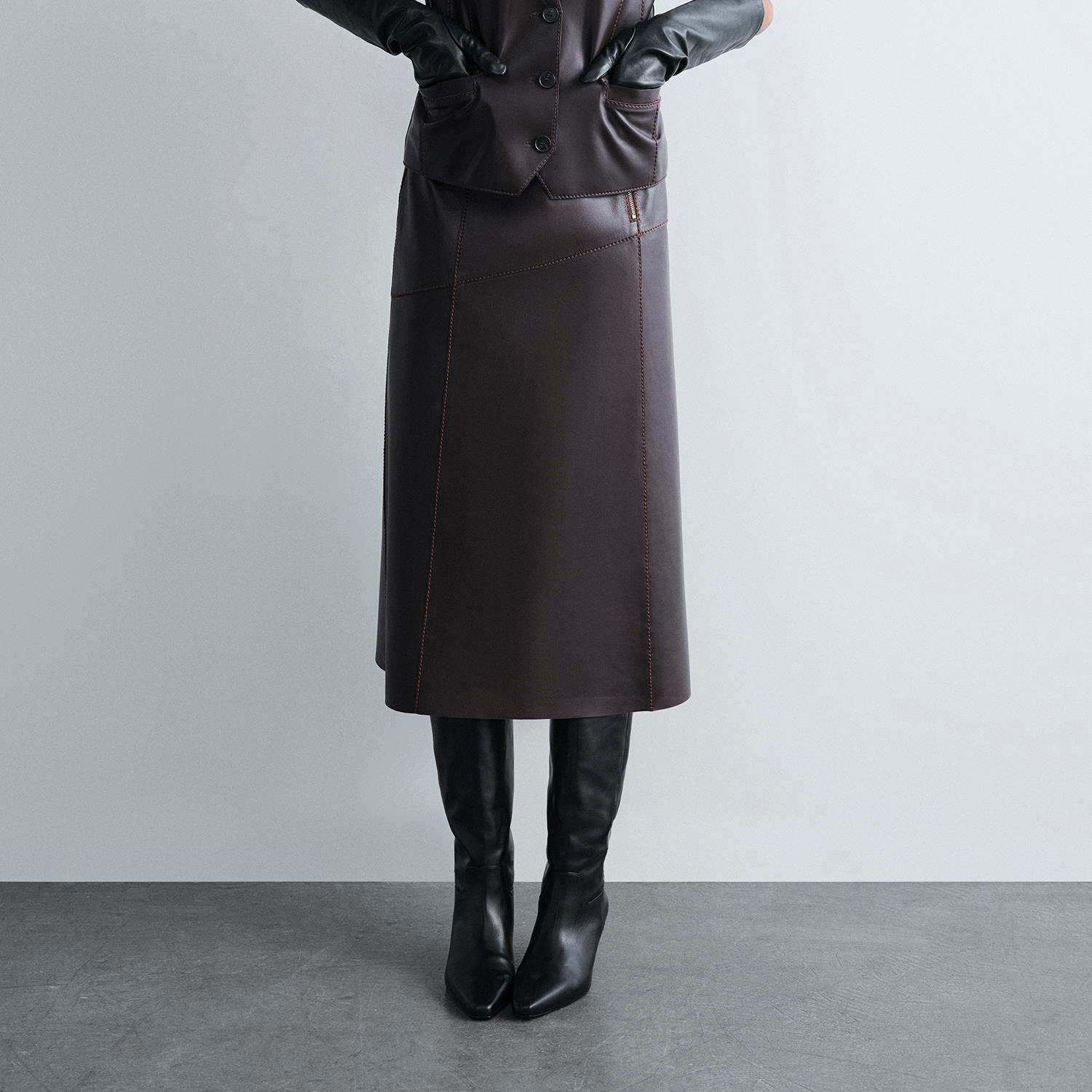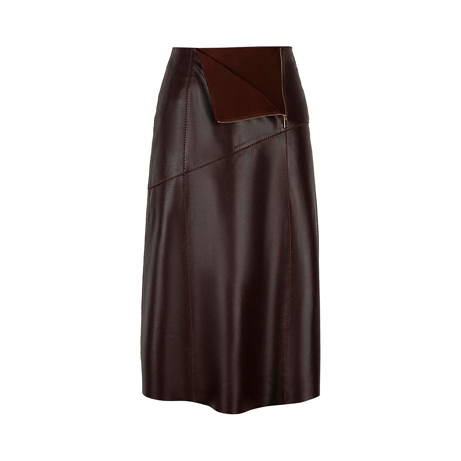 Kadın Koyu Kahve Midi Boy Deri Etek