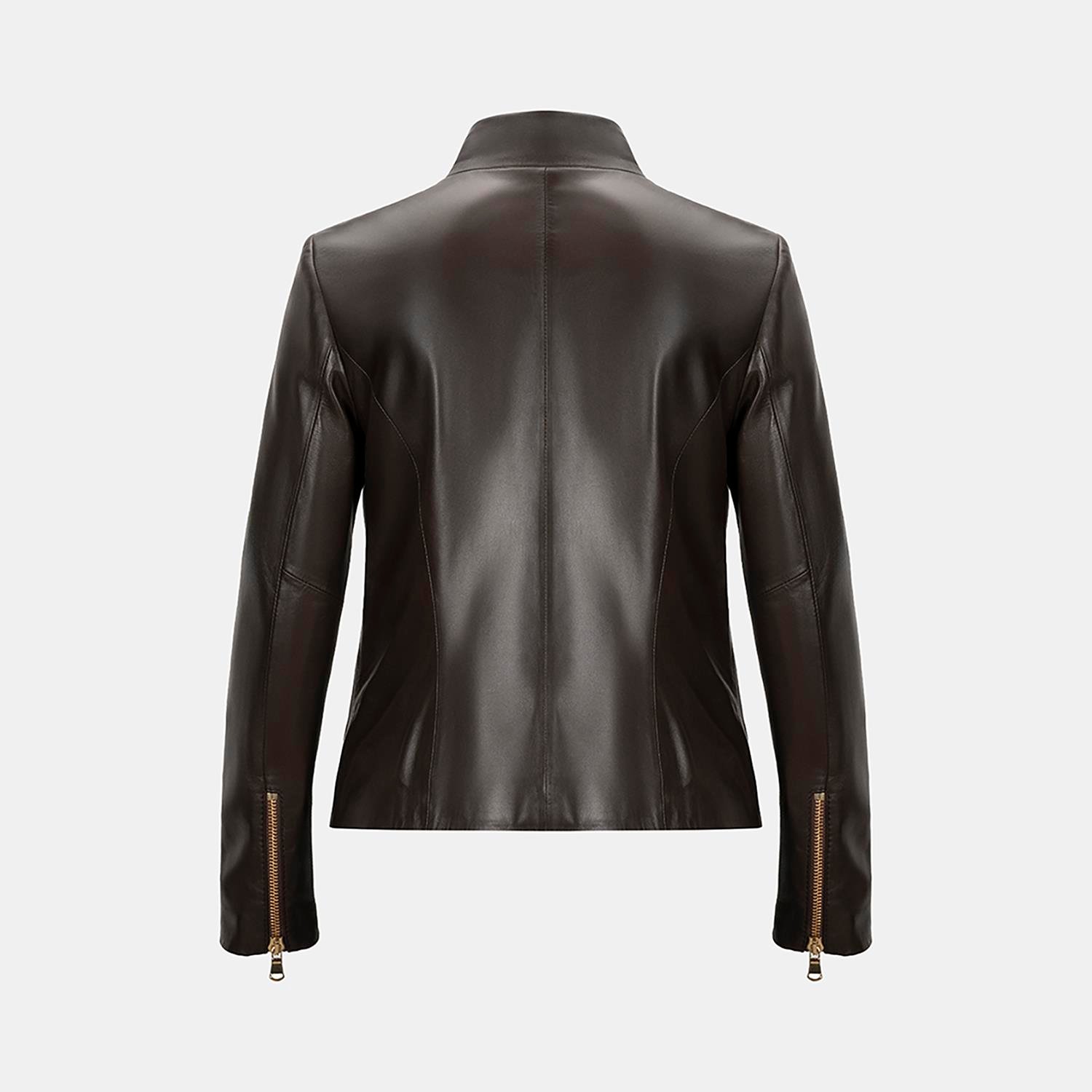Kadın Kahve Hakim Yakalı Fit Deri Ceket