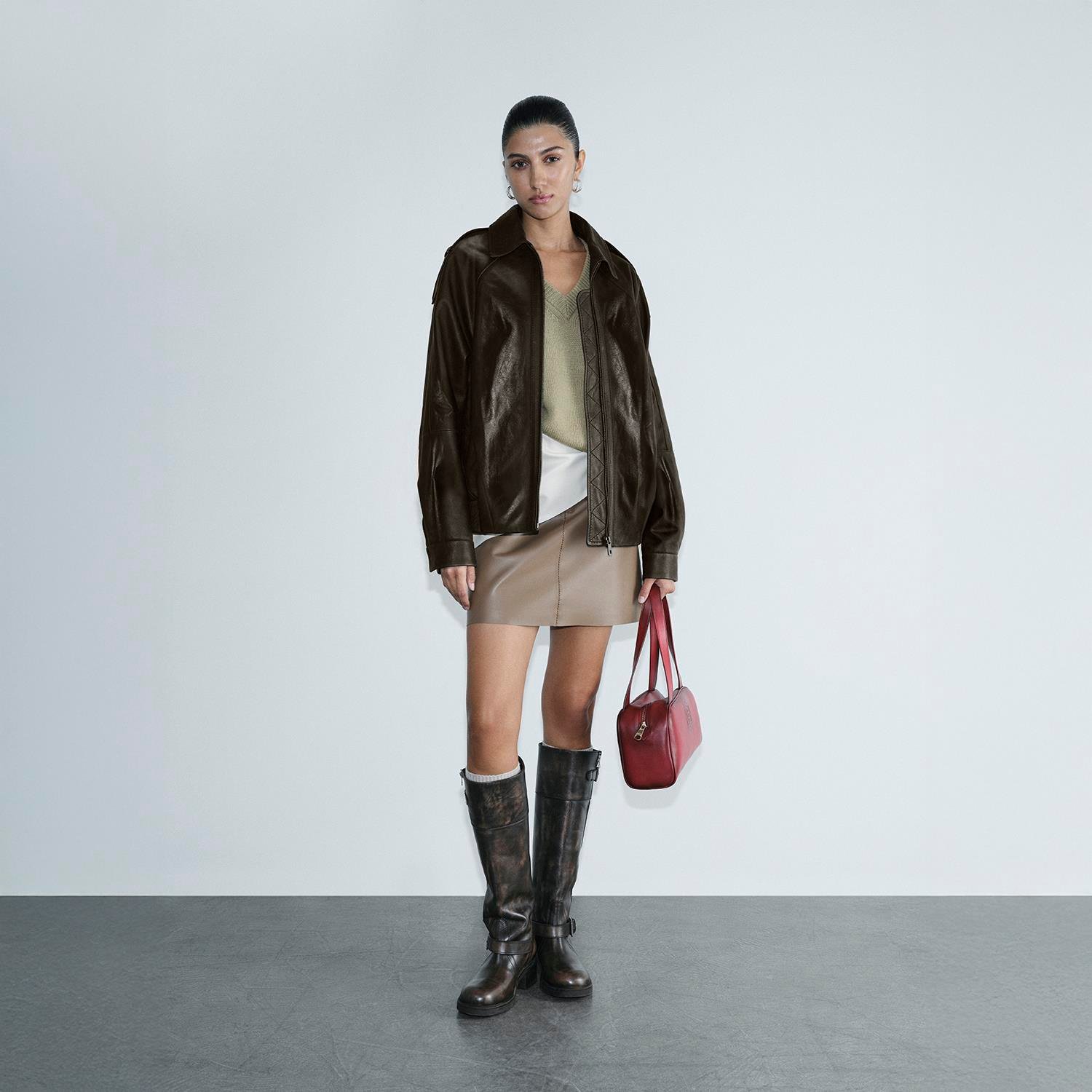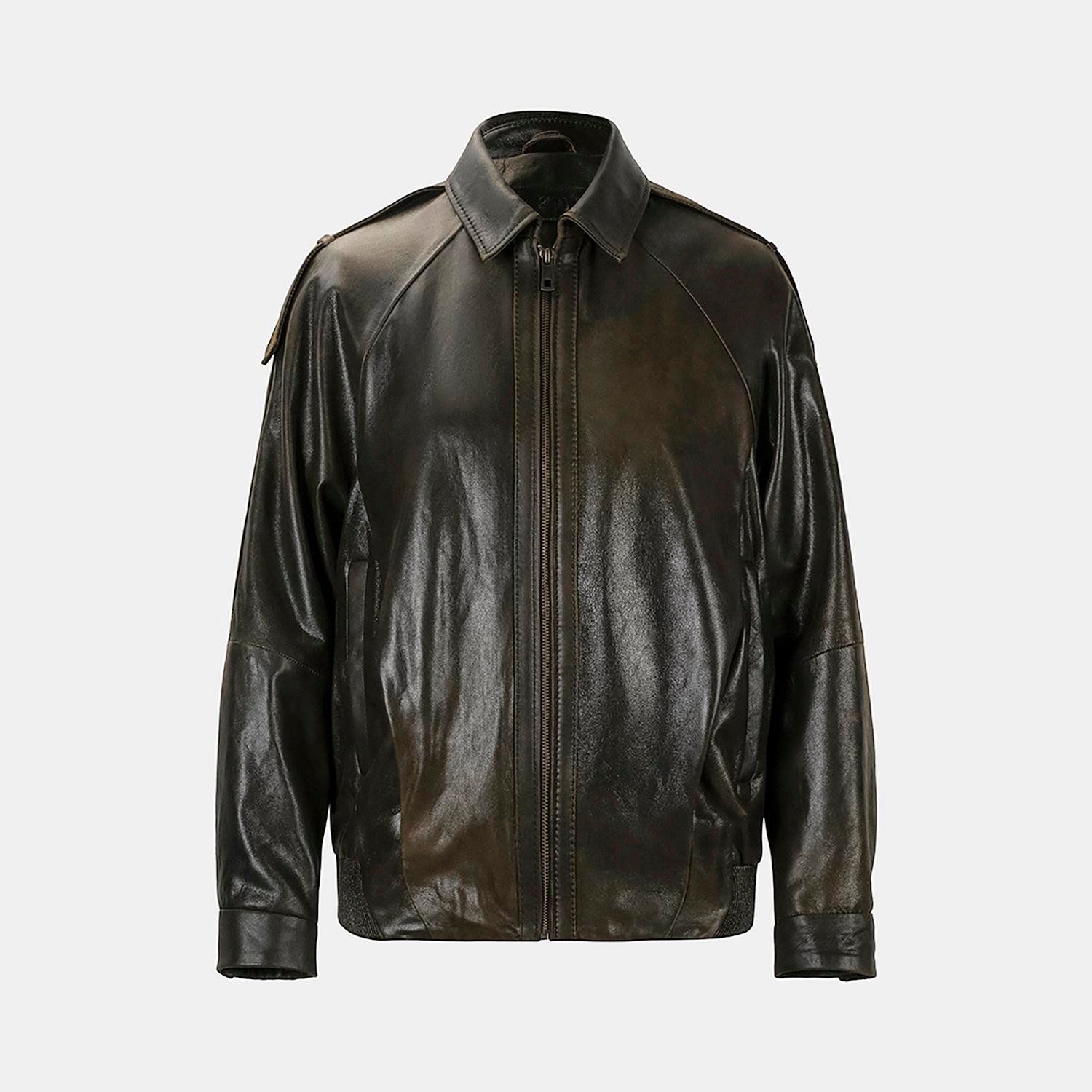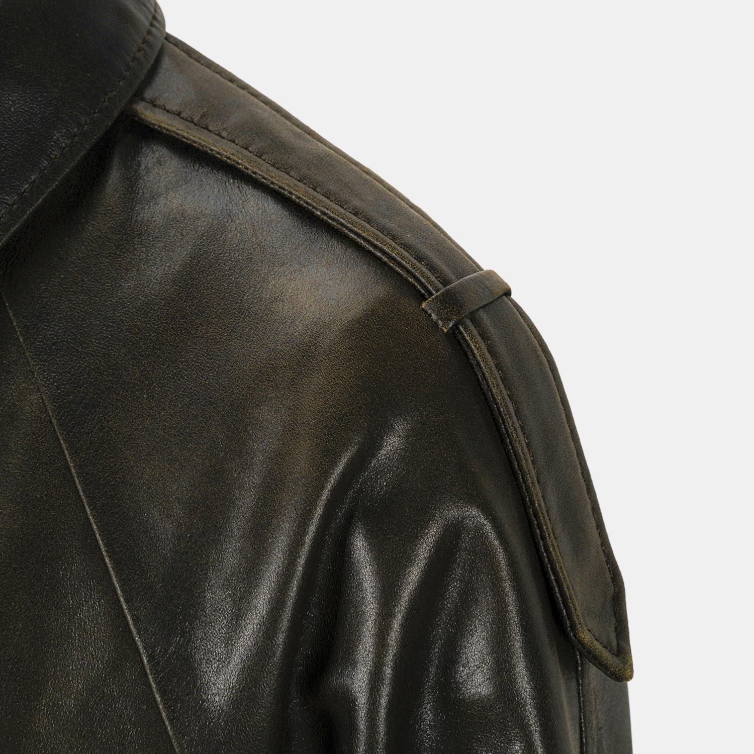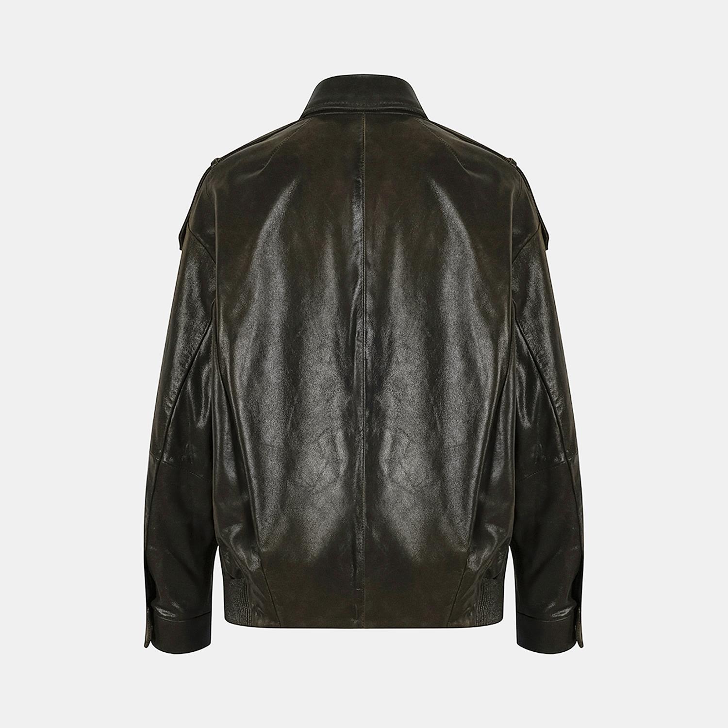 Kadın Yeşil Gömlek Yakalı Deri Bomber Ceket