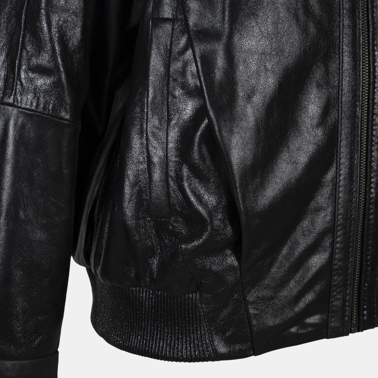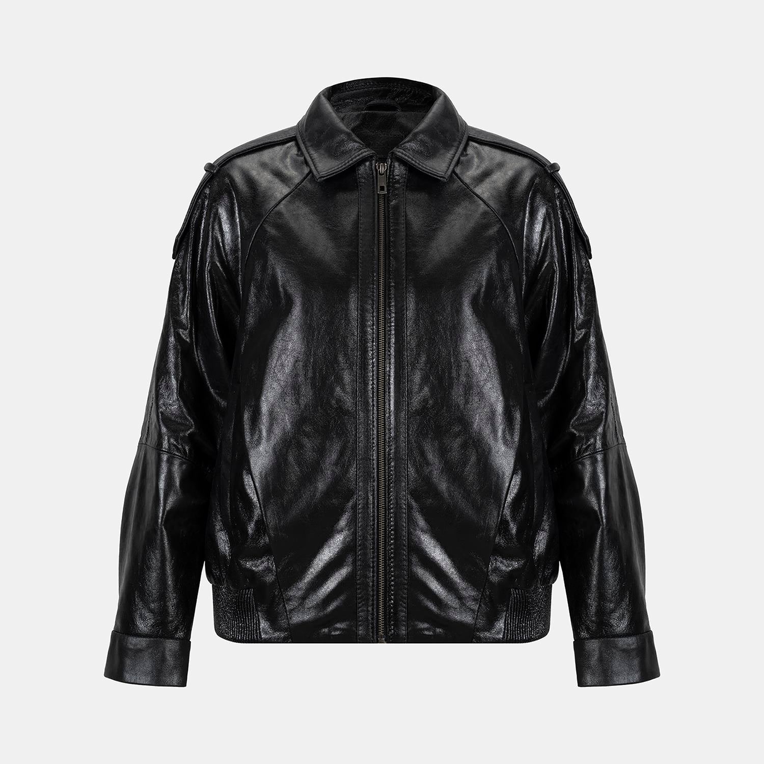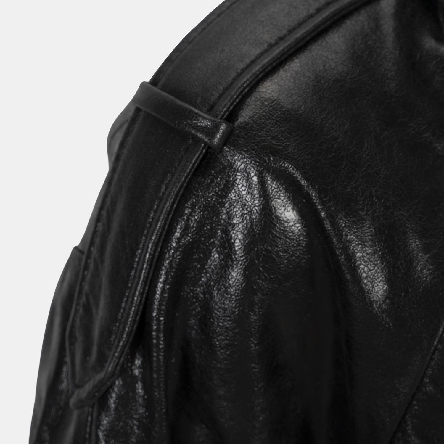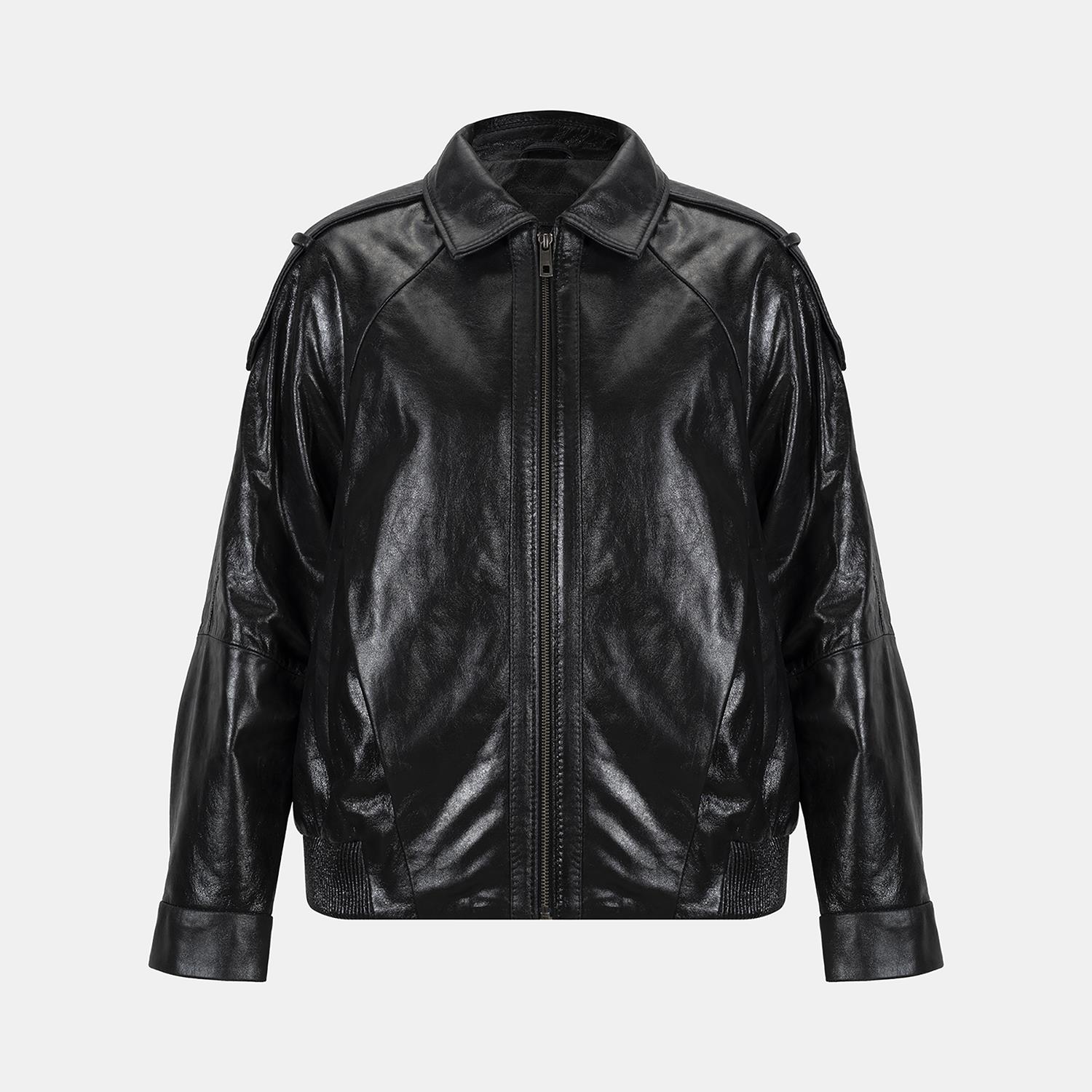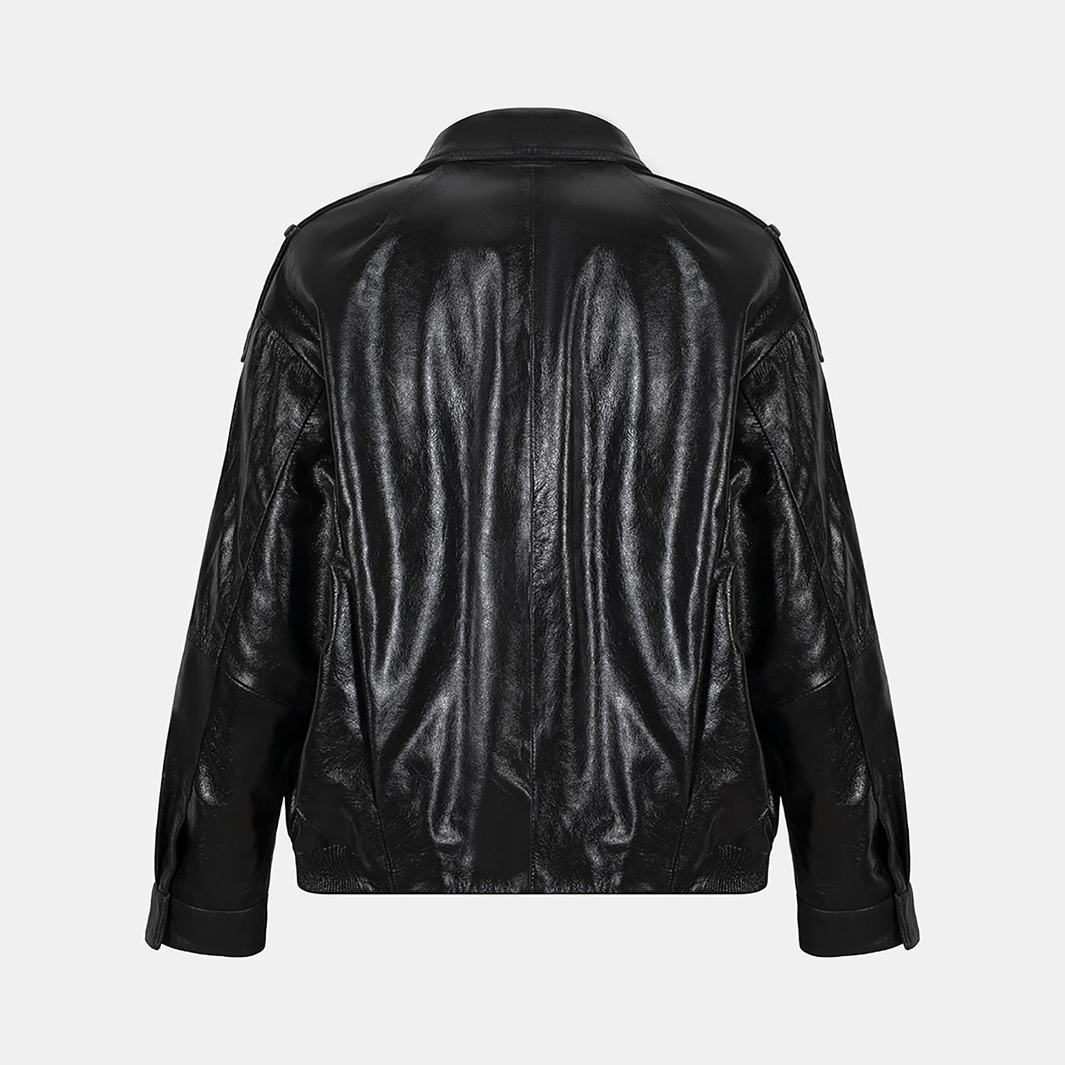 Kadın Siyah Gömlek Yakalı Deri Bomber Ceket