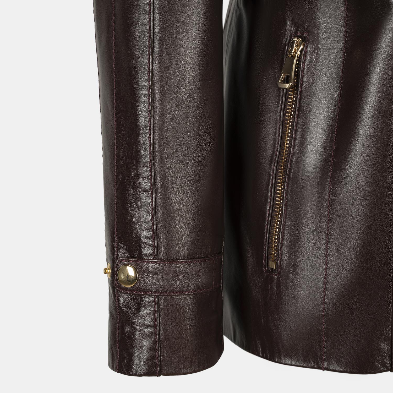 Kadın Bordo Kapüşonlu Deri Mont