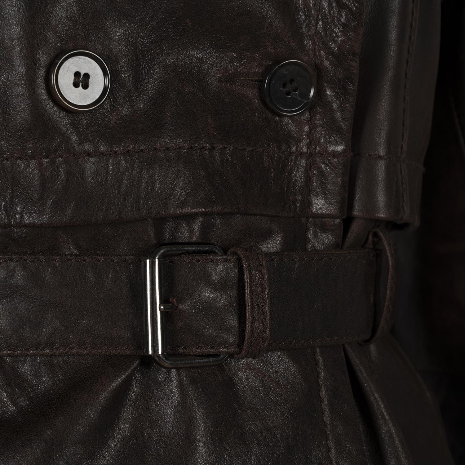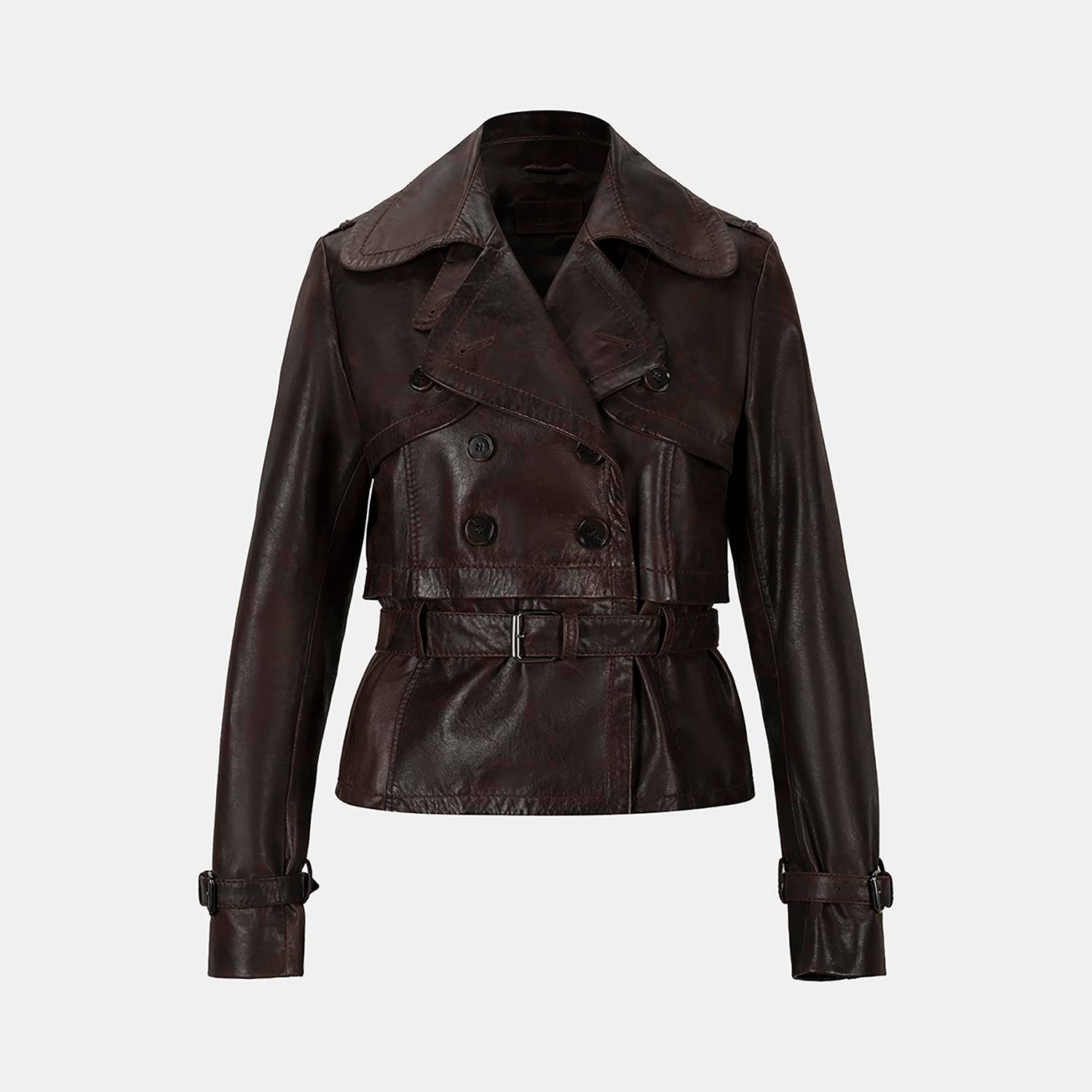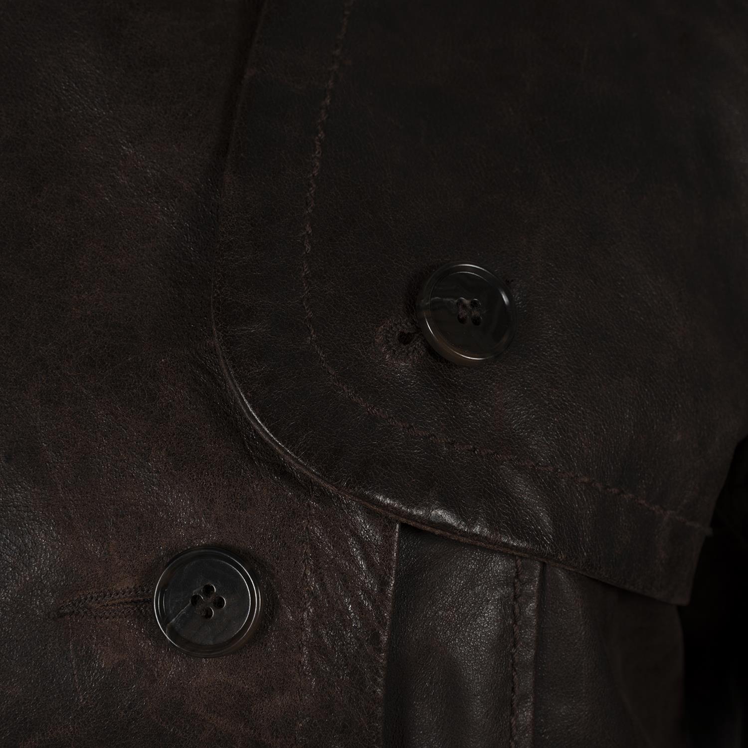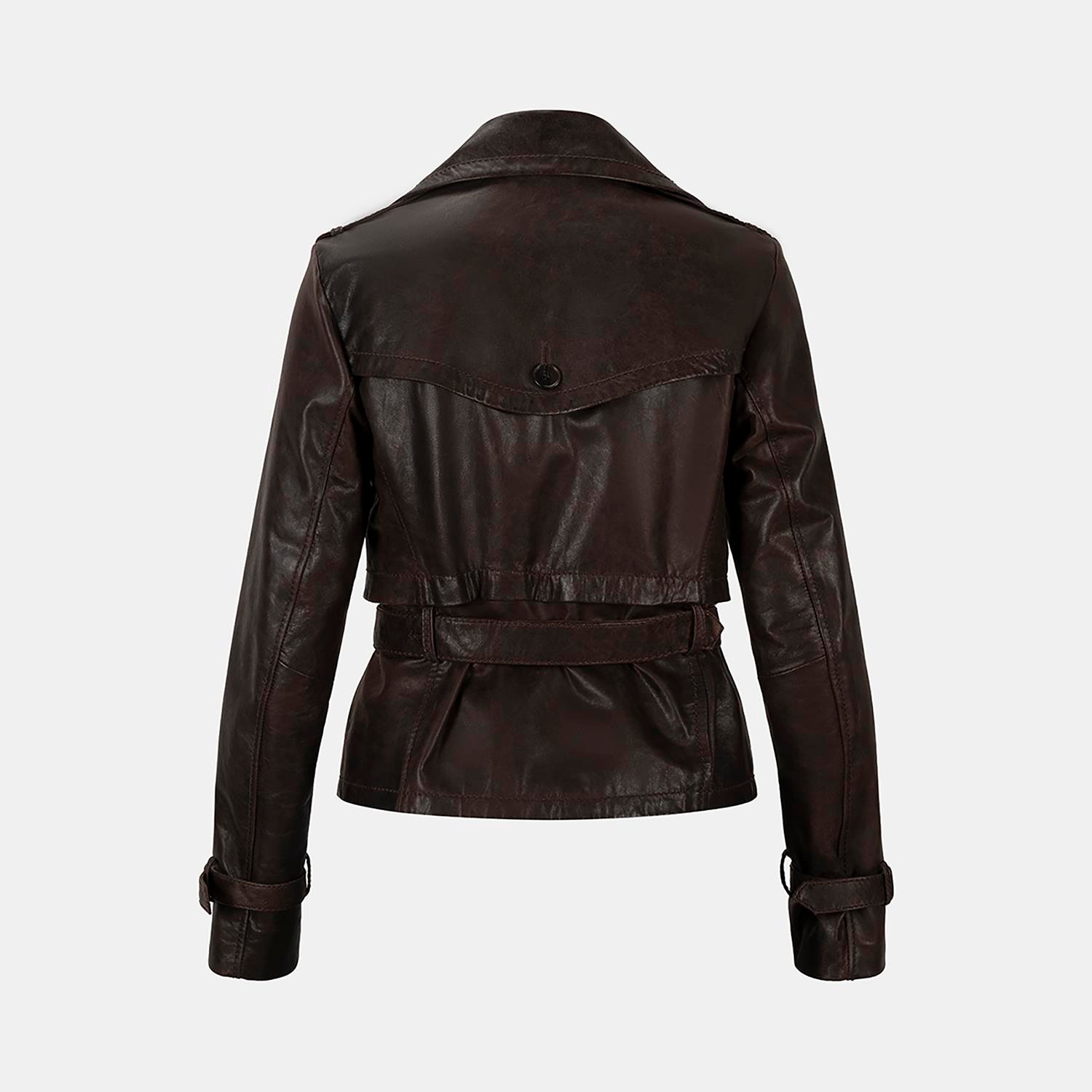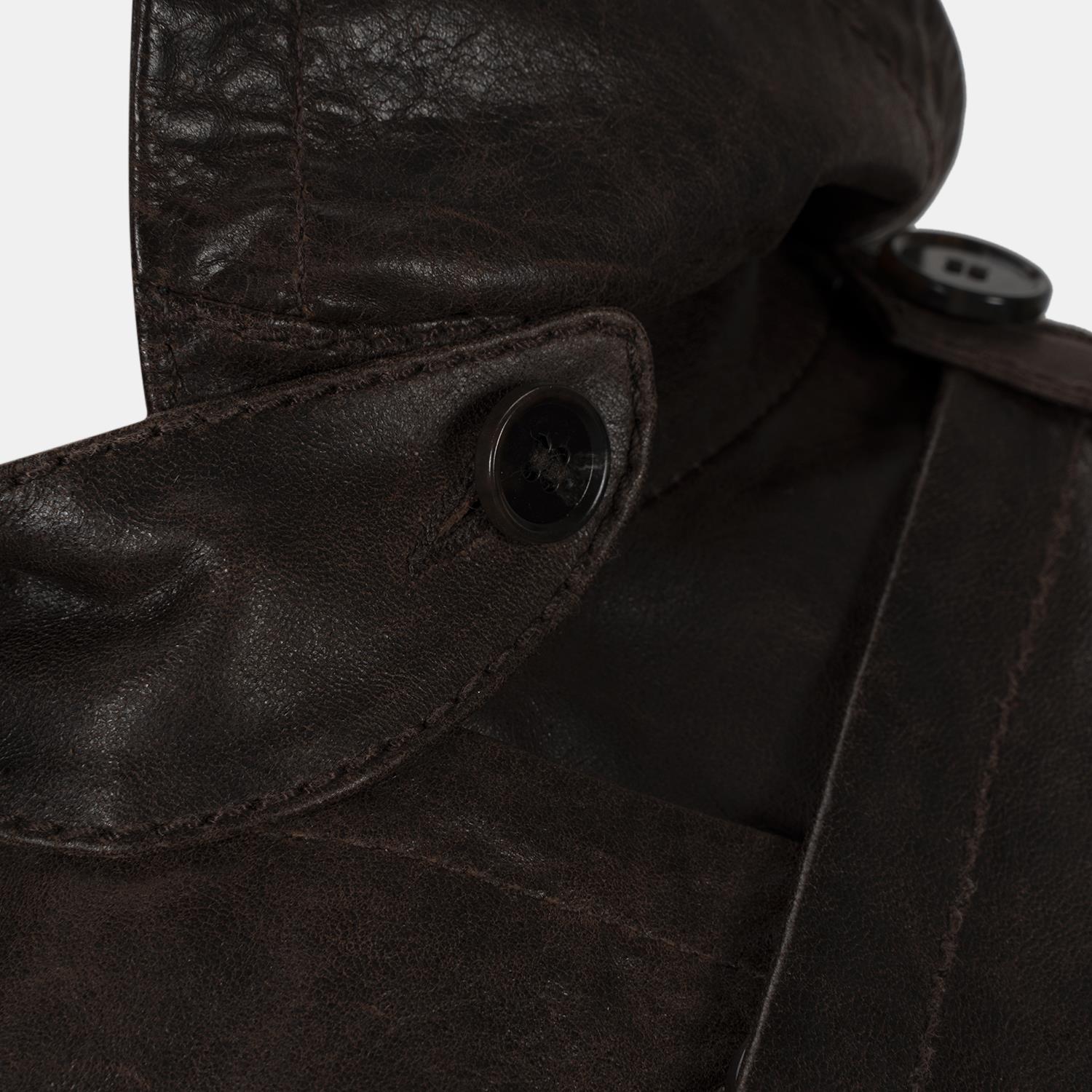 Kadın Kahve Yakalı Deri Kısa Trençkot