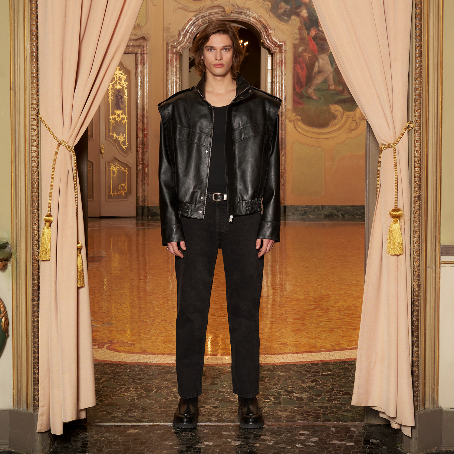 Net omuzlar ve sade detaylar,ceketin mimari formunu öne çıkarırken cinsiyet kodlarından bağımsız bir stil dili kurar.