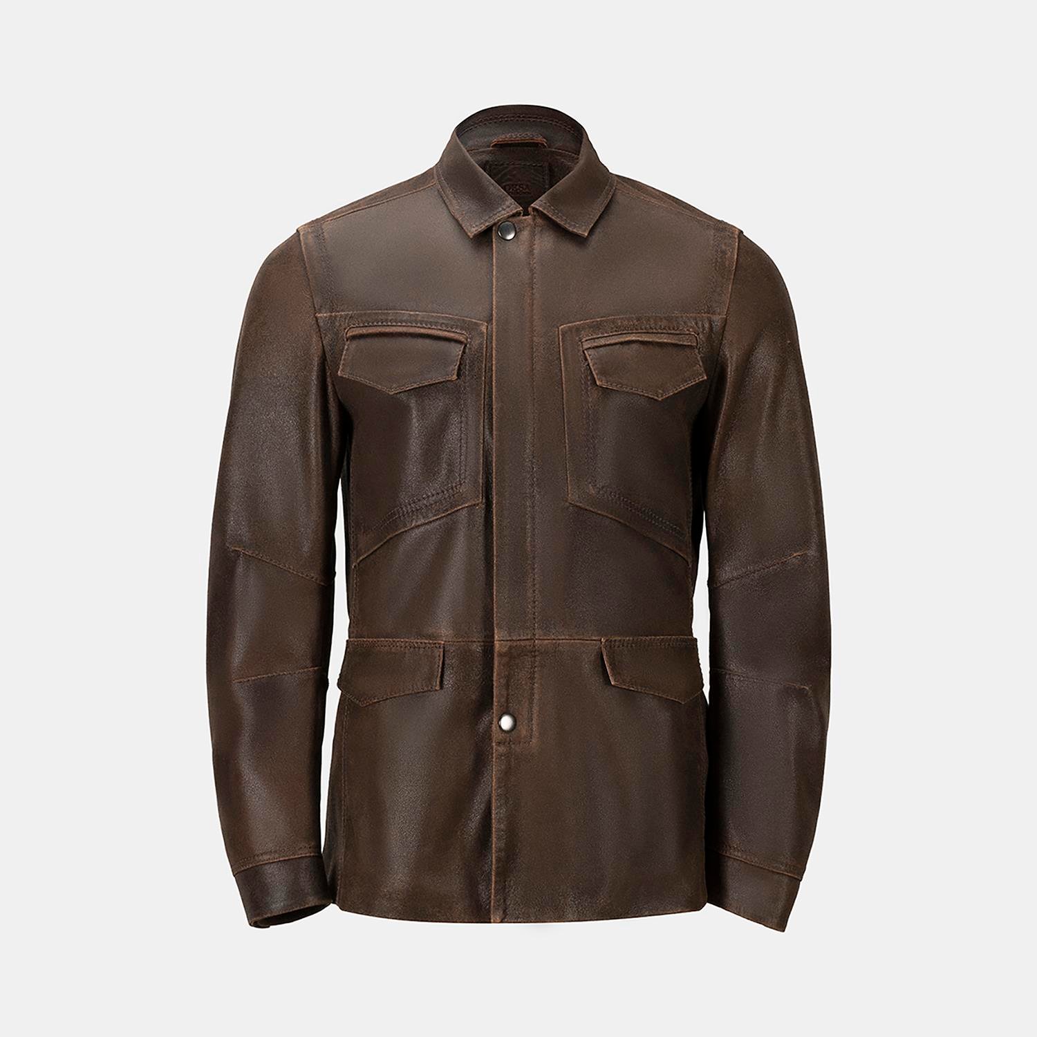 Erkek gömlek yakalı deri mont.