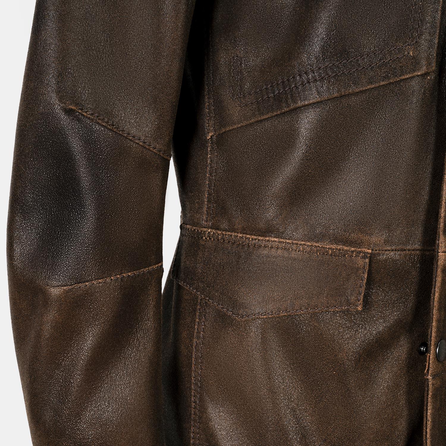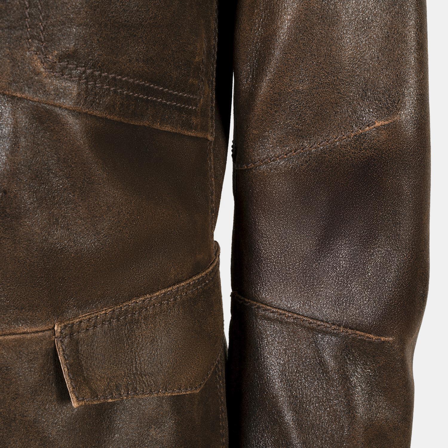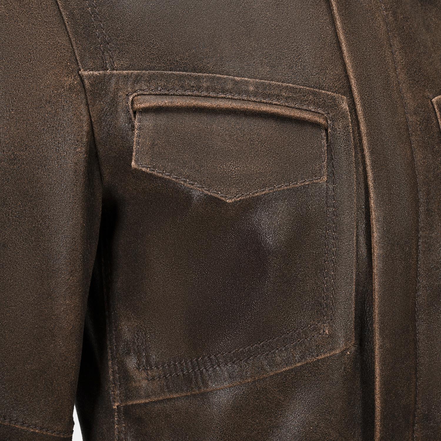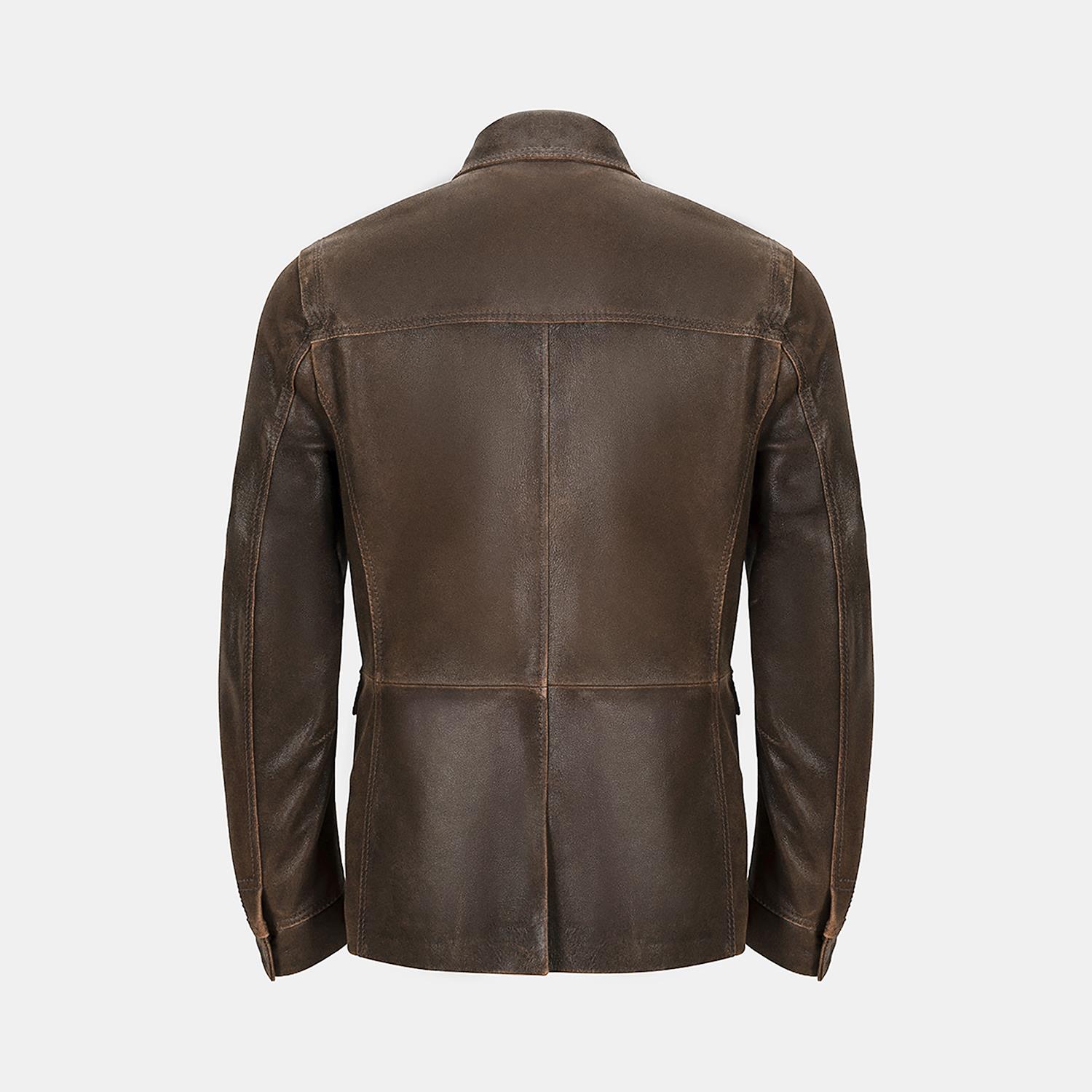 Erkek Acı Kahve Gömlek Yakalı Deri Mont