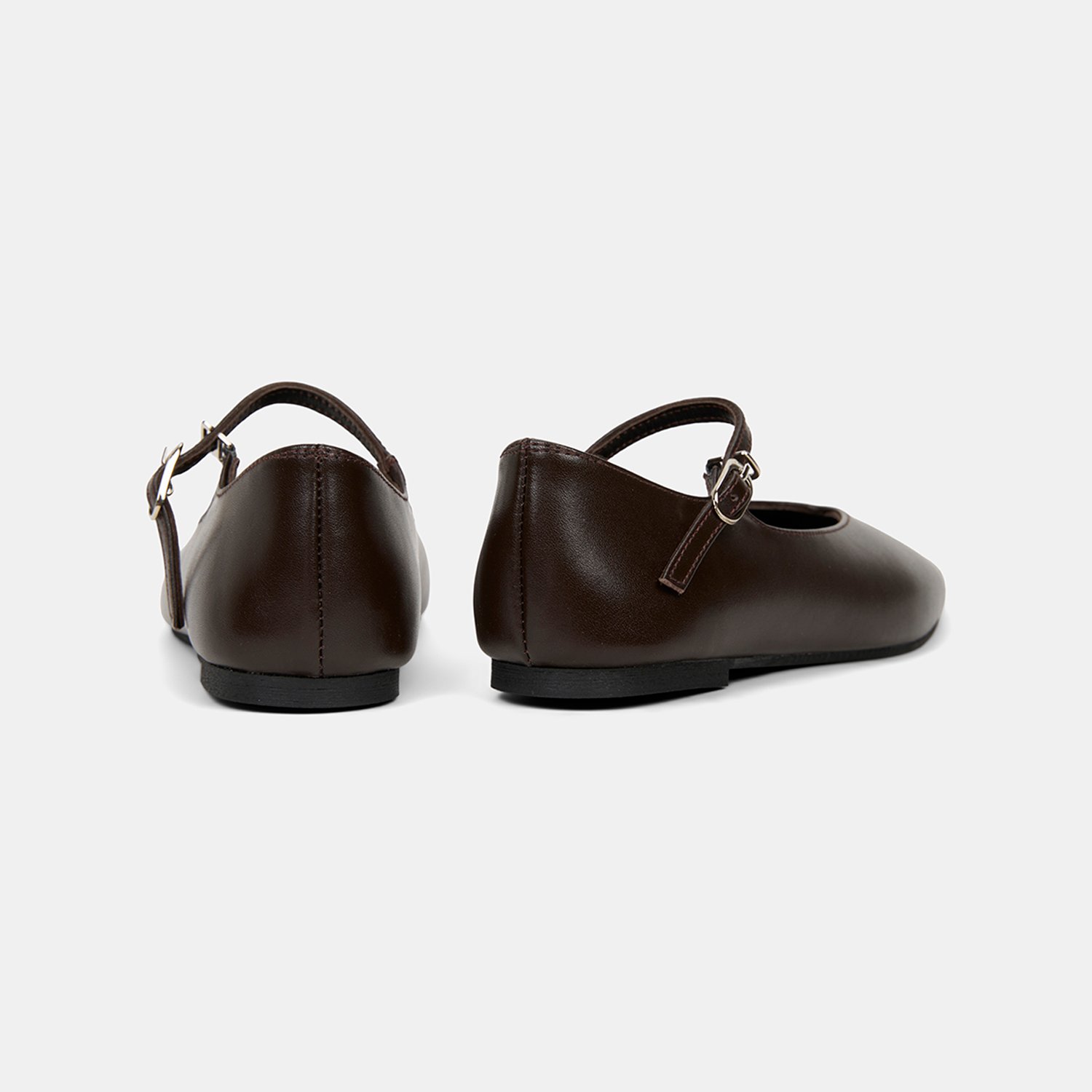 Kadın Acı Kahve Ayarlanabilir Metal Tokalı Mary Jane Deri Babet