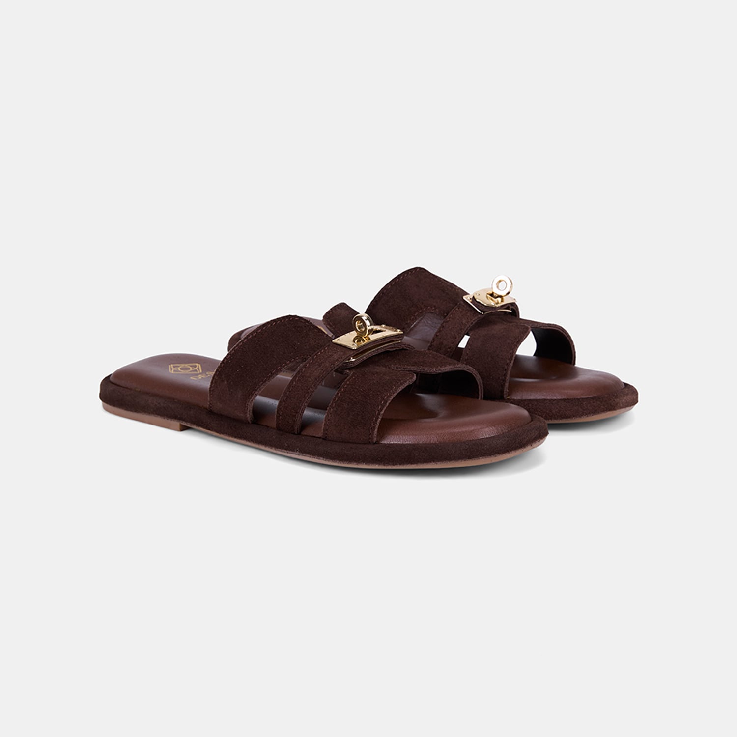 Kadın Acı Kahve Gold Kilit Detaylı Süet Terlik