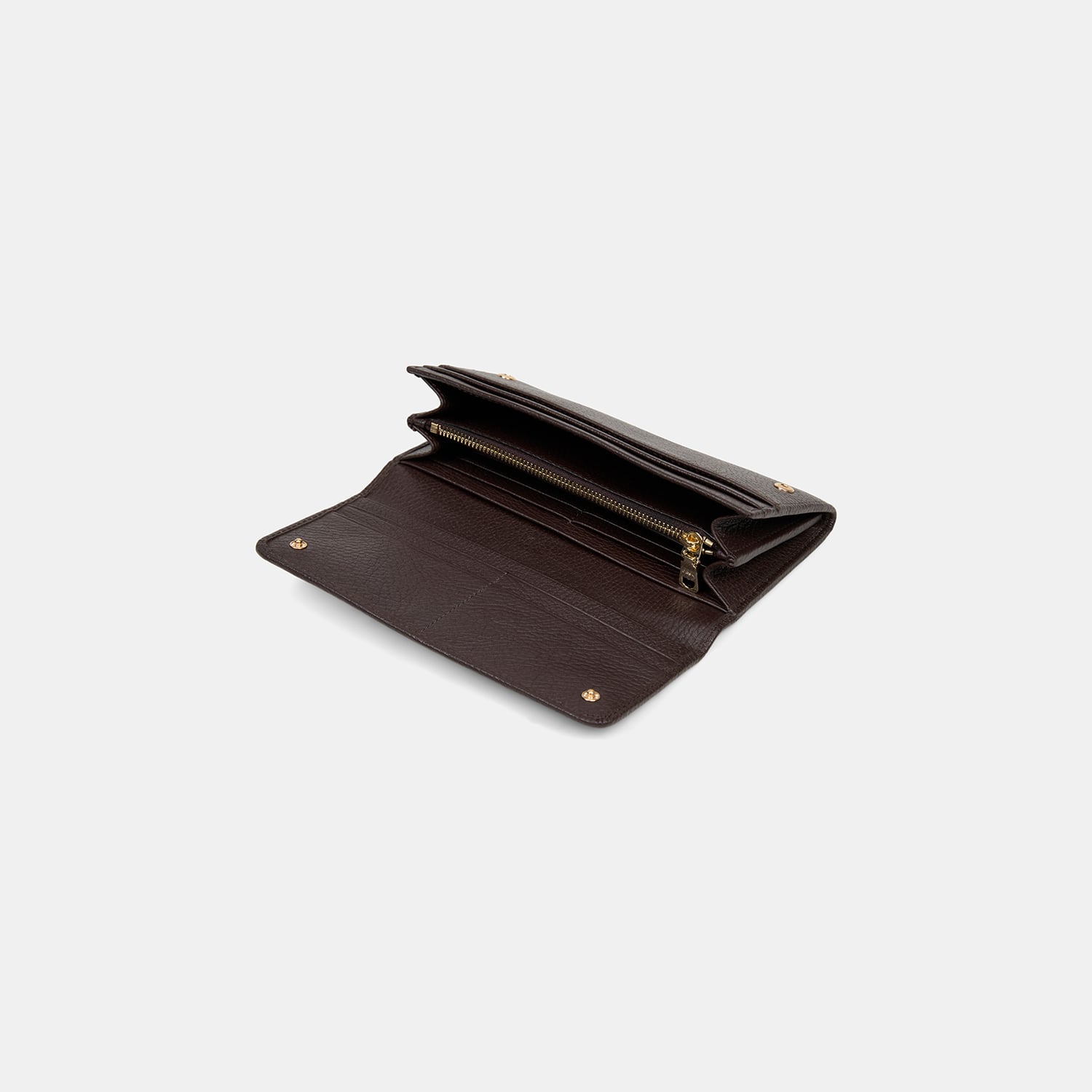 Kapaklı ve yatay formda tasarlanmış kadın cüzdan.