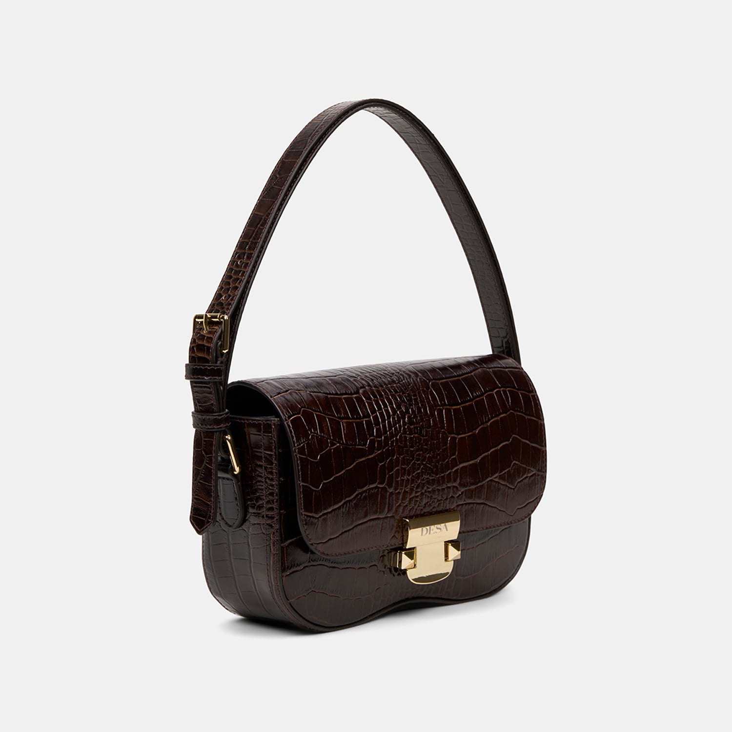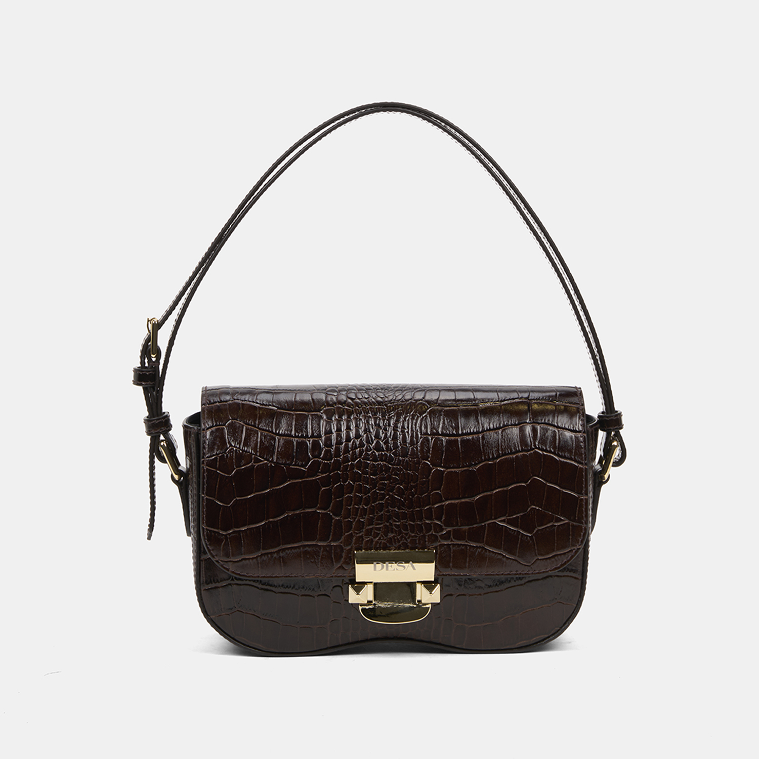 Kadın Acı Kahve Kroko Baskılı Deri Omuz Çantası
