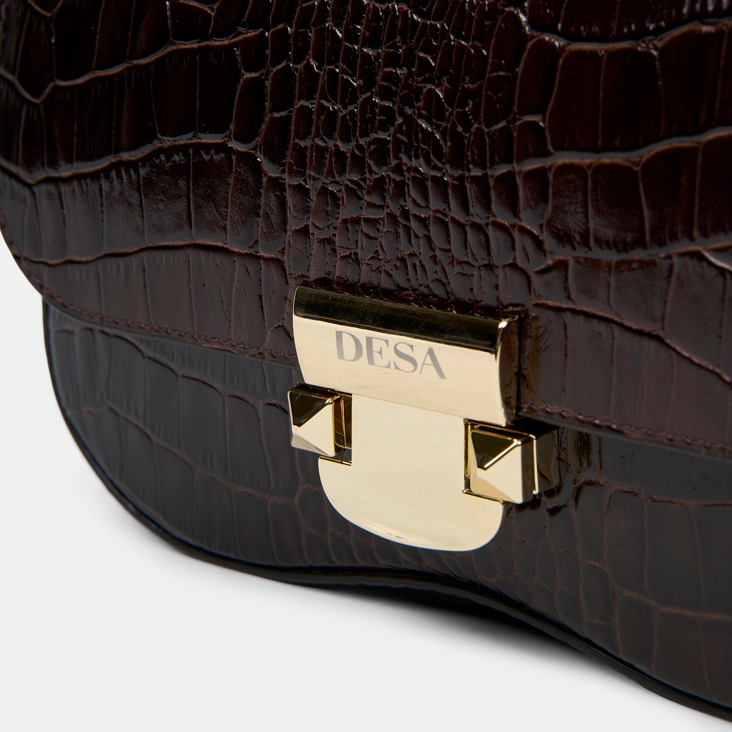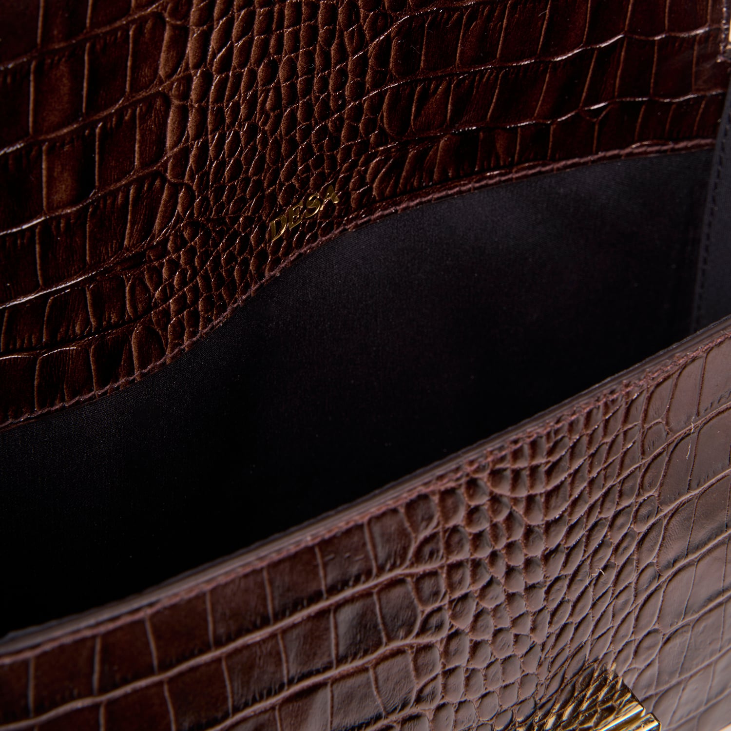 Kroko baskılı dana derisi yüzeyi tasarıma güçlü ve karakterli bir ifade kazandırır.