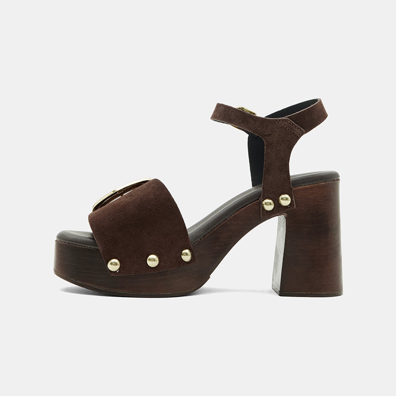 Kadın Acı Kahve Metal Tokalı Platform Topuklu Süet Sandalet