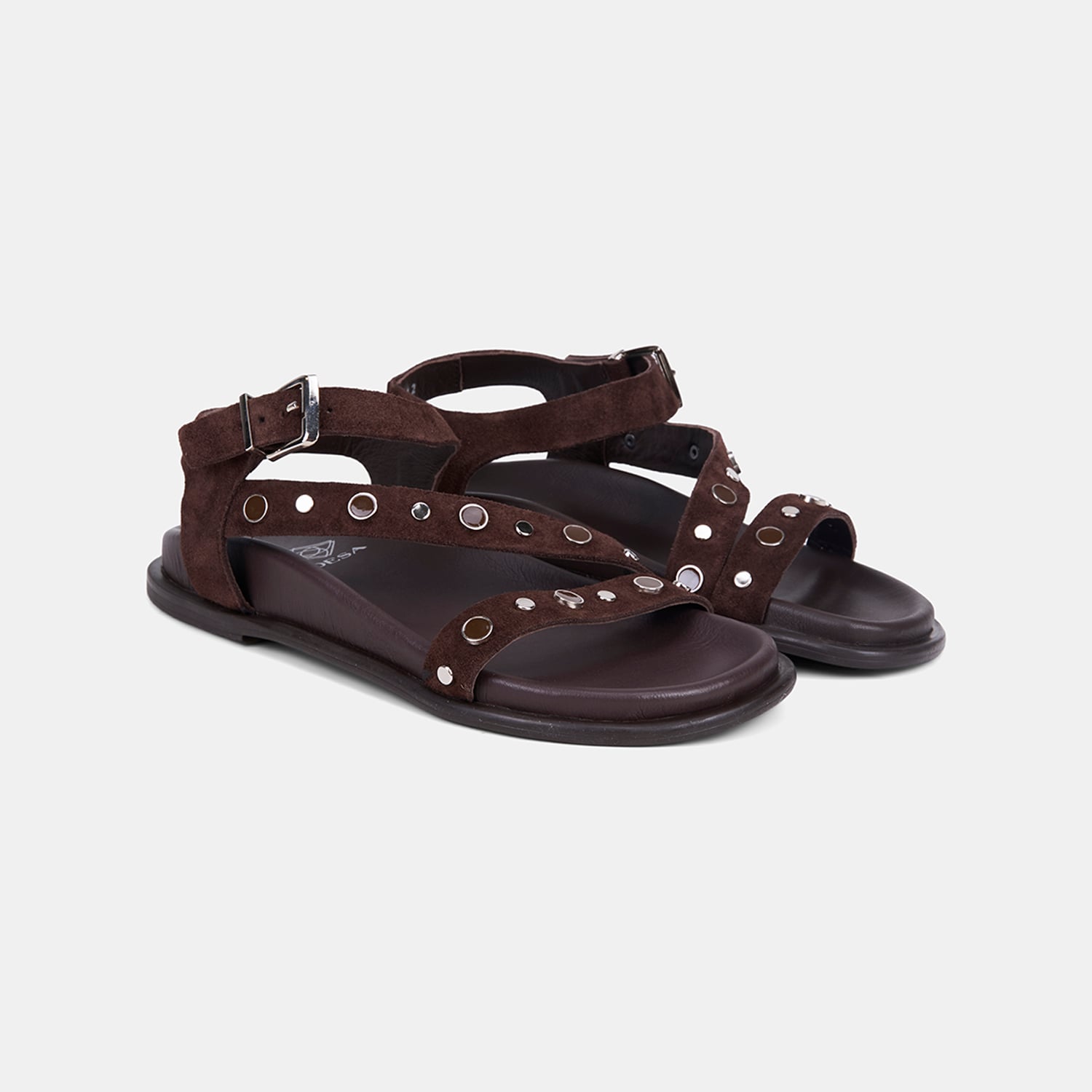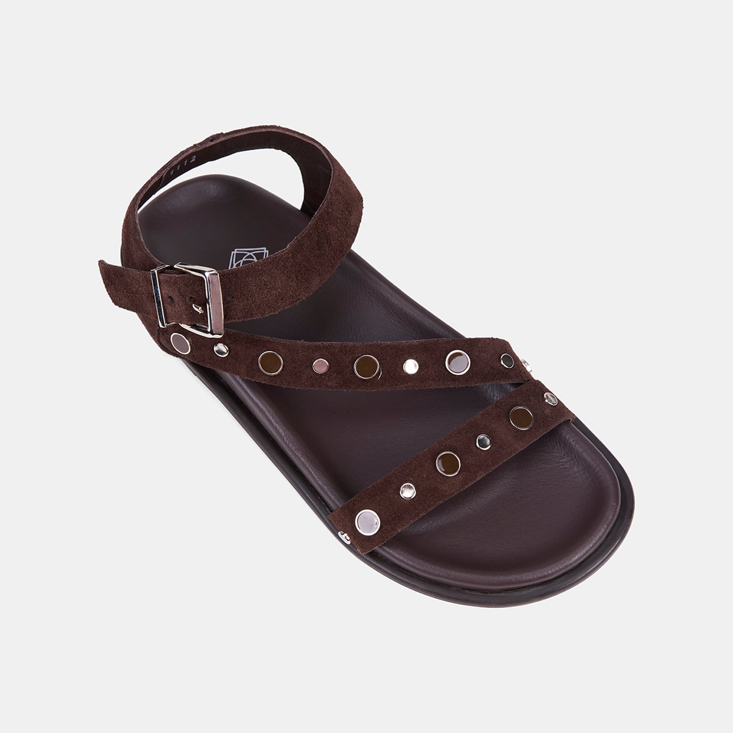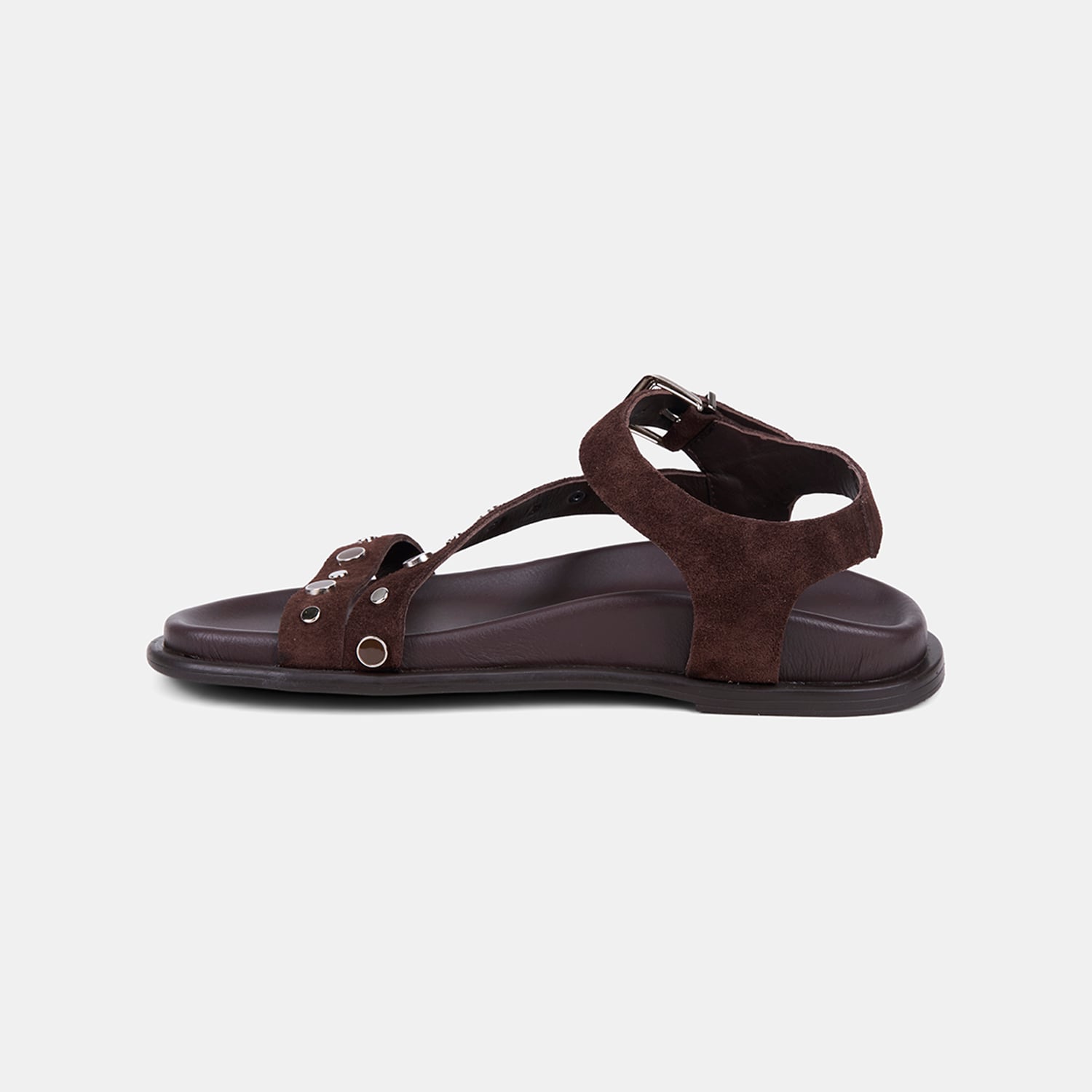 Kadın Acı Kahve Metal Tokalı Zımba Detaylı Süet Sandalet