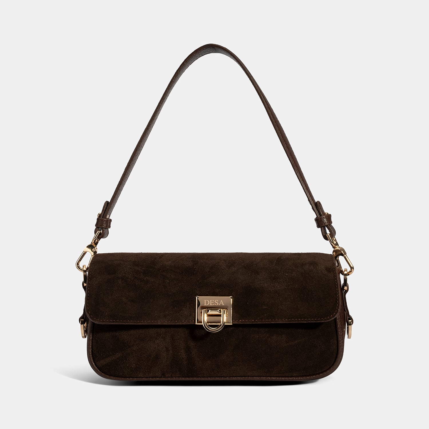 Dana süet dokusuyla sofistike bir görünüm sunarken, ayarlanabilir askısı sayesinde omuzda veya çapraz taşınabilir.