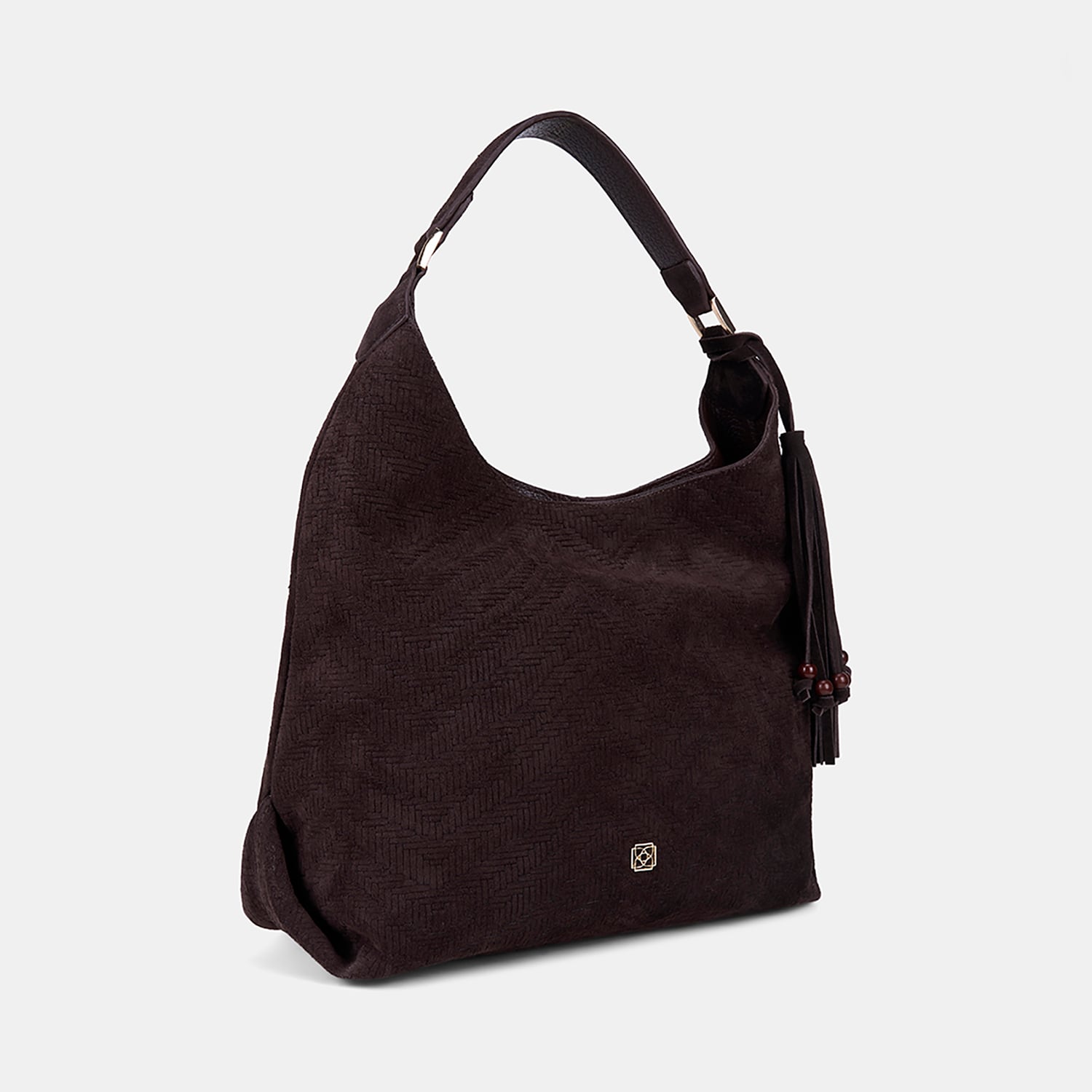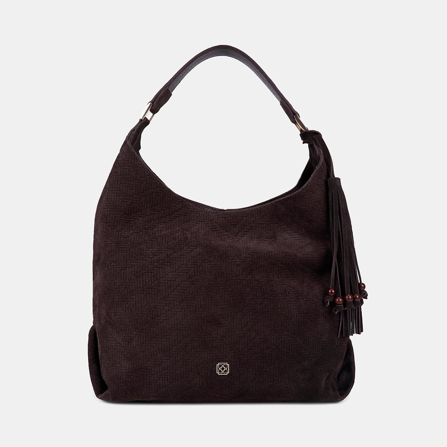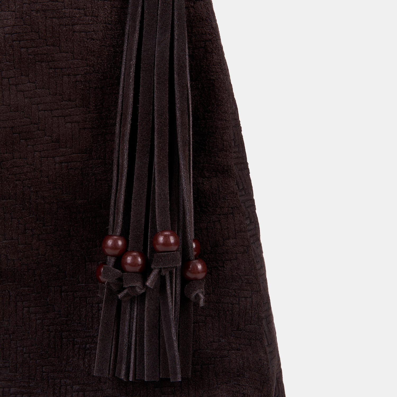 Kadın Acı Kahve Örgü Desenli Püsküllü Süet Dokulu Omuz Çantası
