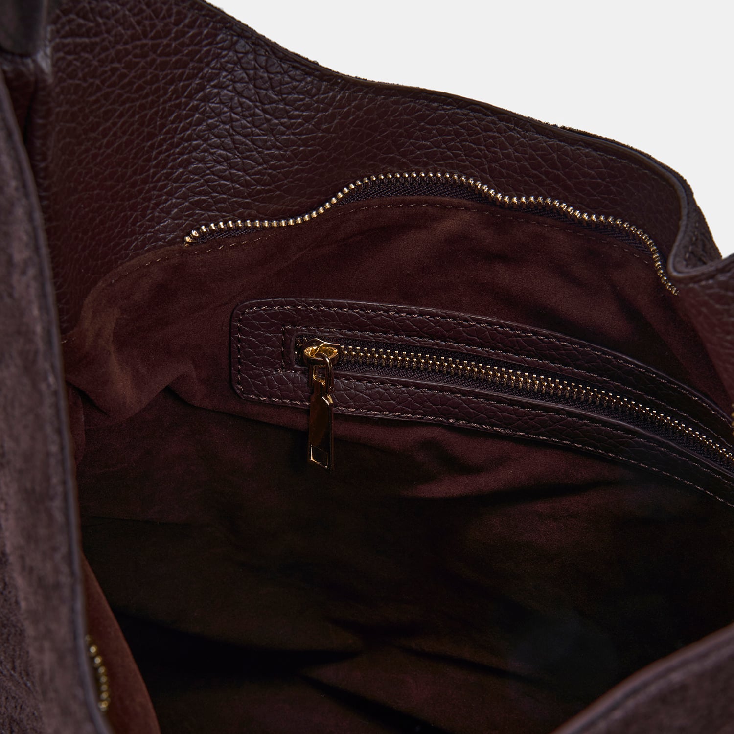 Örgü desenli süet omuz çantası, yumuşak dokusu ve modern formuyla günlük stiline doğal ve özgün bir şıklık kazandırır.