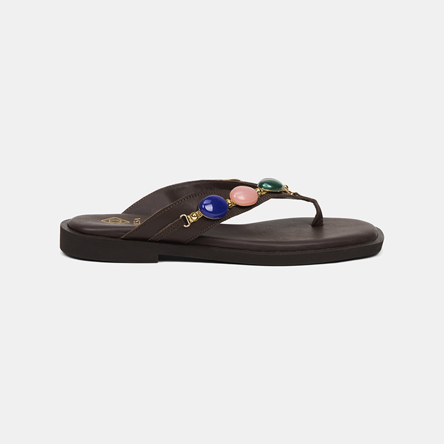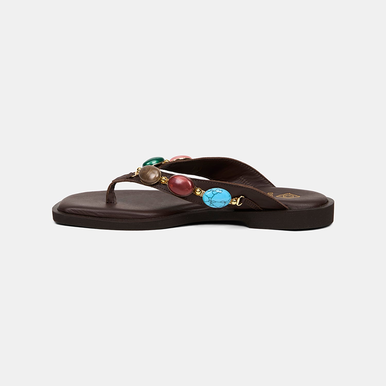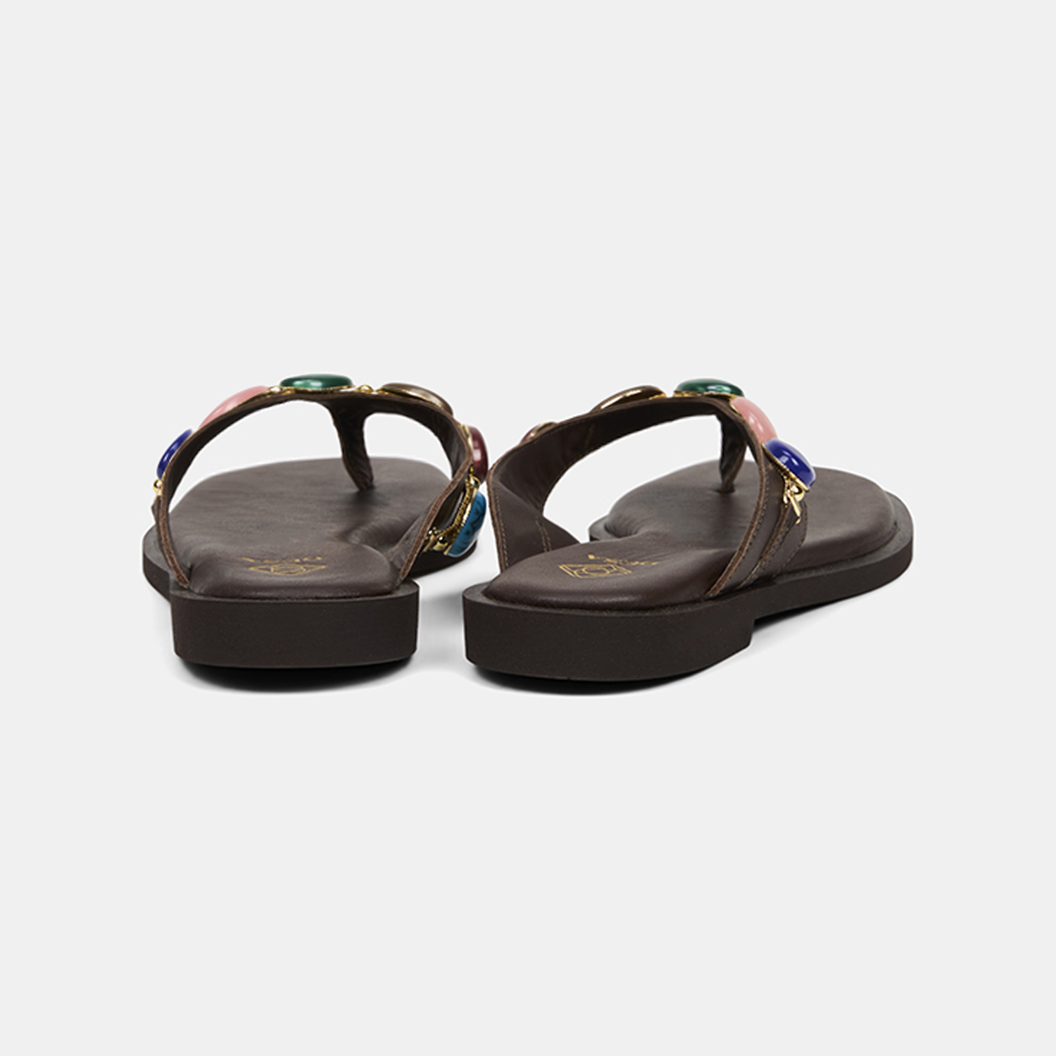 Kadın Acı Kahve Renkli Taş Aksesuarlı Parmak Arası Deri Terlik