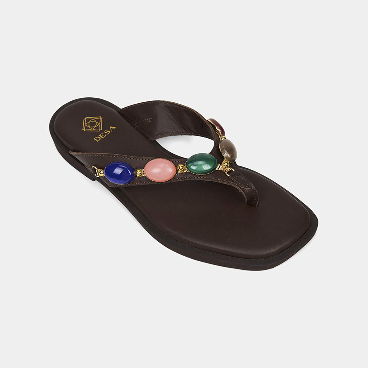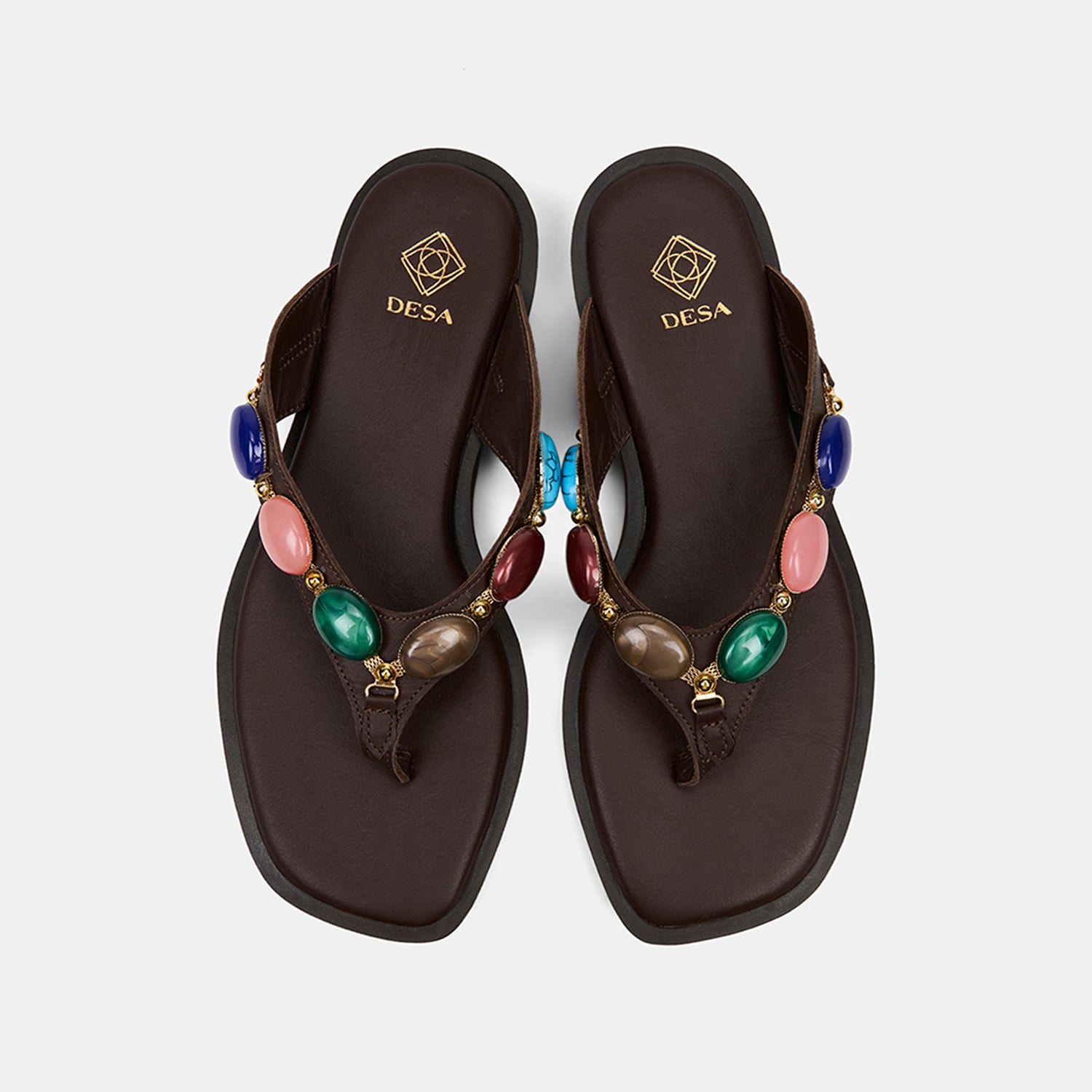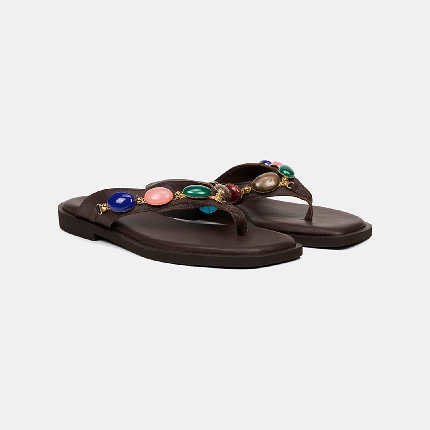 Kadın Acı Kahve Renkli Taş Aksesuarlı Parmak Arası Deri Terlik