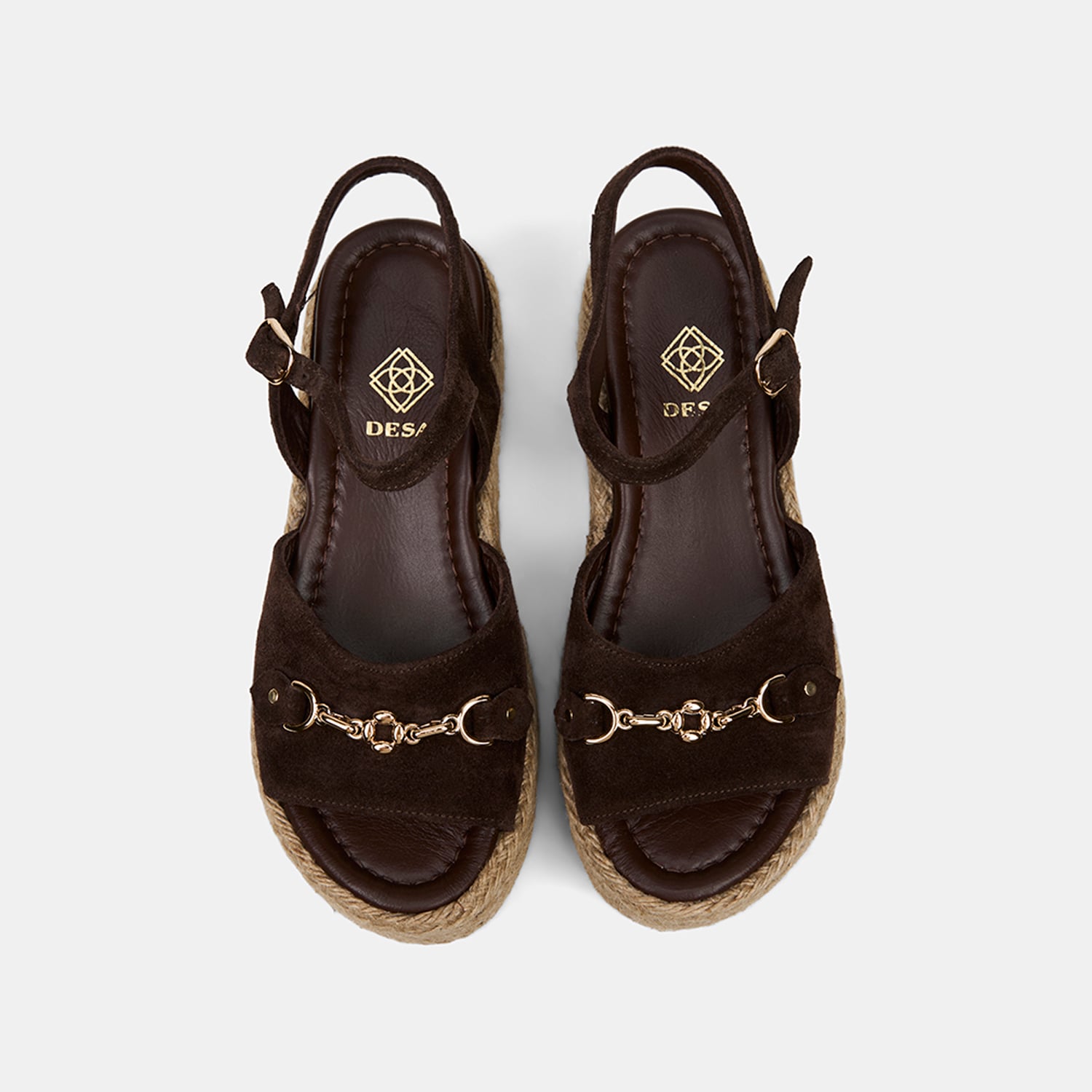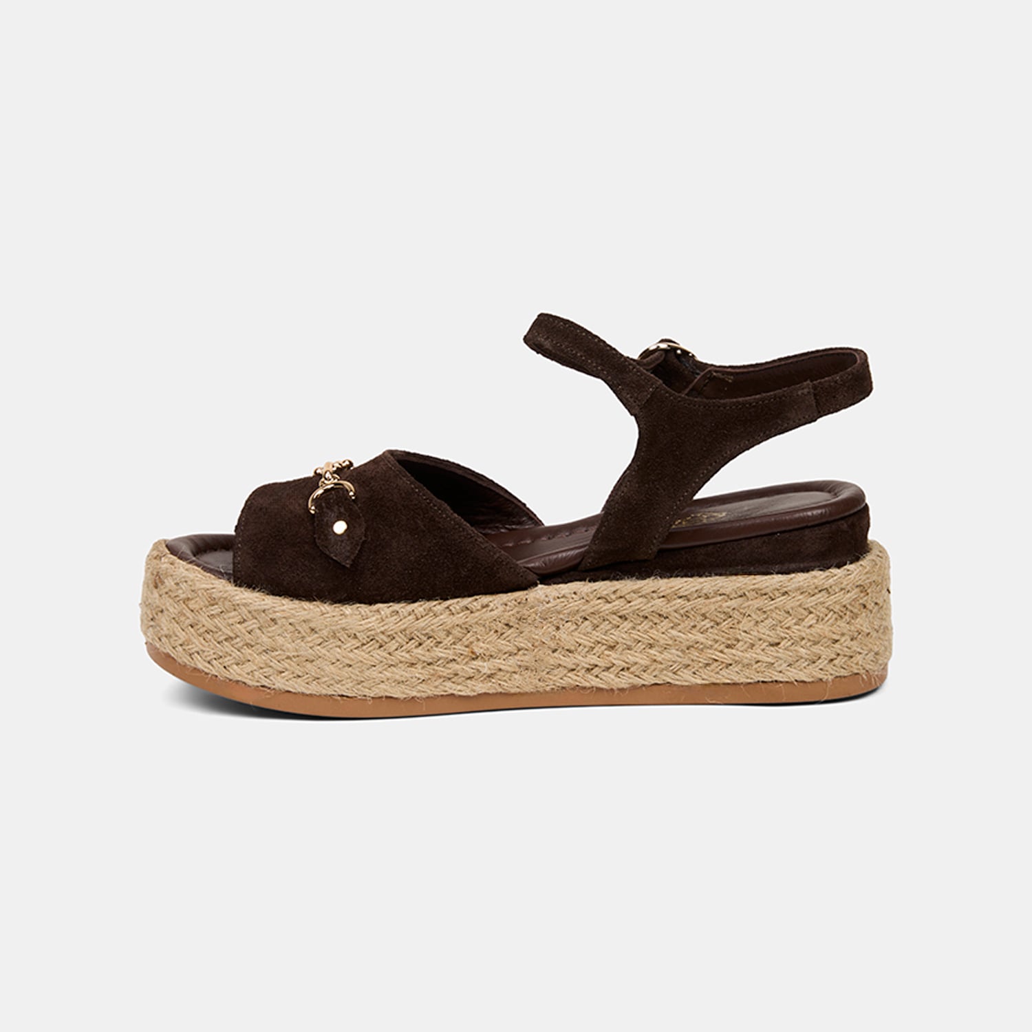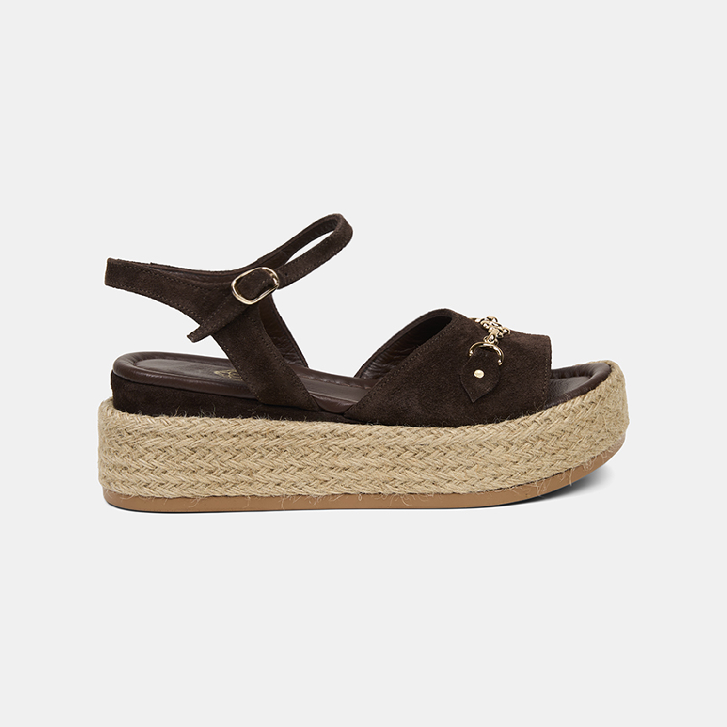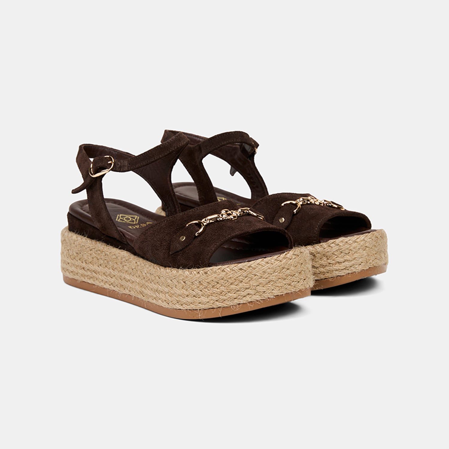 Kadın Acı Kahve Zincir Aksesuarlı Dolgu Topuklu Süet Sandalet