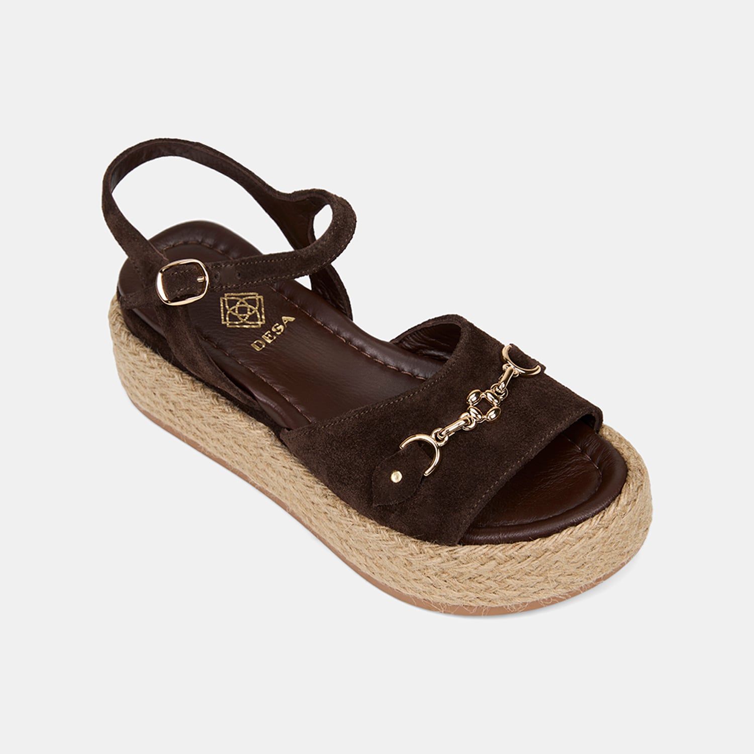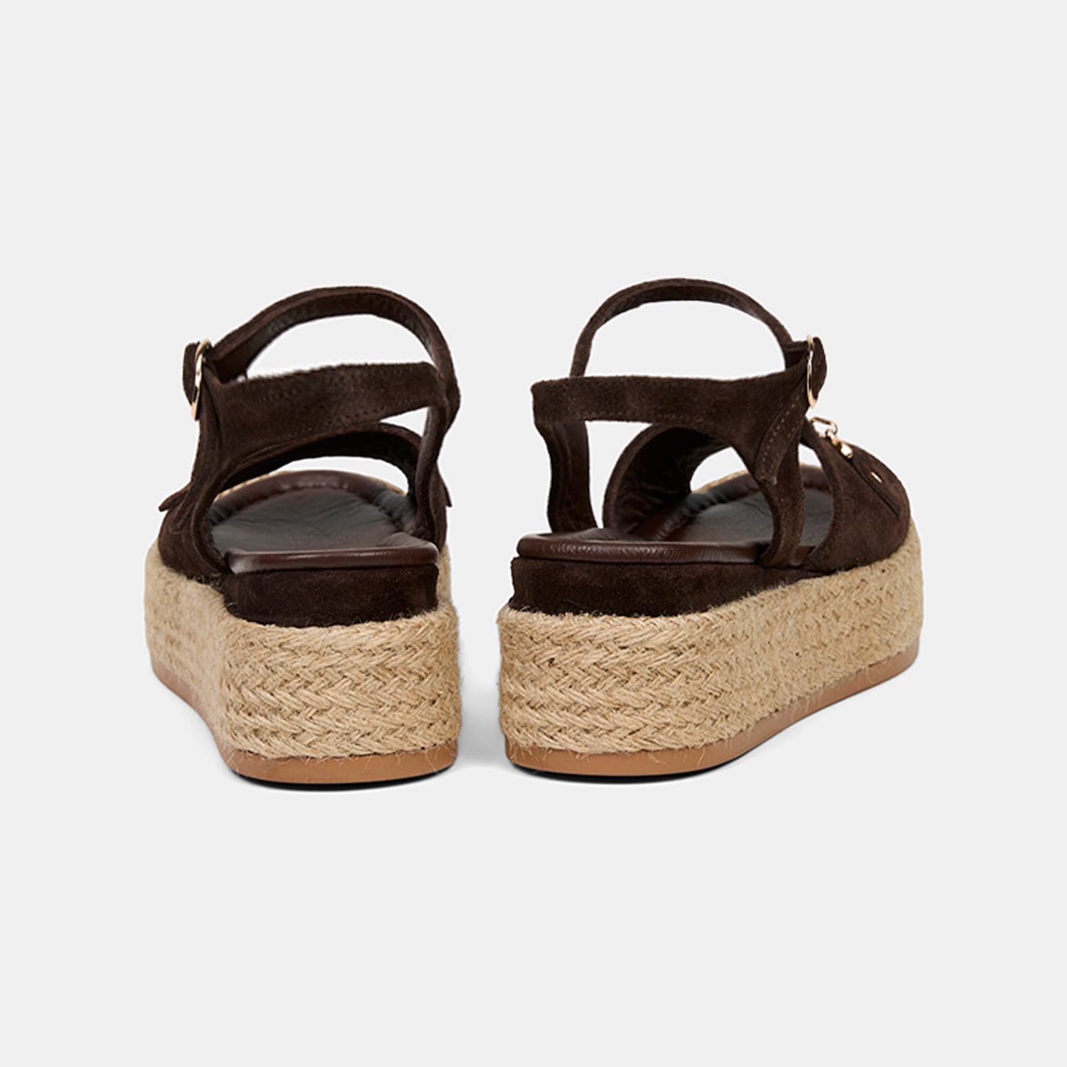 Jüt sargılı dolgu topuk formu yaz stiline doğal bir görünüm ekler.