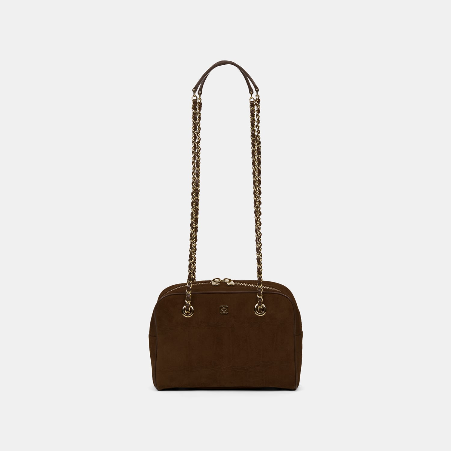 Kadın Acı Kahve Zincir Askılı Süet Deri Omuz Çantası
