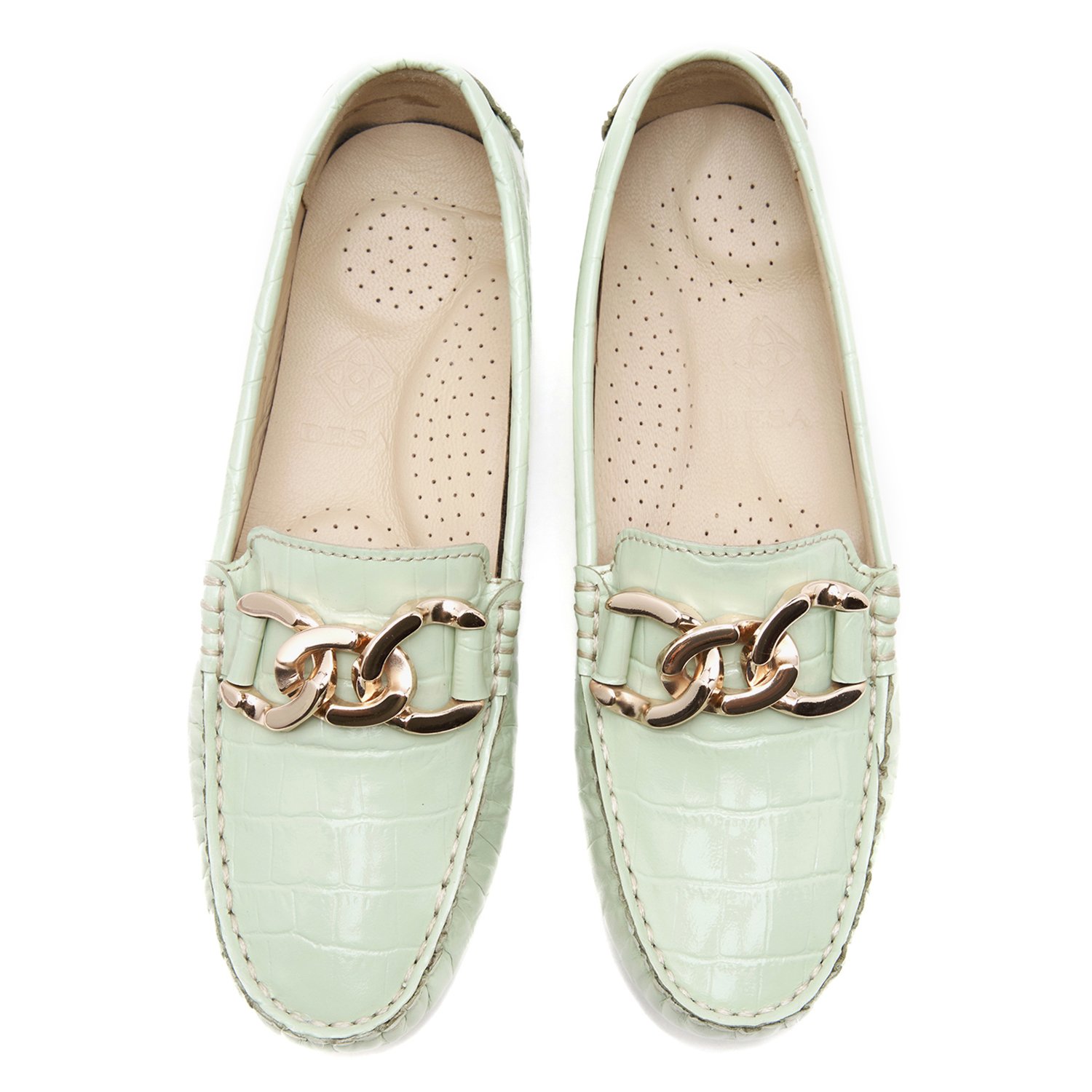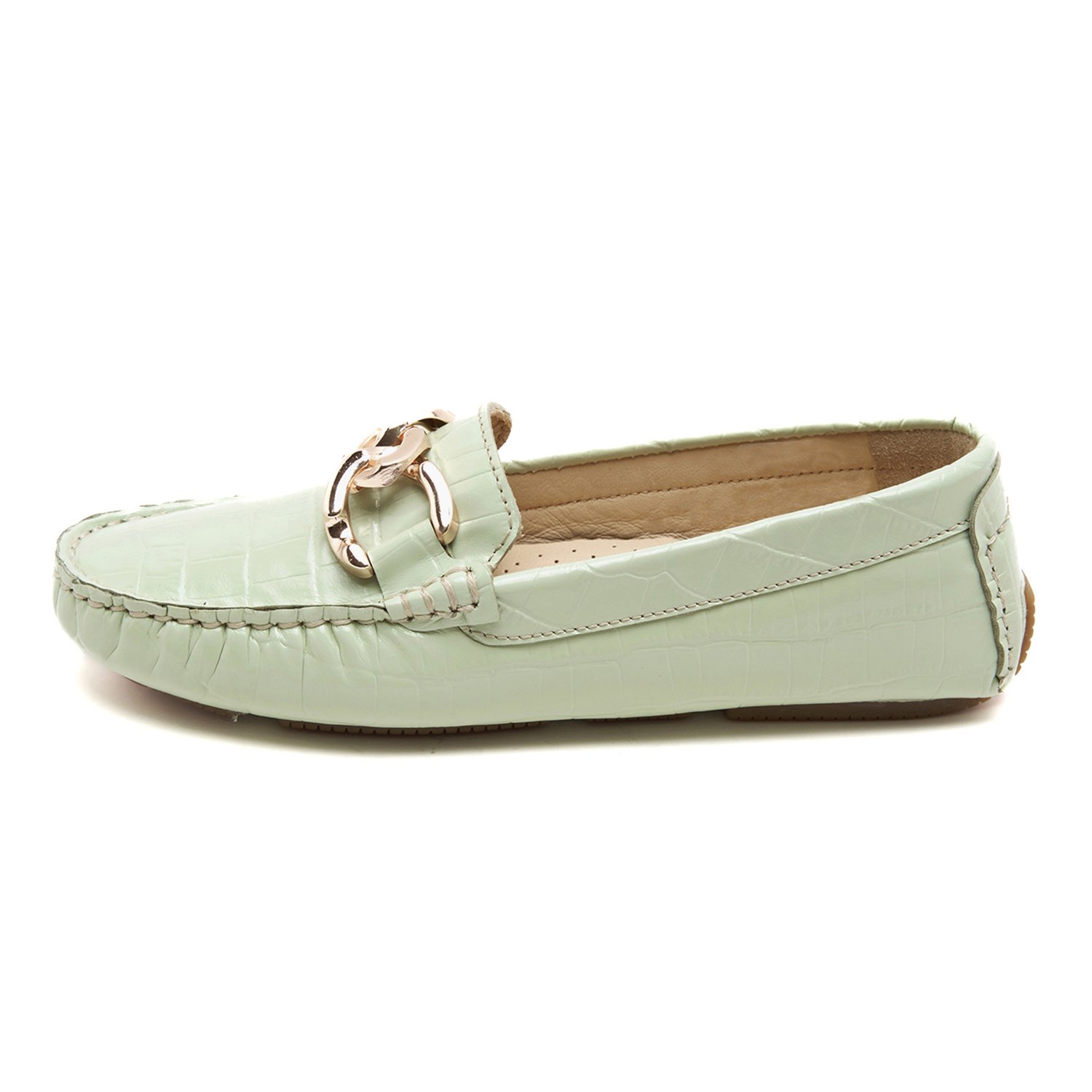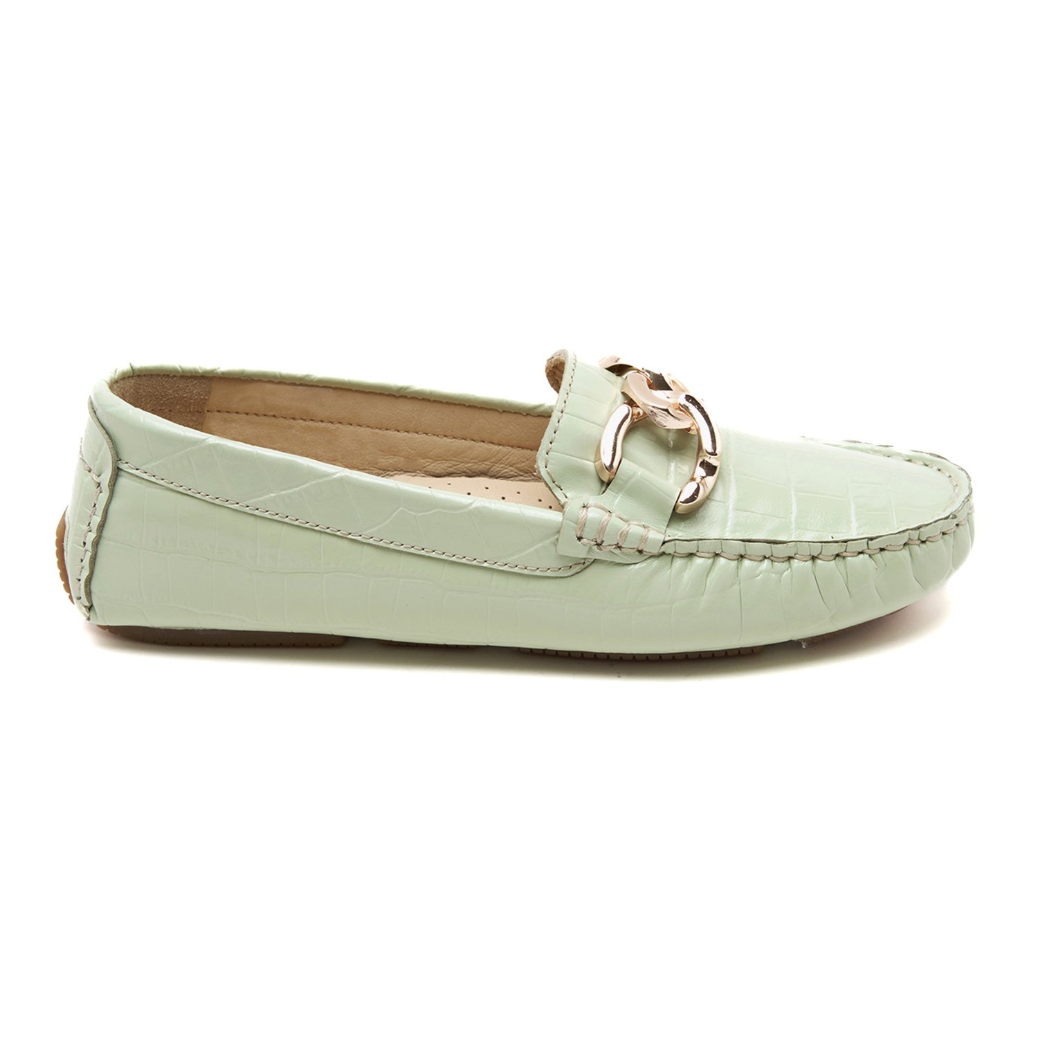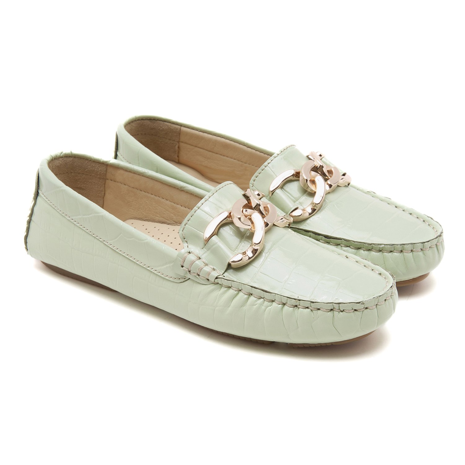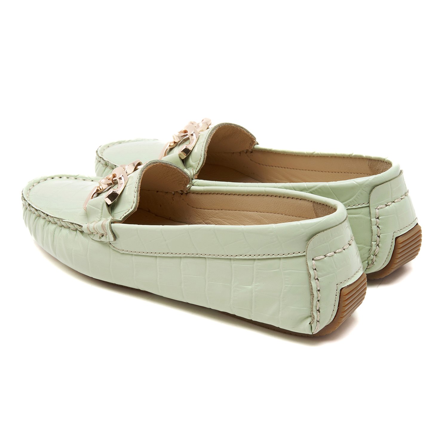 Kadın Açık Yeşil Kroko Baskılı Deri Loafer