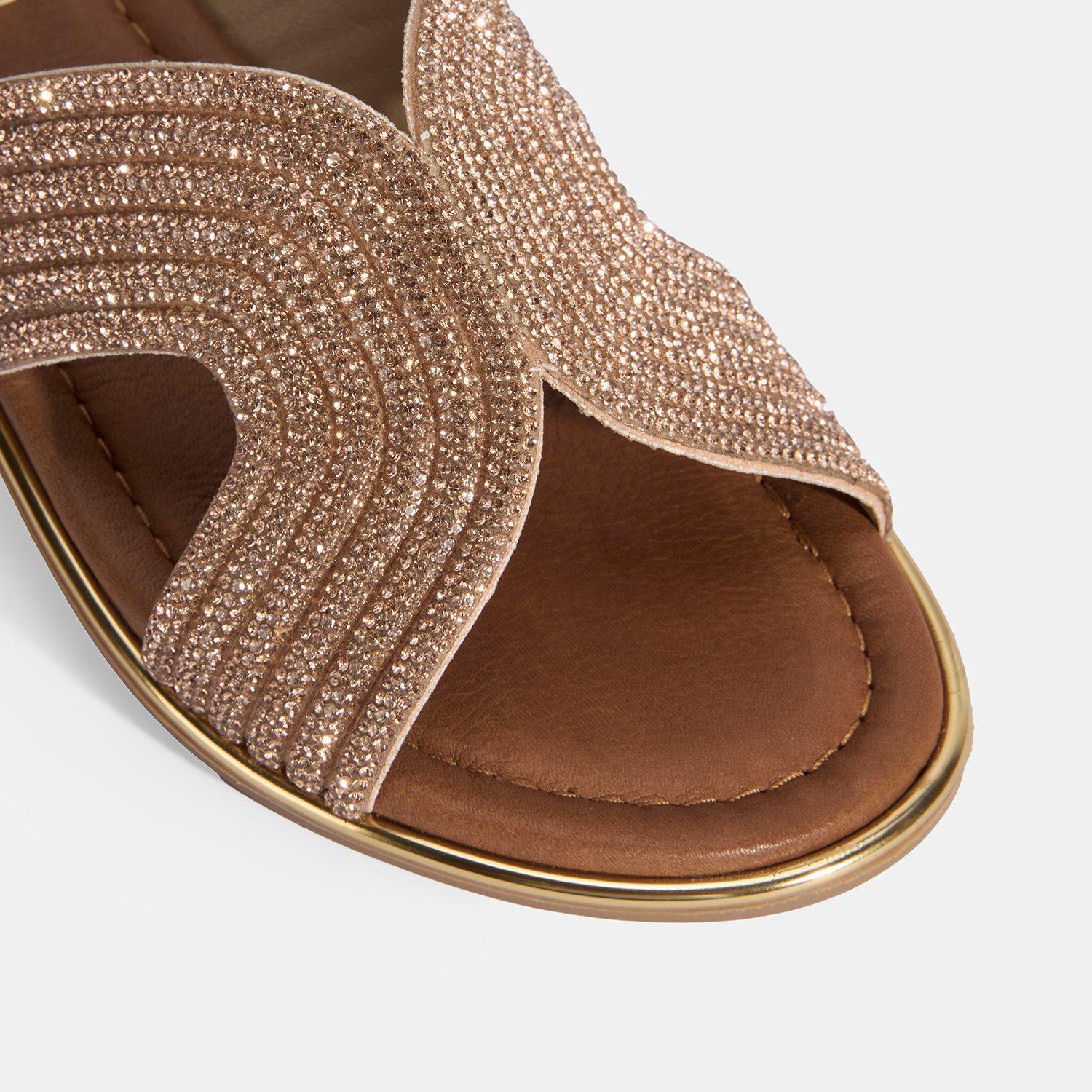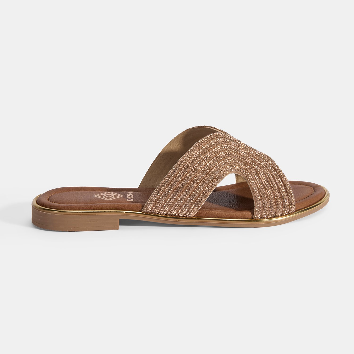 Kadın Altın Taş Detaylı Deri Terlik