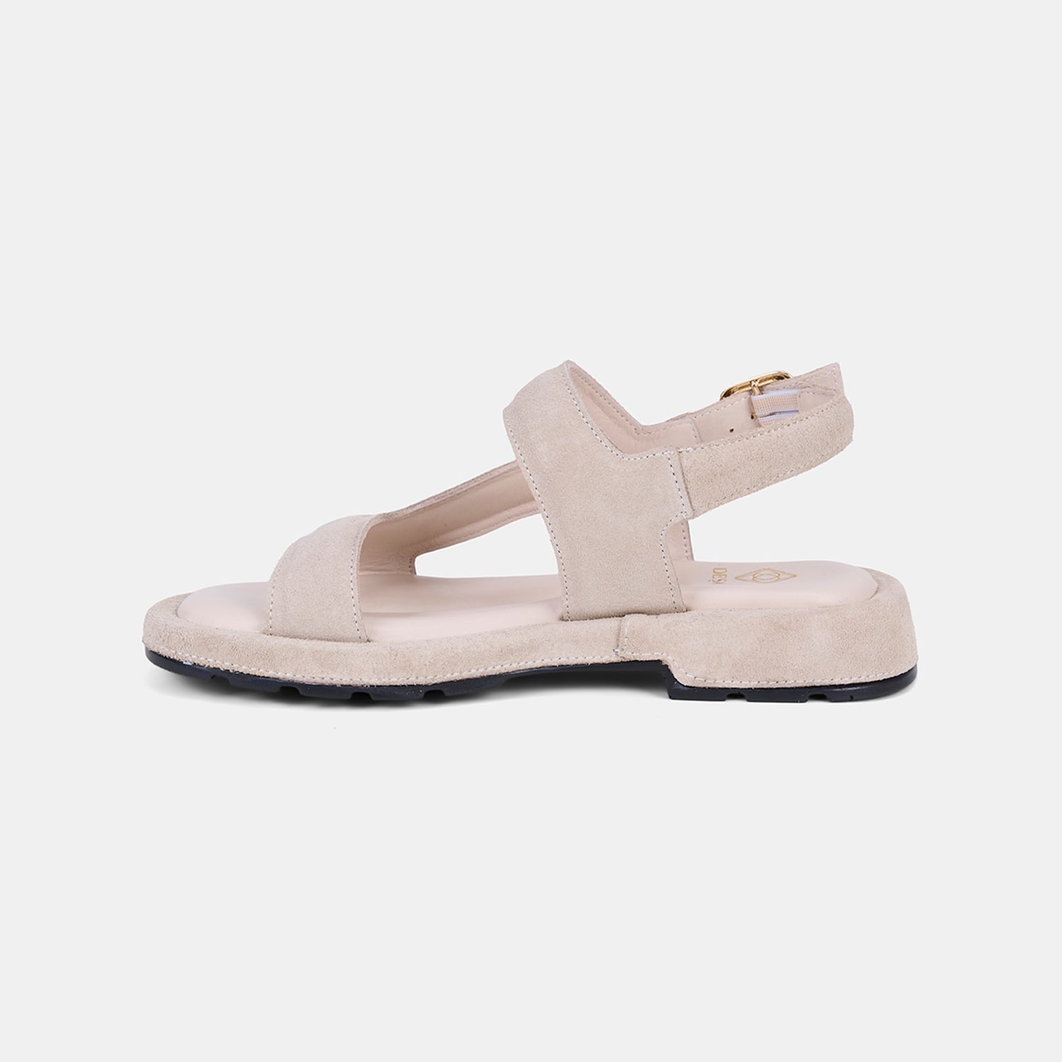 Ayarlanabilir metal toka detayı ayağa uyum sağlayarak hem fonksiyonel hem de estetik bir kullanım sunar.