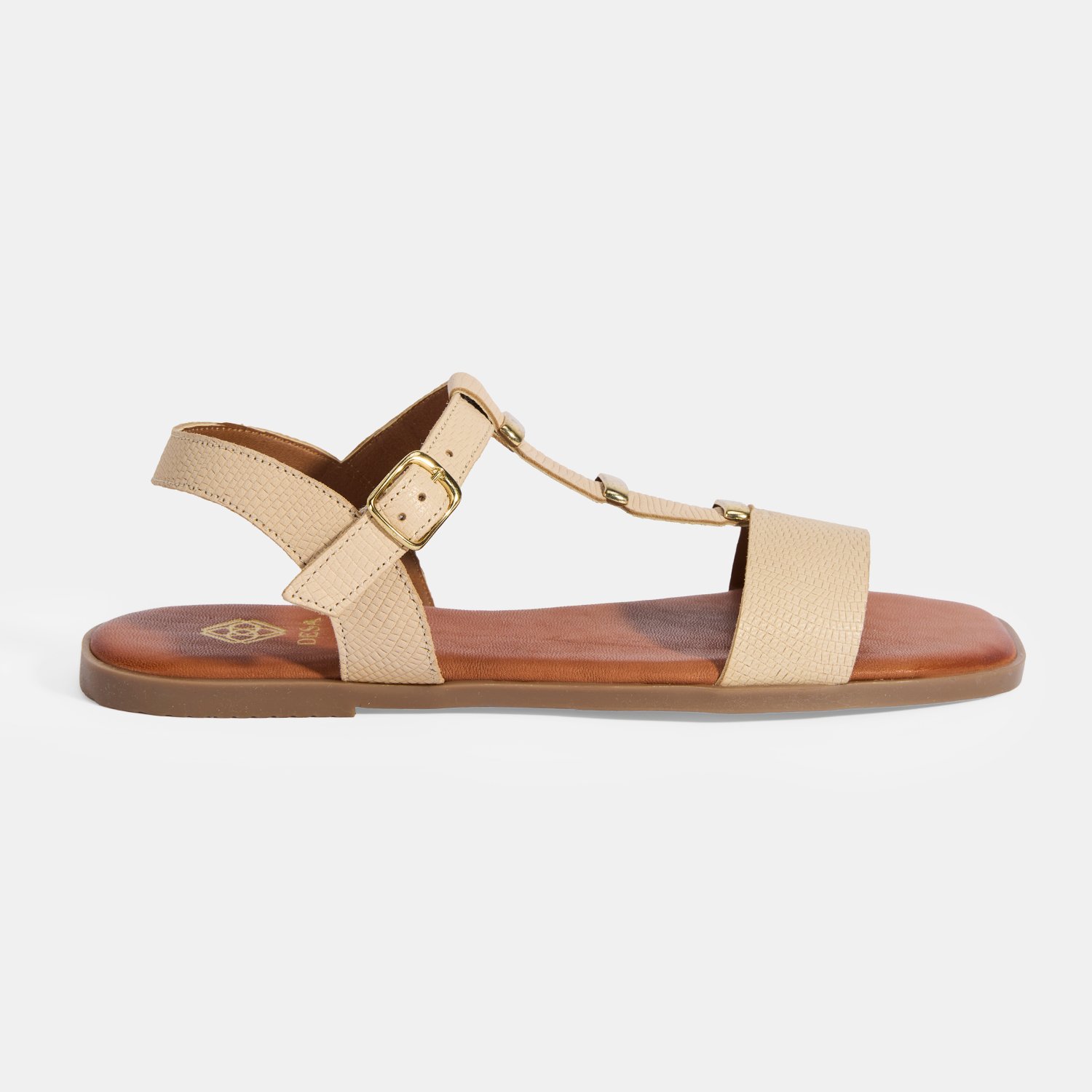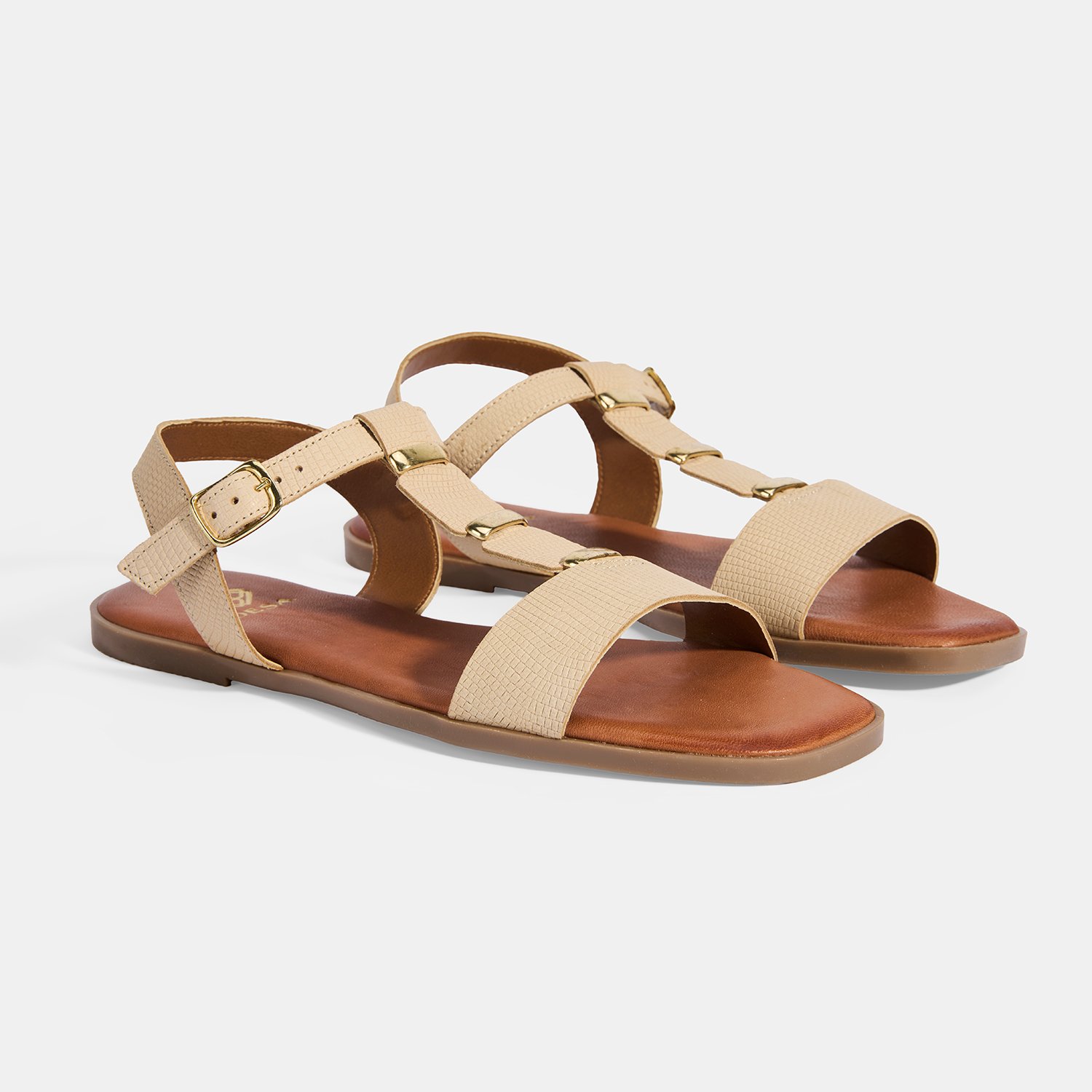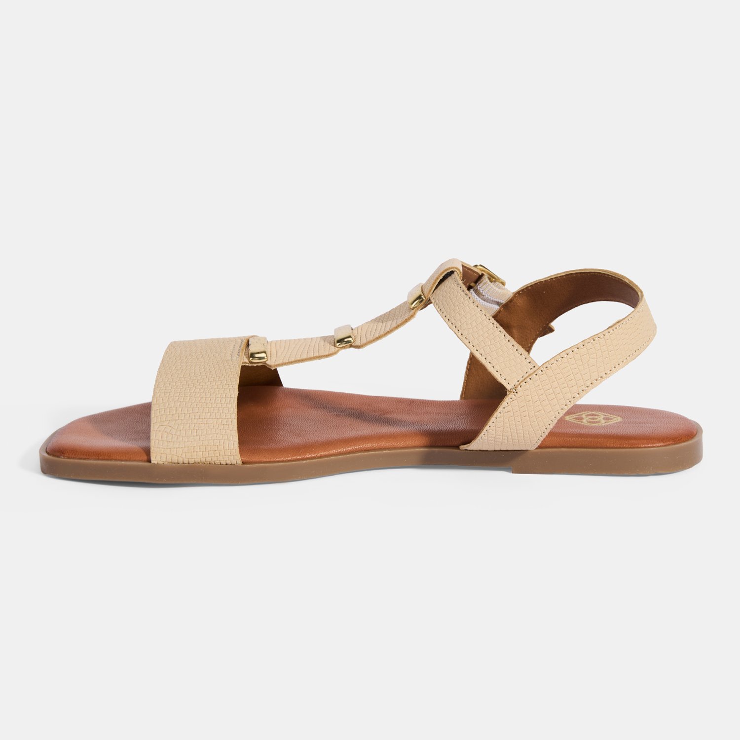Kadın Bej Ayarlanabilir Tokalı Deri Sandalet