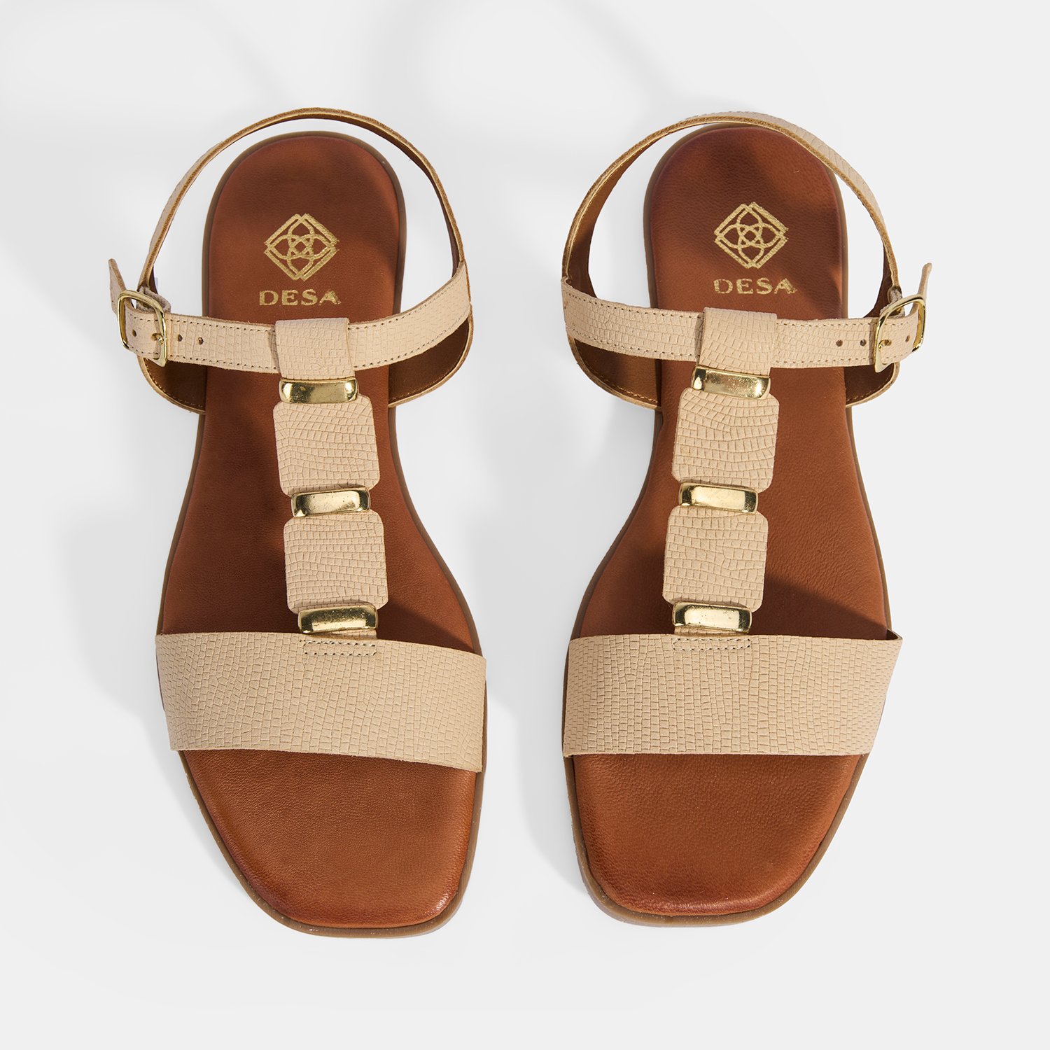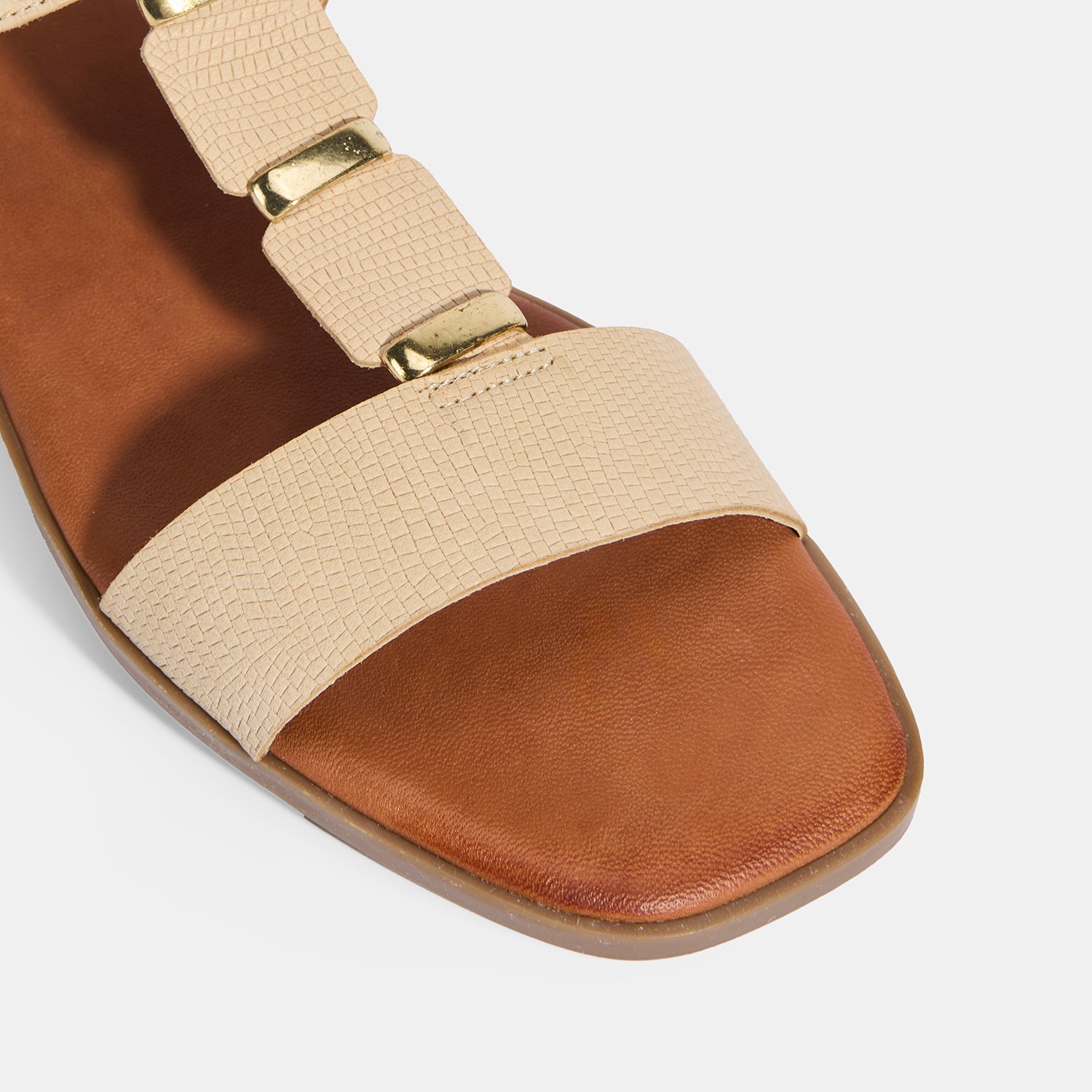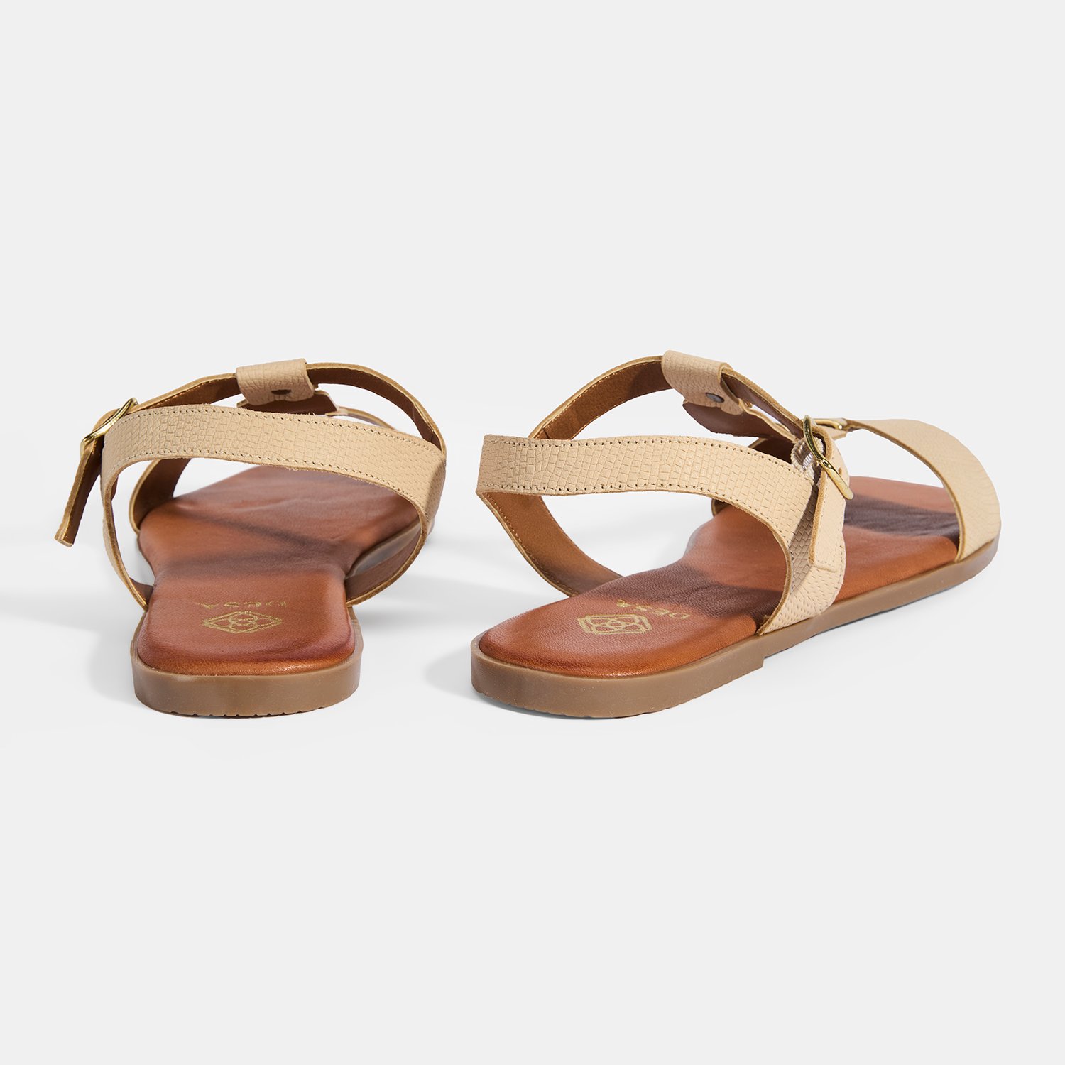 Kadın Bej Ayarlanabilir Tokalı Deri Sandalet