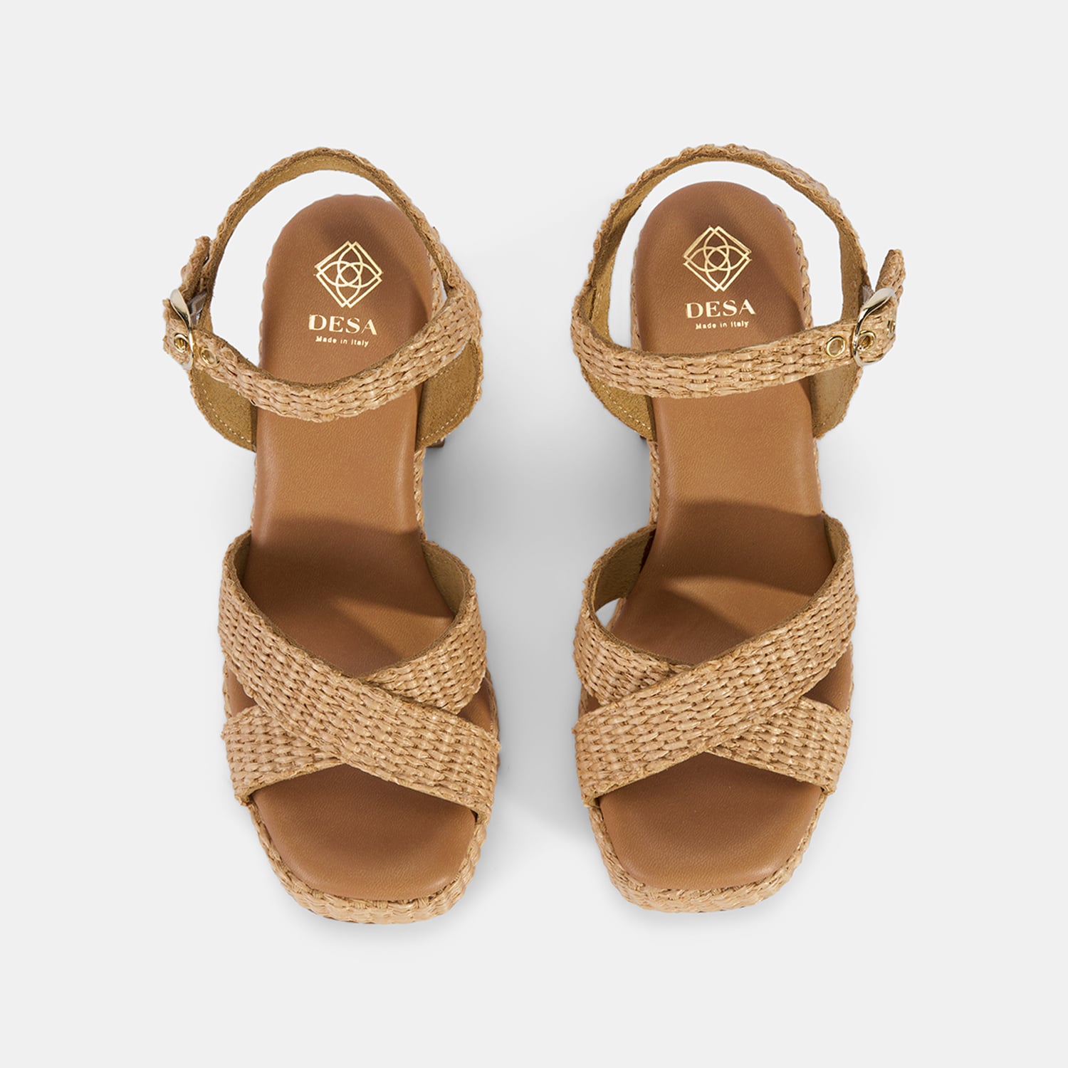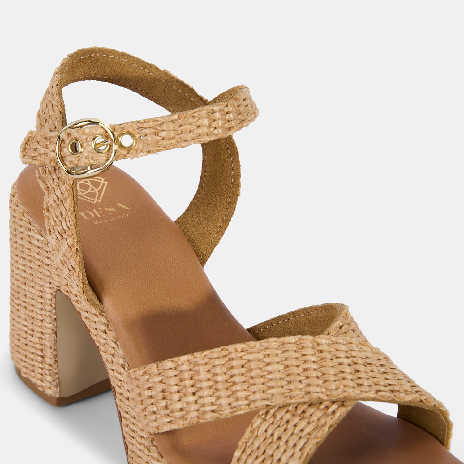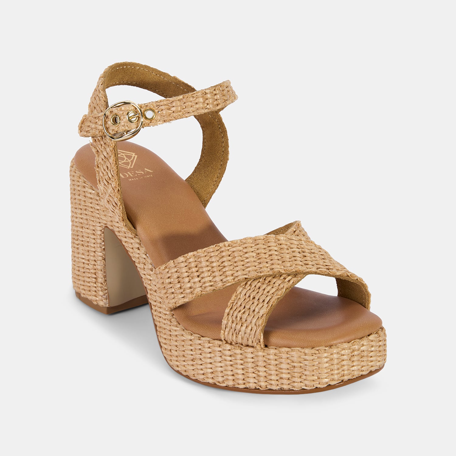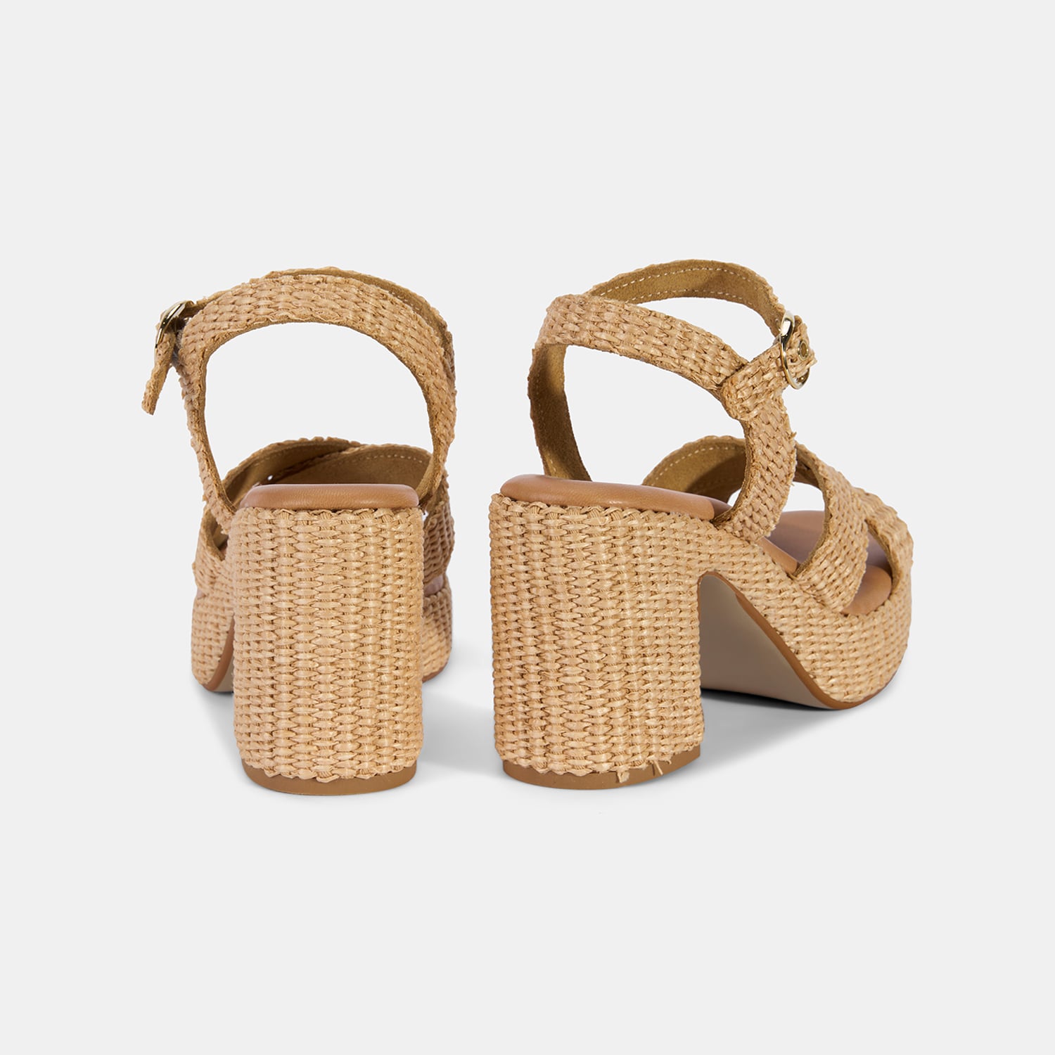Hafif ve doğal dokusu ile öne çıkan kadın sandalet, yüksek platform formu ile zarif bir duruş sağlar