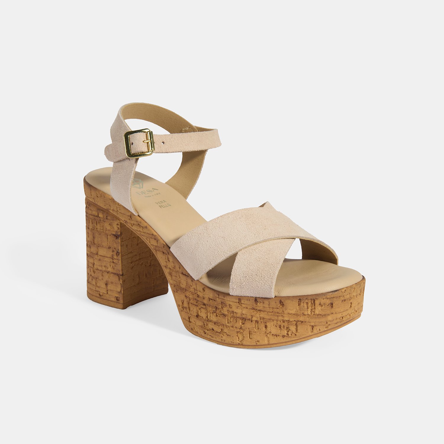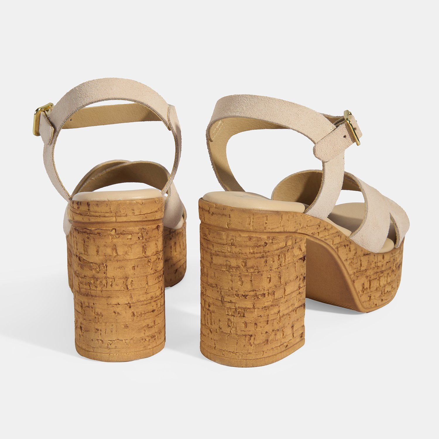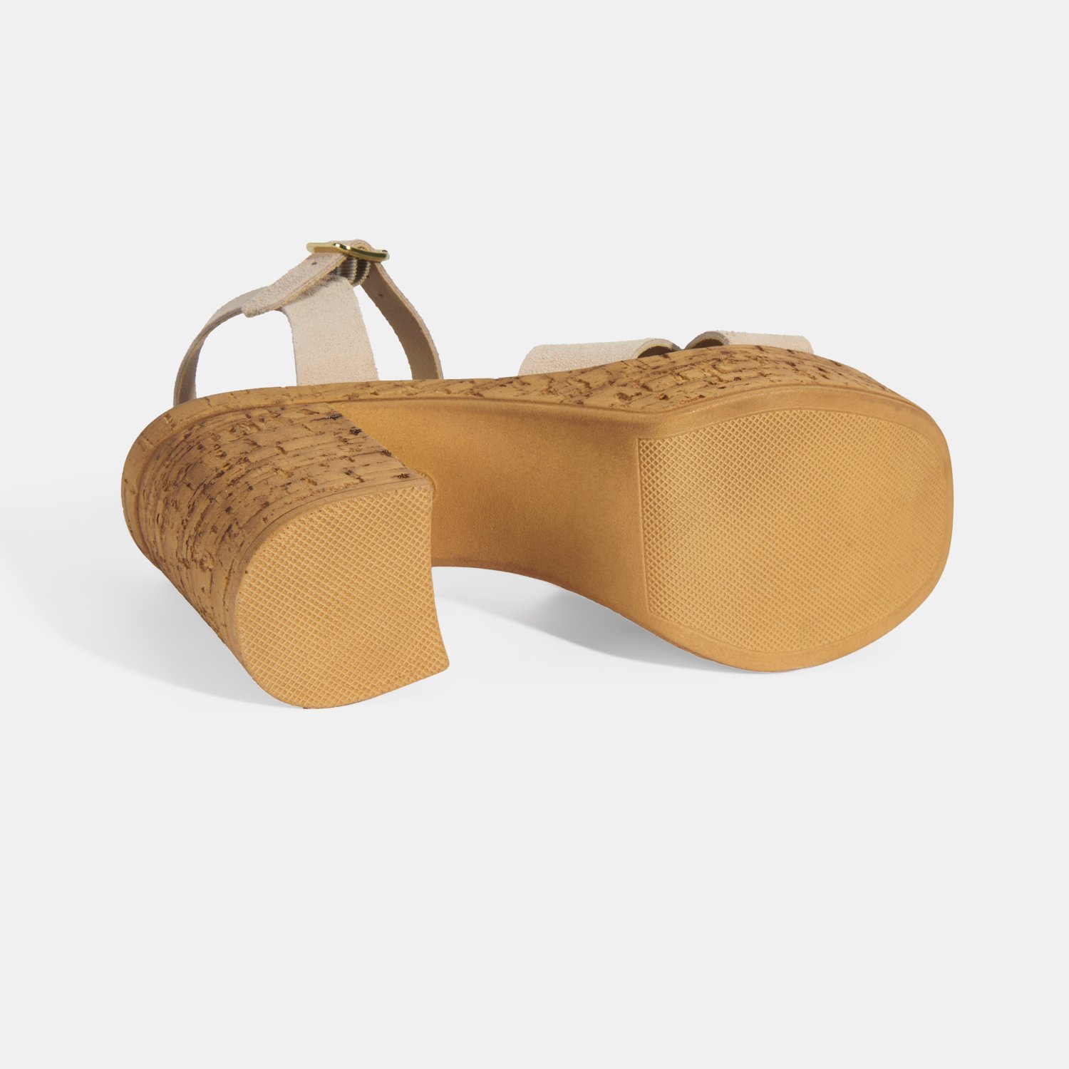 Kadın Bej Ayarlanabilir Tokalı Topuklu Süet Sandalet